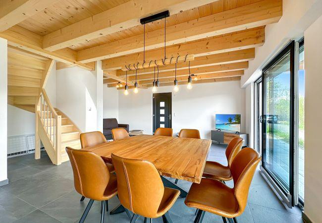 Im Erdgeschoss eine voll ausgestattete Küche offen zu einem großen Wohnzimmer mit Panoramablick, ein Technikraum und ein Gäste-WC.