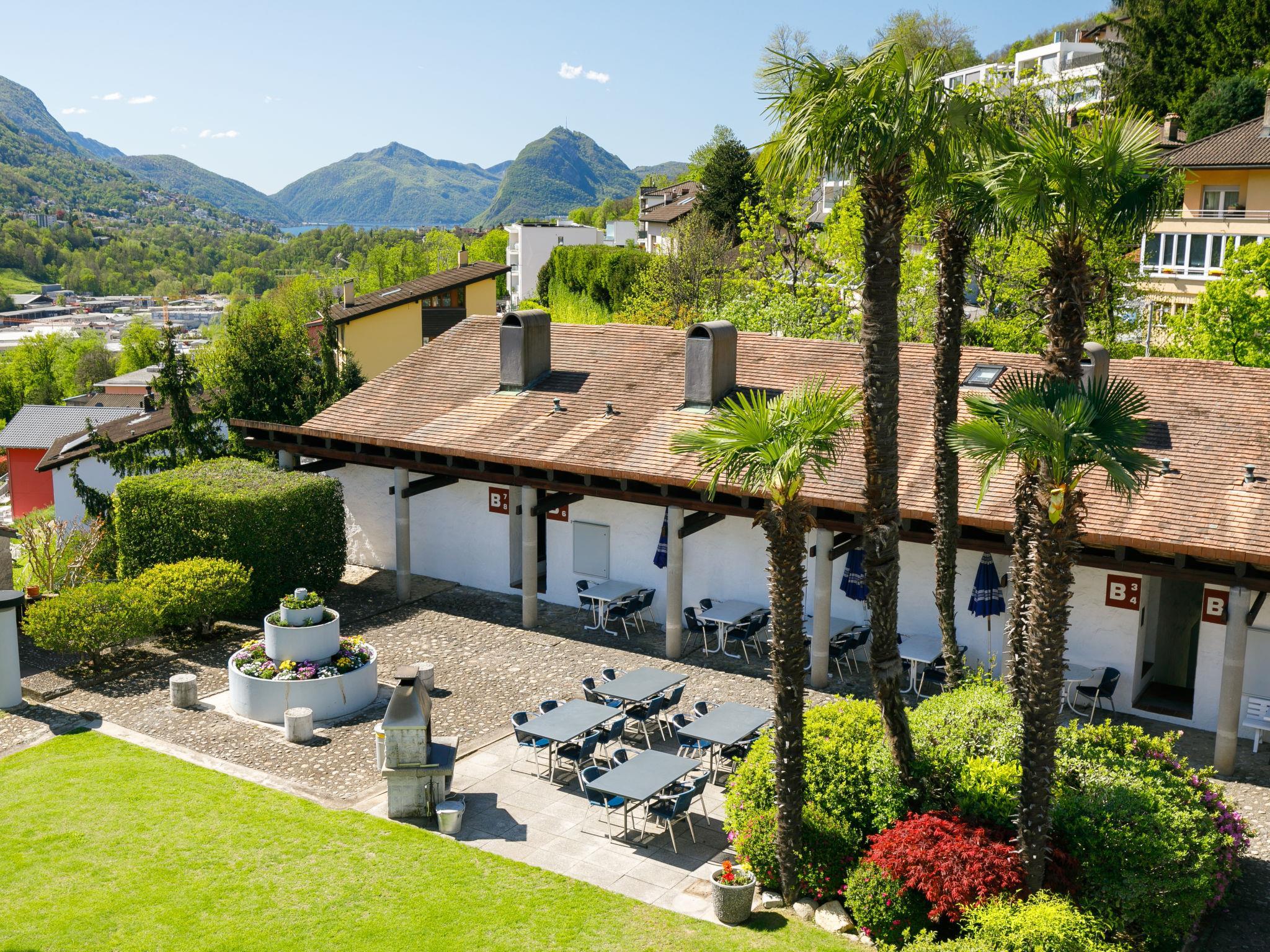Lugaggia 7 km von Lugano: Grosse, kinderfreundliche Residenz "Villaggio Sureggio", 443 m.ü.M., umgeben von Bäumen und Wiesen. 34 Wohnungen in der Residenz. Im Ort Sureggio, ruhige, sonnige Lage am Hang, im Grünen. Zur Mitbenutzung: Grundstück, grosser, schöner Garten, Liegewiese, Schwimmbad eckig (saisonale Verfügbarkeit: 01.Mai. - 30.Sep.) mit Innentreppe und Rollladenabdeckung. Dusche/WC im Poolbereich, Kinderbecken, Pergola, Terrasse, Feuerstelle, Kinderspielplatz. Im Hause: Tischtennis, Tischfussball, Waschmaschine (extra), Wäschetrockner (extra). Zufahrt bis zum Grundstück. Parkplatz (überdacht) auf dem Grundstück. Lebensmittelgeschäft 2 km, Restaurant 2 km, Bushaltestelle "ARL 461 Lugano - Tesserete" 10 m, Bahnstation "Lugano" 7 km, Freibad 2 km. Bekannte Seen in der Umgebung sind gut erreichbar: Lago di Lugano, Lago di Origlio. Wandergebiete: Monte Bar, Denti della Vecchia, Croce, San Lucio, Monte Bré, Monte Lema, MountainBike Gebiet Capriasca/ Tesserete. Bitte beachten: autofreie Ferienanlage, kein Fahrstuhl vorhanden. Geeignet für Familien, Babyausstattung auf Anfrage (extra). Der Besitzer akzeptiert keine Jugendgruppen. Alle Häuser/Wohnungen sind individuell eingerichtet. Parkplätze Breite 2.25 m Länge 5.00 m - ausgenommen Parkplatz App. A7 / P8 Breite 2.10 m Länge 5.00 m.