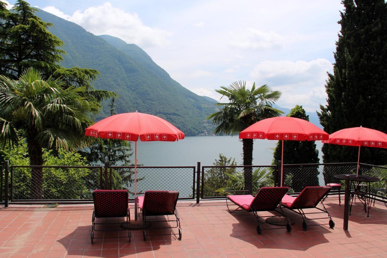 1 kl. Balkon + 1 kl. Terrasse (eingerahmt von Thuja + Palmen) mit Essplatz + Sonnenschirm.WiFi kostenlos. Gepflegte und komfortable Möblierung. Offener oder ueberdachter Parkplatz oder Garage disponibel. Traumhafter Blick auf Luganer See und Berge.