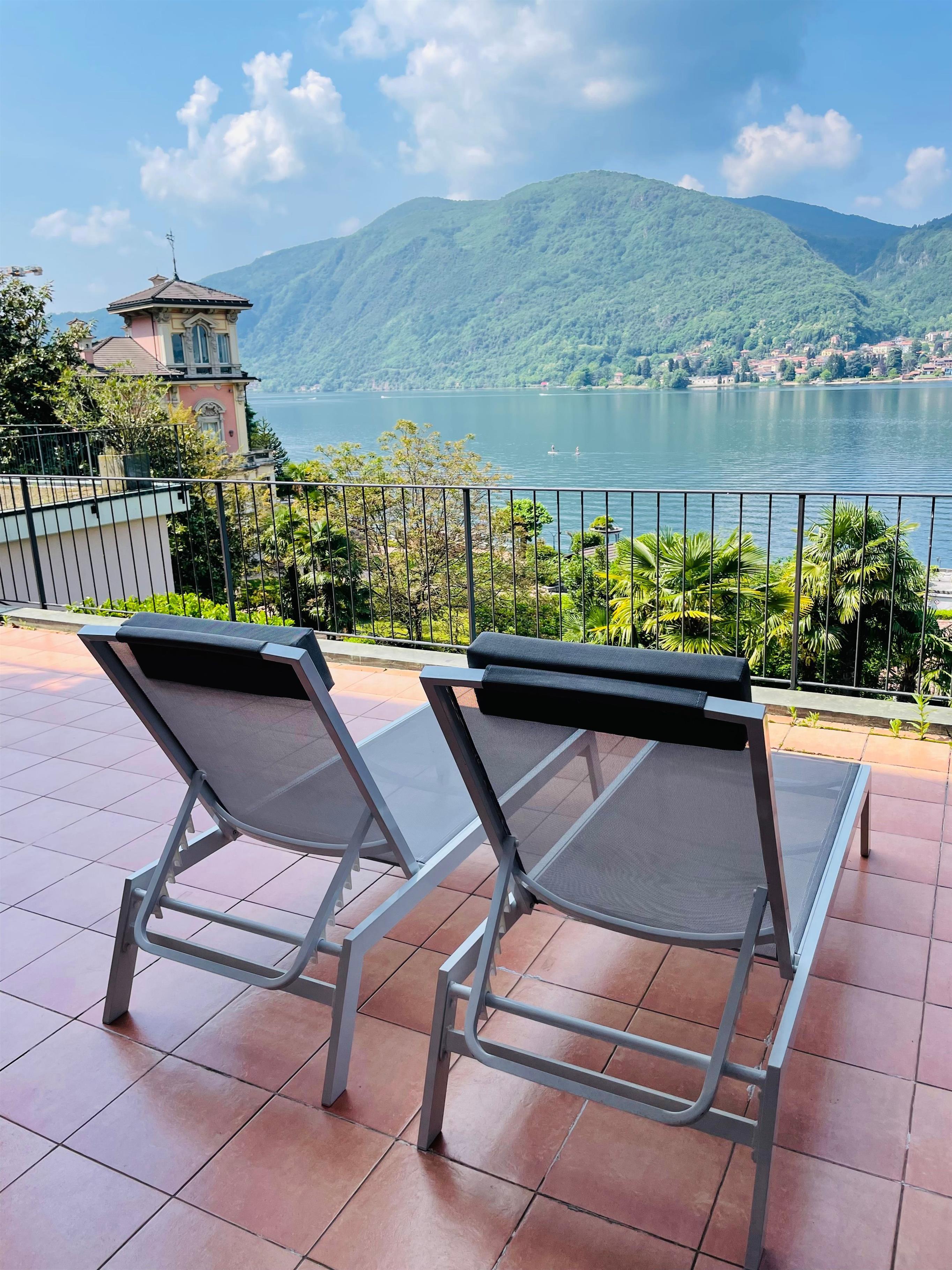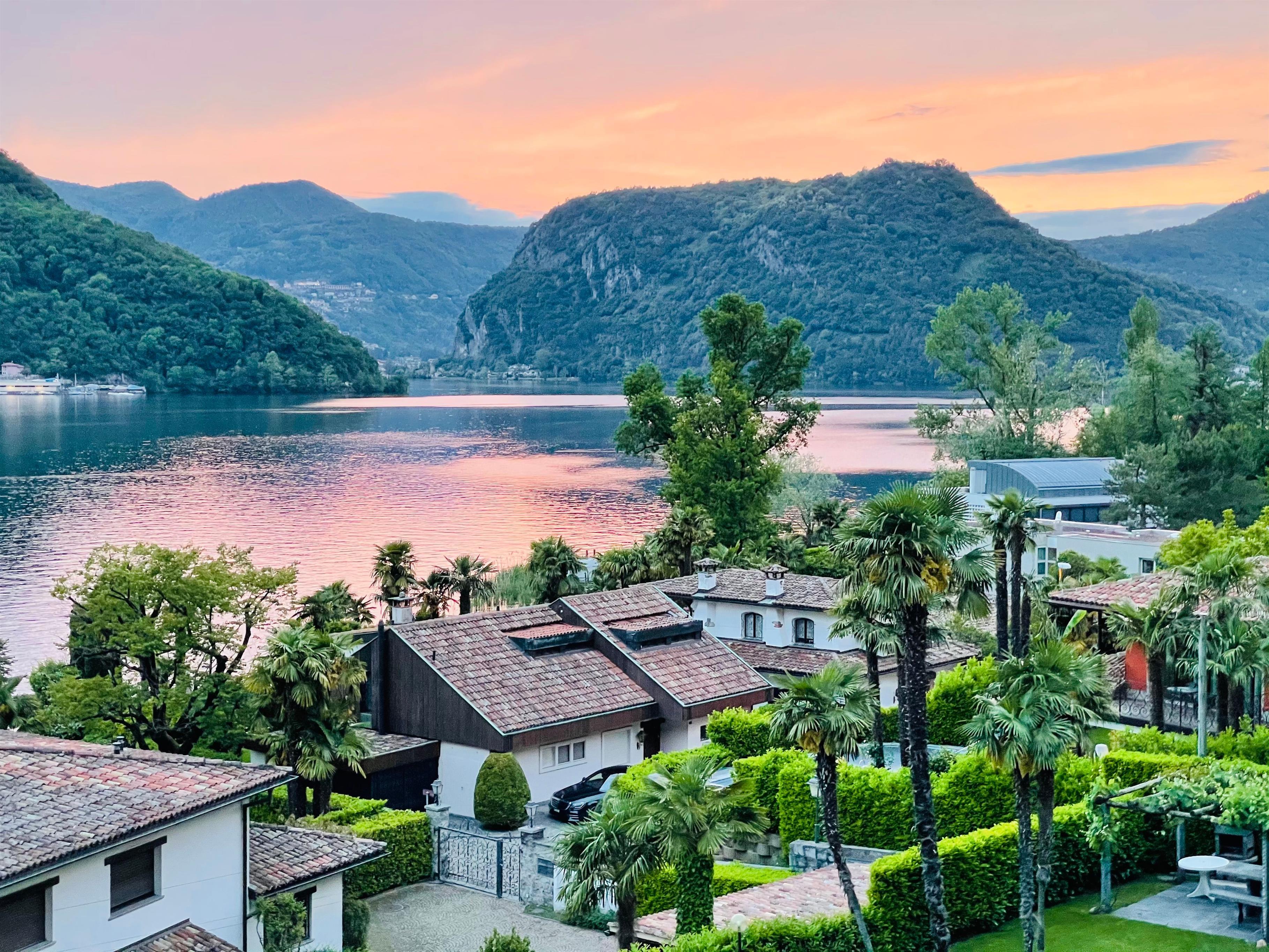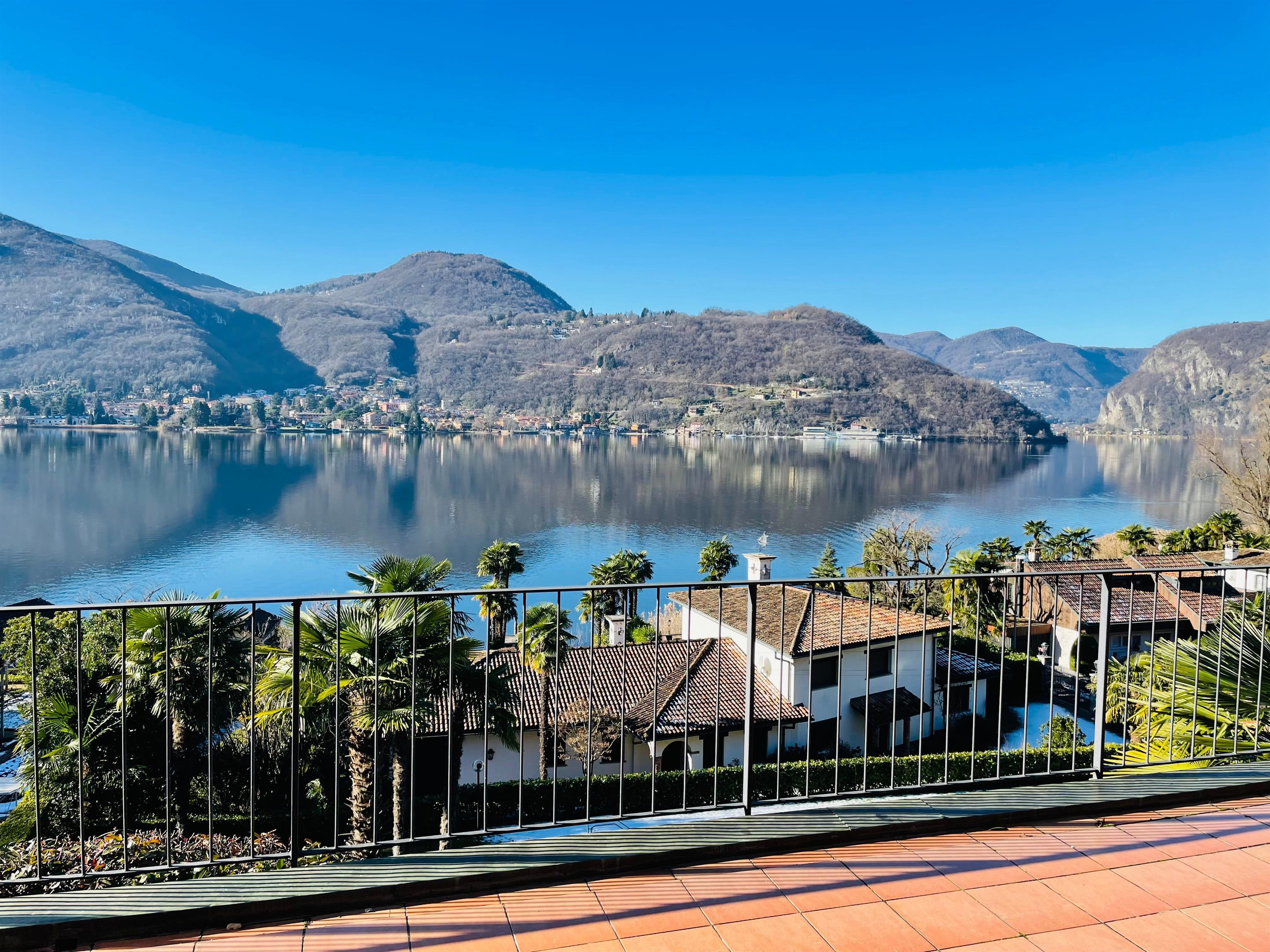Das Highlight: eine grosse Terrasse mit fantastischem Blick auf den See und die Berge. Ein gemeinschaftlich genutzter Pool und Garten sorgen für zusätzliche Entspannung.