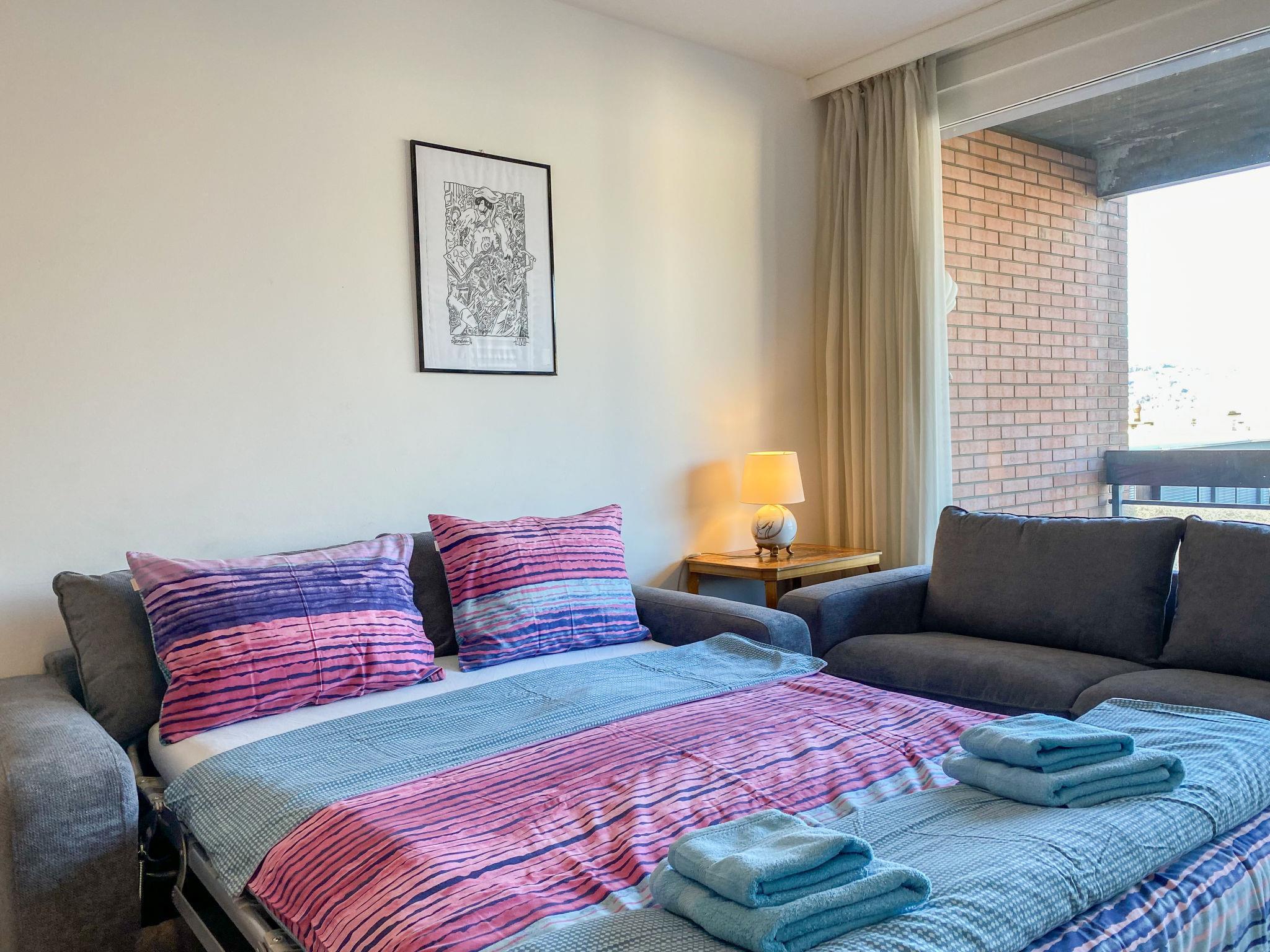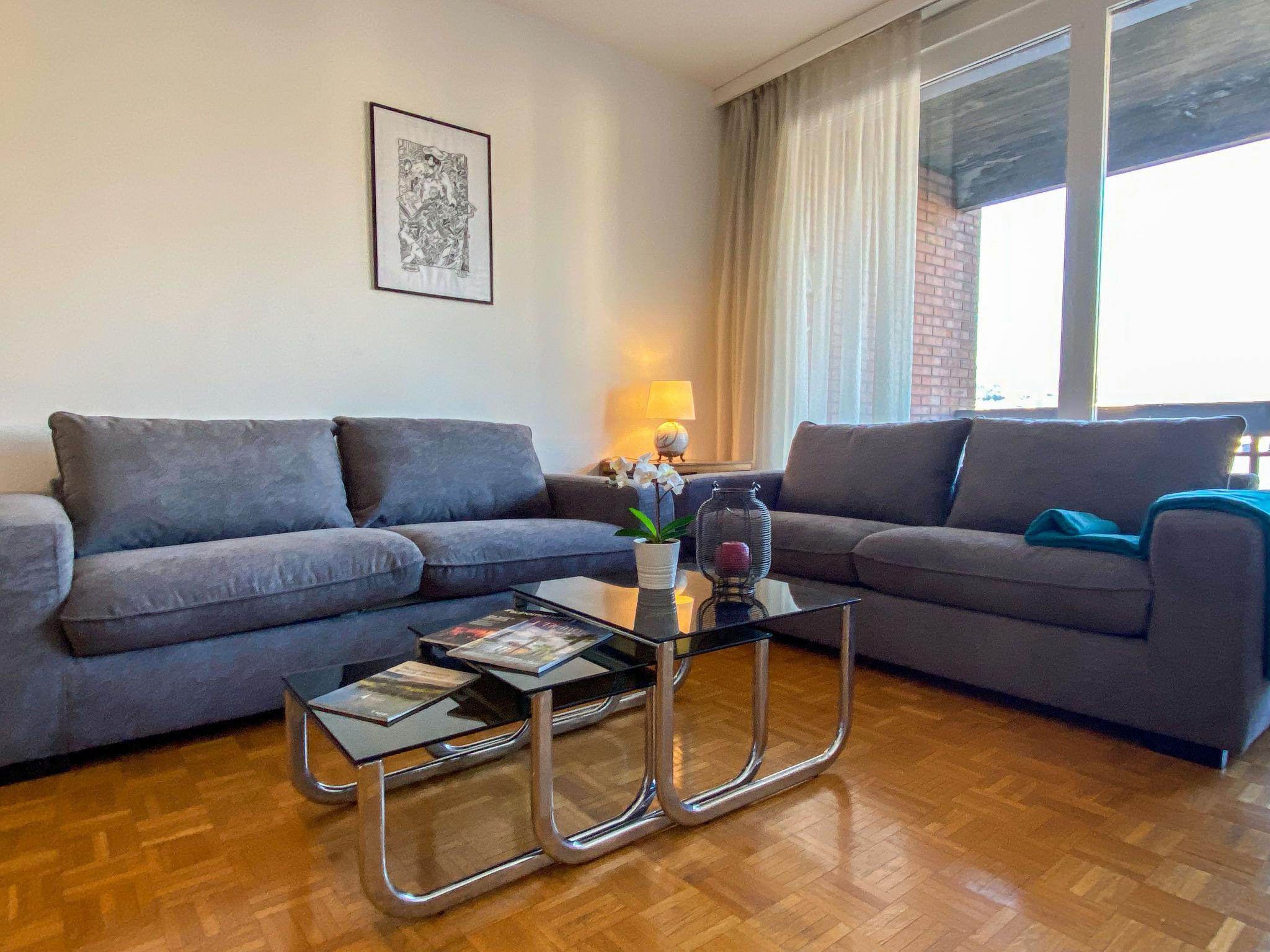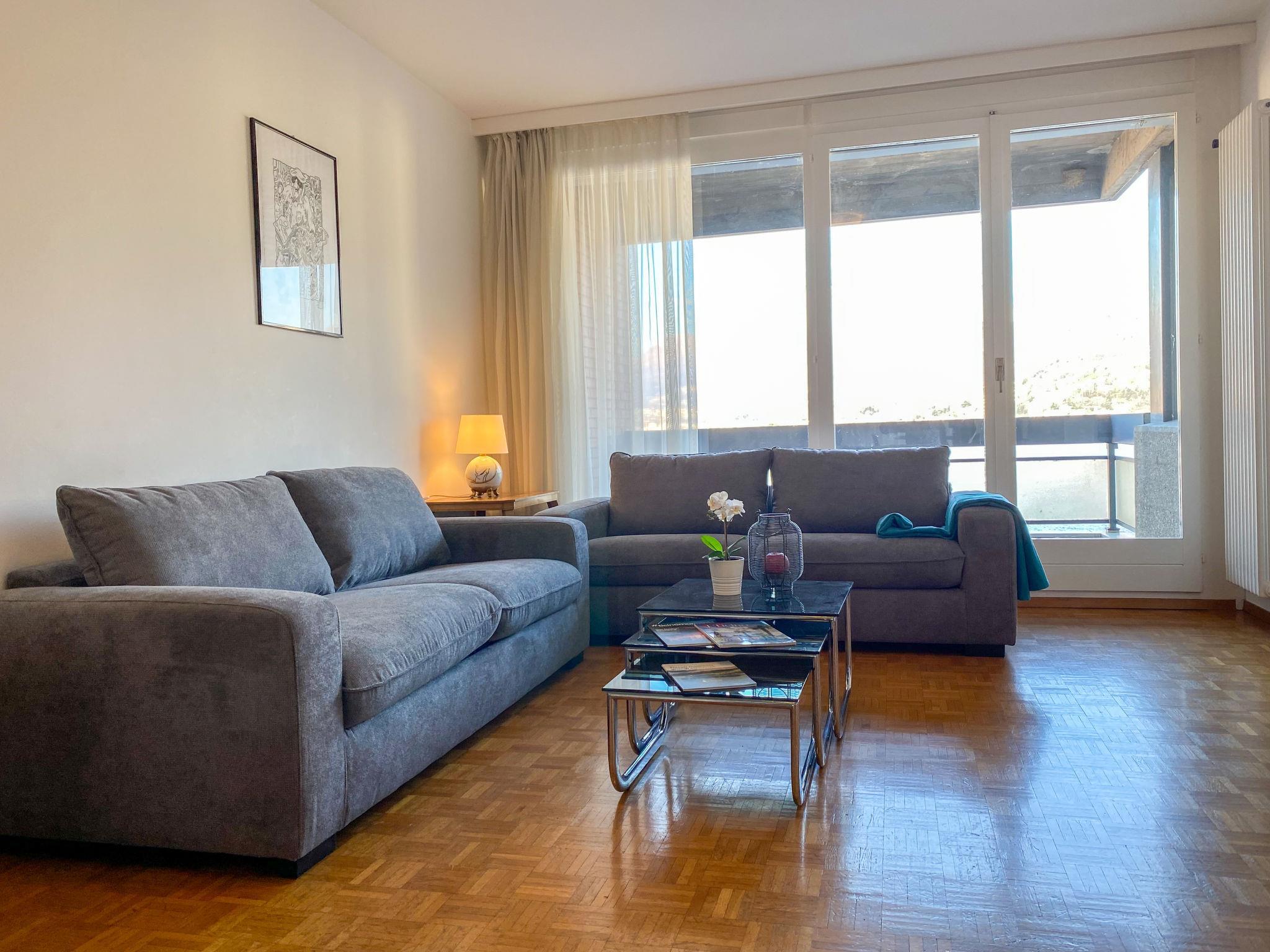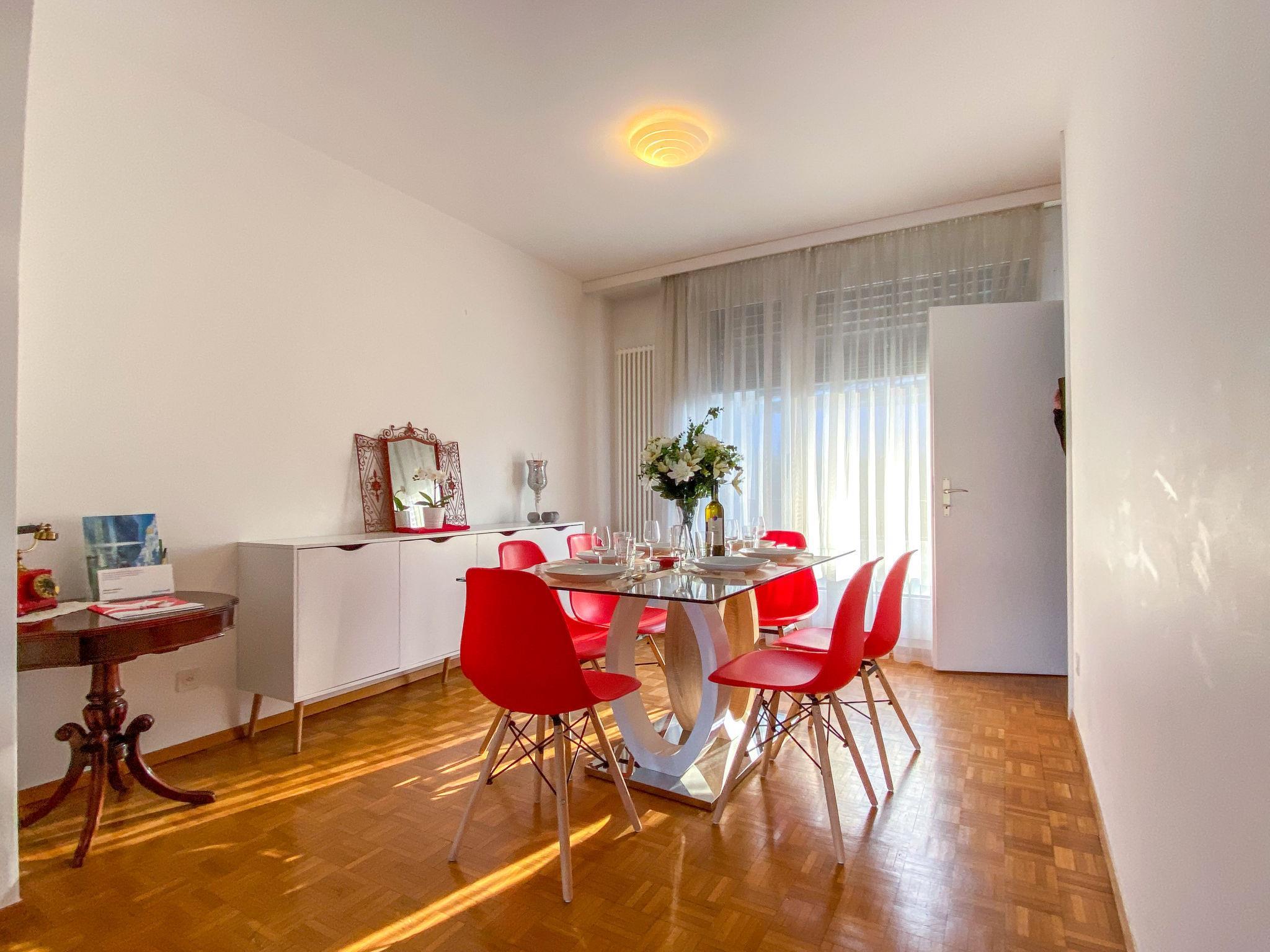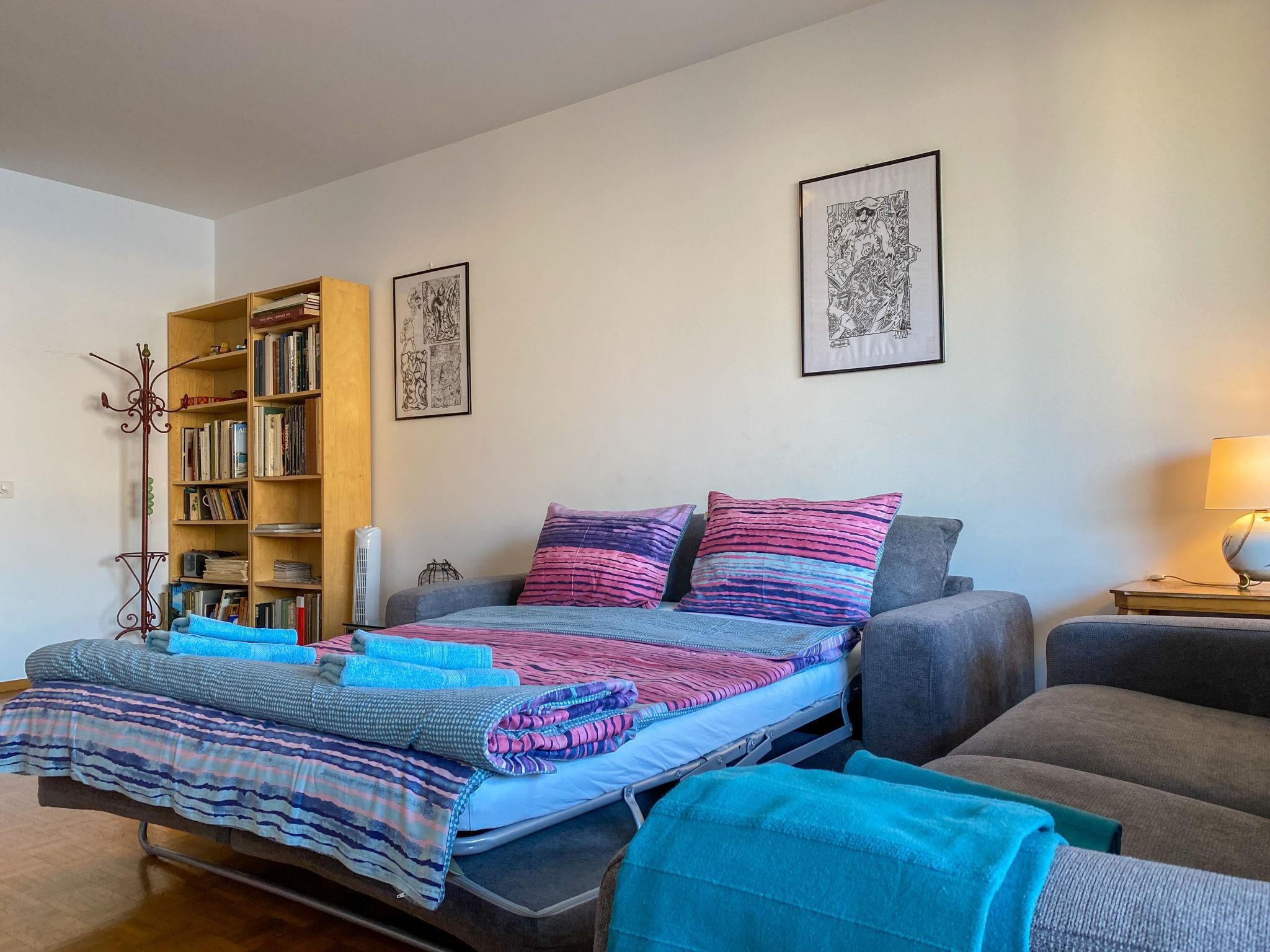 "App. Paradiso", 4-Zimmer-Wohnung 100 m2 im 5. Stock. Objekt geeignet für 4 Erwachsene + 2 Kinder. Geräumig und hell, komfortabel und gemütlich eingerichtet: offenes grosses Wohn-/Schlafzimmer mit 1 Diwanbett (140 cm, Länge 200 cm), Kabel-TV, Flachbildschirm und Radio. Ausgang zum Balkon. Offenes Esszimmer. Ausgang zum Balkon. 1 grosses Doppelzimmer mit 1 Doppelbett (2 x 90 cm, Länge 200 cm), Kabel-TV. 1 Doppelzimmer mit 1 franz. Bett (1 x 140 cm, Länge 200 cm). Grosse Küche (Backofen, Geschirrspüler, 4 Glaskeramikplatten, Mikrowelle, elektrische Kaffeemaschine, Kapseln für die Kaffeemaschine (Nespresso) extra, Fondue Set (Chinoise, Käse)) mit kleinem Esstisch. Ausgang zum Balkon. Bad/Bidet/WC, Dusche/WC. Heizung. Grosser Balkon, Südlage und Ostlage, kleiner Balkon, Nordlage. Balkonmöbel. Sehr schöne Panoramasicht auf den See, die Berge und die Landschaft. Zur Verfügung: Waschmaschine, Bügeleisen, Kinderhochstuhl bis 2 Jahre (extra), Haartrockner. Internet (WLAN, gratis). Garage Nr. AF auf dem Grundstück. Bitte beachten: Nichtraucher-Unterkunft. Maximal 1 Haustier/Hund erlaubt. NL-00007300