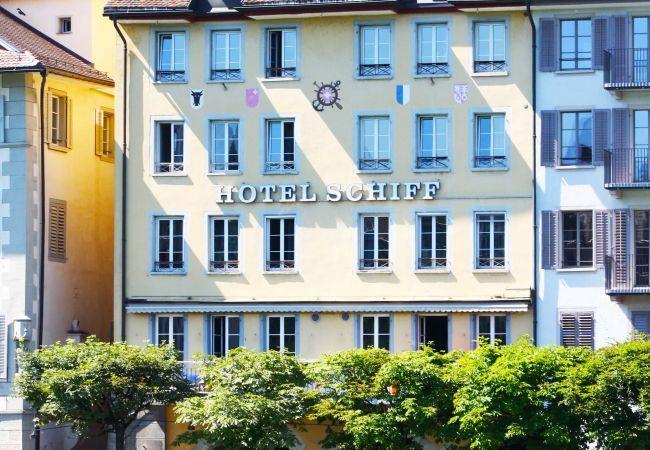 Das charmante und wunderschöne "Neptun I" Apartment bietet eine einzigartige Aussicht auf die Reuss und die weltberühmte Kapellbrücke. Gönnen Sie sich die einmalige Möglichkeit am Morgen aufzuwachen und den Tag mit dem Ausblick auf eine der meistfotografierten Sehenswürdigkeiten der Schweiz im Herzen einer wunderschönen Altstadt zu beginnen und hören Sie dabei das Rauschen des kristallklaren Wassers der Reuss. Das Apartment – in einem wunderschönen historischen Gebäude – bietet Schlafplätze für sechs Personen und ist mit einer vollausgestatteten Küche, sowie einer gemütlichen Sitzecke eingerichtet. Auf seinen 73m2 bietet es ein Badezimmer mit Dusche und WC, gratis Wi-Fi Internet, einen Fernseher und eine Nespresso Kaffeemaschine.