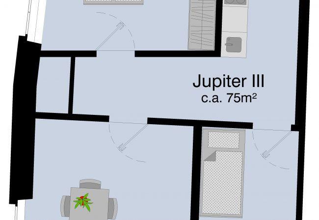 Die lichterfüllte und heimelige Ferienwohnung namens "Jupiter III" bietet ein einzigartiges Wohnerlebnis mit Blick auf die Reuss und die weltberühmte Kapellbrücke. Die Ferienwohnung befindet sich in einem historischen Gebäude und bietet Schlafplätze für fünf Personen. Sie hat eine komplett ausgestattete Küche mit allen notwendigen Küchenutensilien, Herd, Kaffee Maschine und vielen kleinen Extras mehr. Auf ihren 72m2 bietet die Ferienwohnung, zwei Schlafzimmer, ein geräumiges Wohnzimmer und ein Badezimmer mit Badewanne und WC.