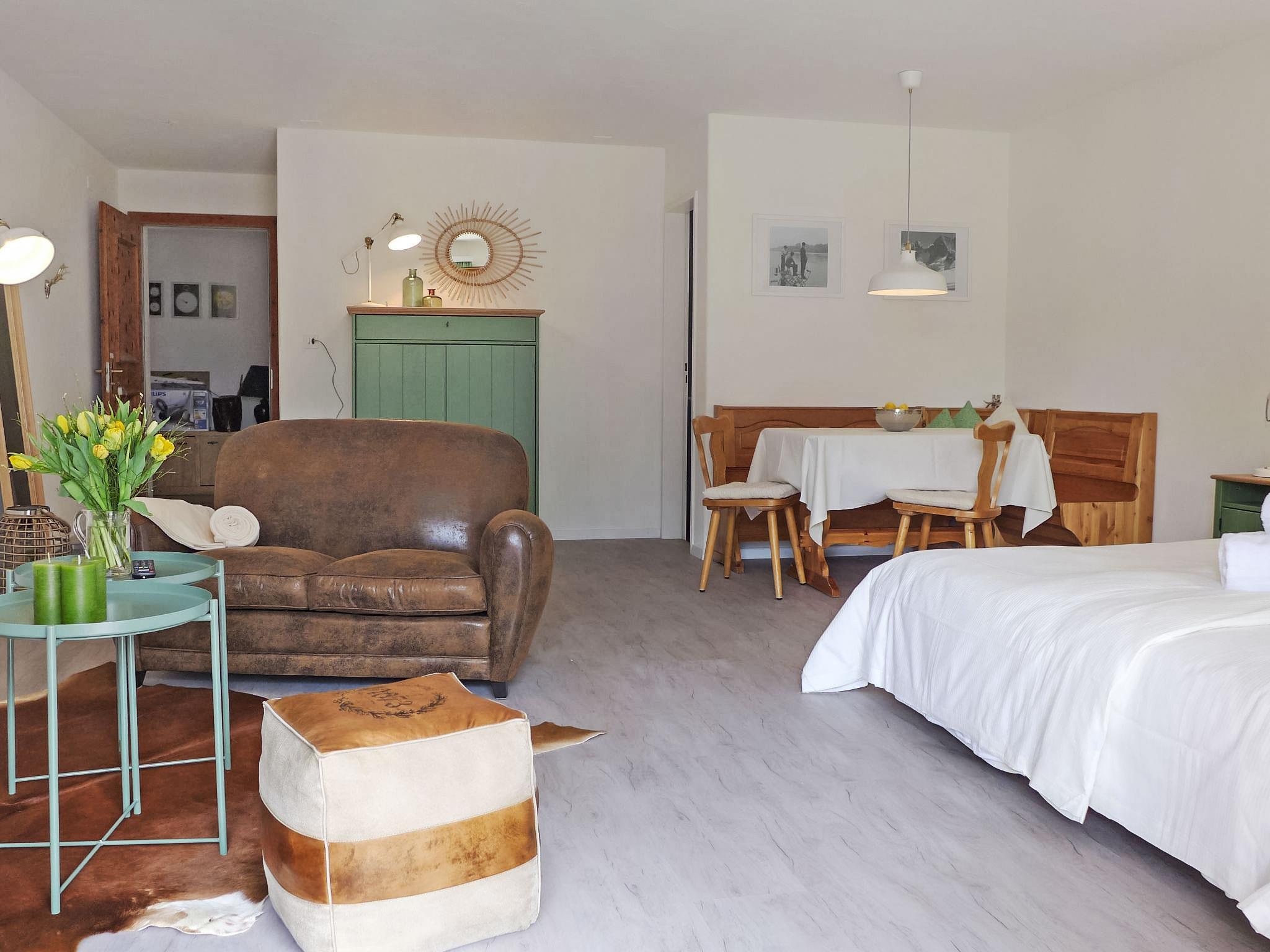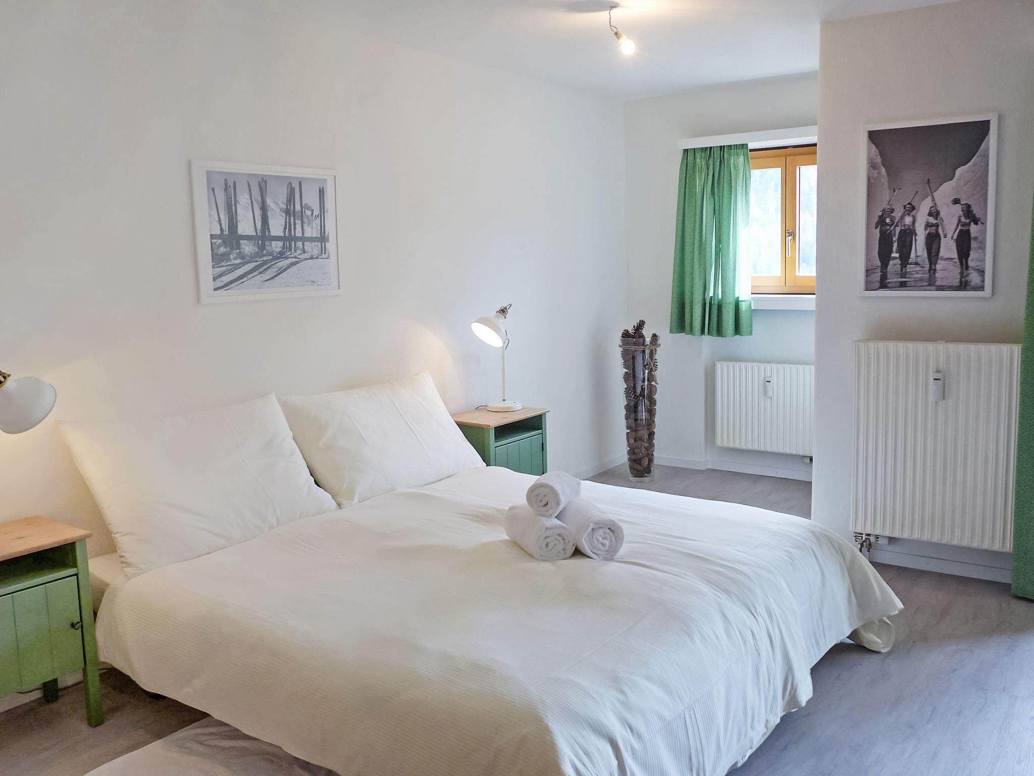"Chesa Bursella 21", 1-Zimmer-Wohnung 41 m2 im 1. Stock. Geräumig, teilweise renoviert im Jahre 2017, gemütlich eingerichtet: offenes Wohn-/Schlafzimmer mit 1 Doppelbett (2 x 90 cm, Länge 200 cm), Essecke und TV. Ausgang zum Balkon, Richtung Osten. Kleine Küche (Backofen, Geschirrspüler, 4 Glaskeramikplatten, Toaster, Wasserkocher, elektrische Kaffeemaschine). Dusche/WC. Heizung. Balkonmöbel (2). Sehr schöne Sicht auf die Berge und das Tal. Zur Verfügung: Haartrockner. Internet (Wireless LAN, gratis). Garage Nr. 21, Höhe 195 cm, Breite 235 cm. Bitte beachten: Maximal 1 Haustier/Hund erlaubt. Kein Fahrstuhl.
