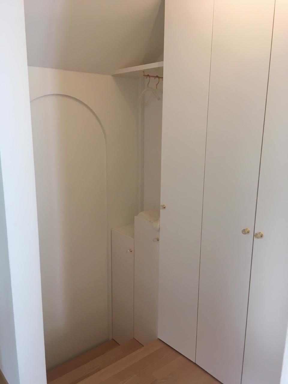 Sonstige Wohnzimmerausstattung (Wohnzimmer1): Zwei halbhohe Schränke mit Tablaren und je einer Stange sind in jeder Ecke. Zudem gibt es eine Stereoanlage und einen Internetanschluss.Schlafsofa: Breite 1.40m