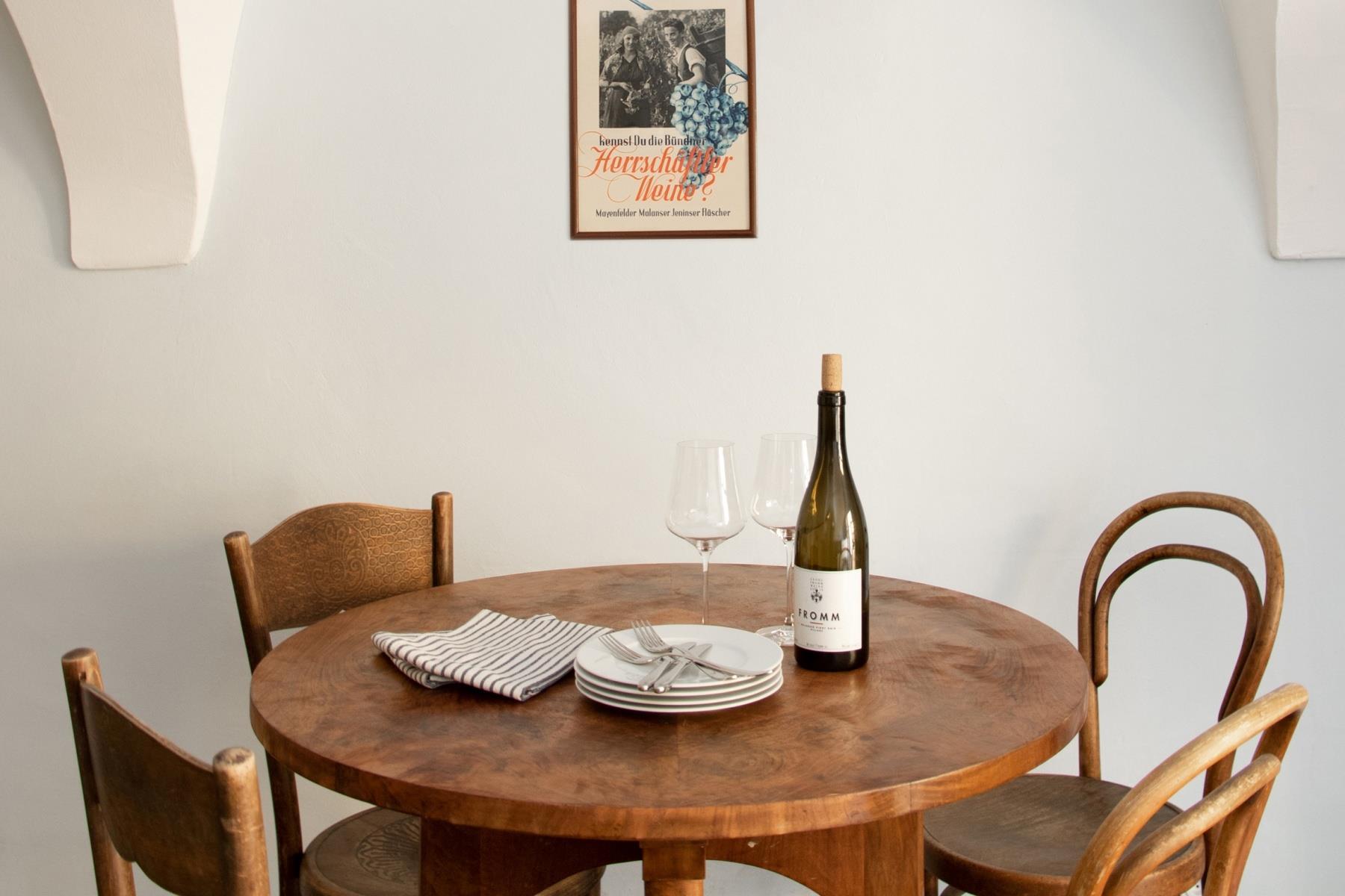 Im Herzen des malerischen Weinbaudorfes Malans liegt ein Ort voller Charme und Charakter. Das historische Wohnhaus aus dem Jahr 1672 wurde mit viel Feingefühl renoviert und verbindet den Zauber vergangener Zeiten mit modernem Komfort.Direkt auf dem Weingut Fromm gelegen, lädt das Haus zum Verweilen ein - sei es bei einem Glas Wein im Garten, in den charaktervollen Räumen oder beim Erkunden der Bündner Herrschaft und der umliegenden Bergwelt. Hier finden Sie Ruhe, Inspiration und die besondere Atmosphäre eines Ortes, der Geschichte atmet und gleichzeitig mitten im Leben steht.Gesamtgrösse Ferienwohnung