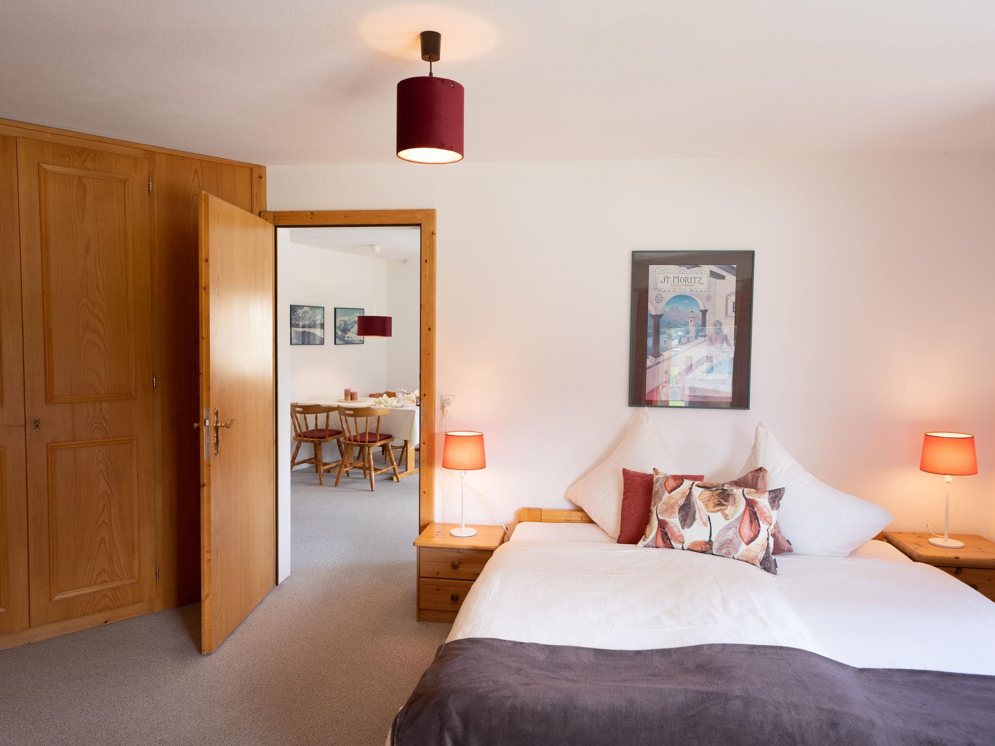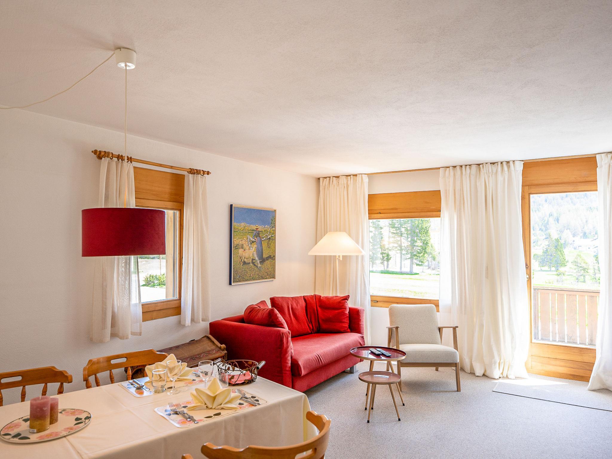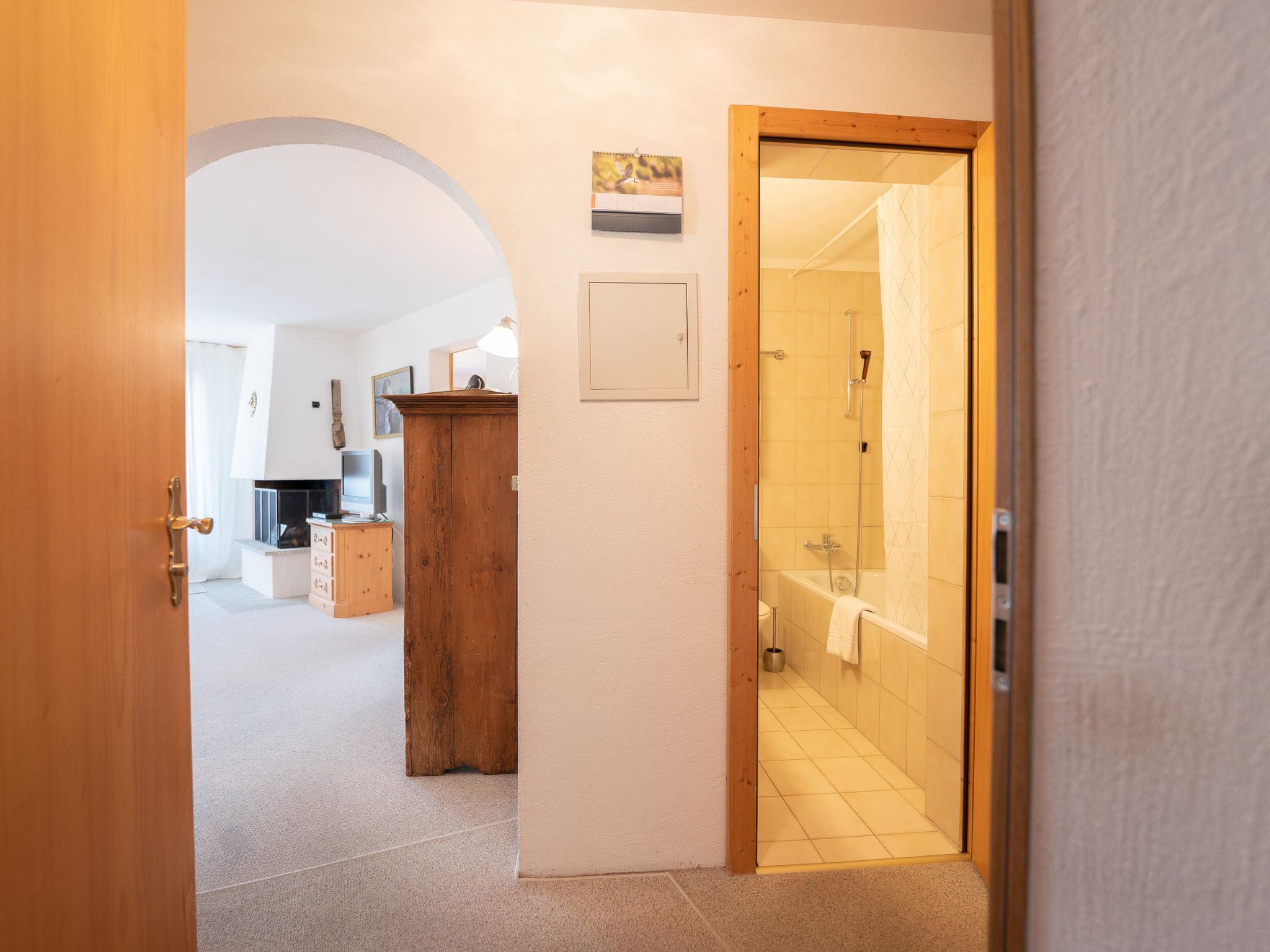 "Chesa Pra dSura 217", 2-Zimmer-Wohnung 52 m2 im 1. Stock. Hell, einfach und gemütlich eingerichtet: Wohn-/Esszimmer mit offenem Kamin (nur Deko), TV (Flachbildschirm). Ausgang zum Balkon. 1 Doppelzimmer mit 1 Doppelbett (2 x 90 cm, Länge 200 cm). Kleine Küche (3 Kochplatten, Backofen, Geschirrspüler, Toaster, Wasserkocher, elektrische Kaffeemaschine, Fondue Set (Käse)). Bad/WC. Teppichboden. Balkonmöbel. Schöne Sicht auf die Landschaft und die Ortschaft. Zur Verfügung: Haartrockner. Internet (WLAN, gratis). Garage Nr. 217 (1 Auto), Höhe 200 cm, Breite 210 cm. Bitte beachten: Nichtraucher-Unterkunft.