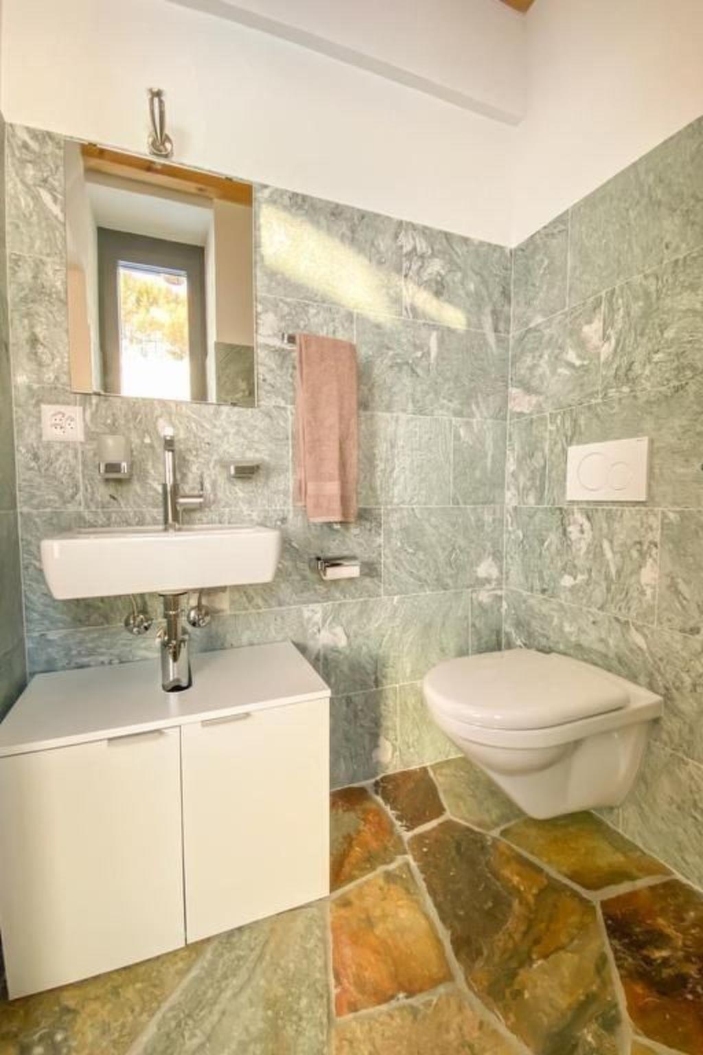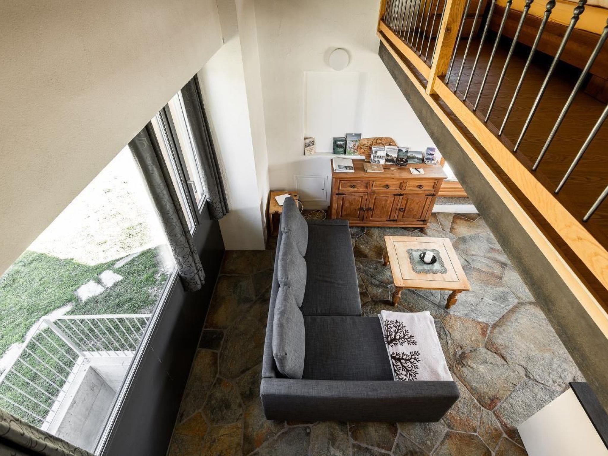 Die Innenausstattung des Hauses spiegelt seinen eleganten Charakter wieder. Es begrüßt die Gäste mit einer praktischen und zugleich gemütlichen Gestaltung, die den Bedürfnissen von bis zu 4 Personen entspricht. Im Eingangsbereich befindet sich der Kleiderschrank den Sie nutzen können um alle Ihre Sommer- und Winterkleider zu verstauen und das zweite Doppelbett, während das Herzstück der Wohnung - die Wohnküche - mit einem kombinierten Backofen/Steamer, einer Geschirr-spülmaschine, einer Nespresso Kaffeemaschine, dem Wohnsofa und Esstisch und weiteren Annehmlichkeiten wie WLAN in allen Räumen ausgestattet ist. Von diesem Wohnbereich geniessen Sie täglich eine bezaubernde Aussicht über die Berge, die Winde und die Abendstimmungen - einfach traumhaft und spannend!