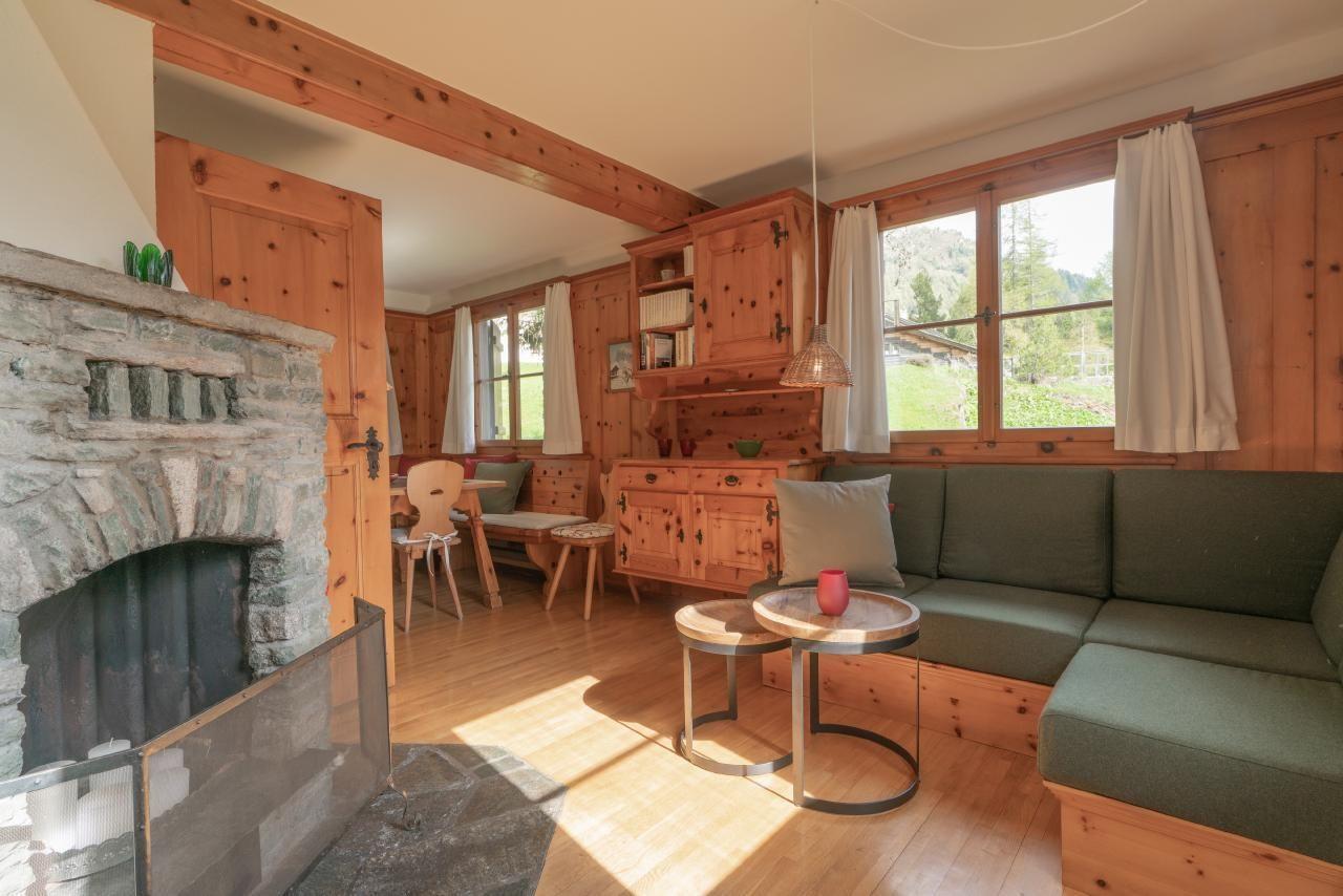 Dieses schmucke und charmante Haus möchte man nicht missen für einen entspannten Ferienaufenthalt! Es befindet sich an einer sehr sonnigen und ruhigen Lage im Ortsteil La Motta in Maloja. Der Umschwung ist grosszügig, geht ins freie Feld über und lädt zum Verweilen auf dem Liegestuhl ein. Der Balkon ist nach Westen ausgerichtet und bietet freien Blick auf die umliegenden Berge. die Schlafzimmer sind sehr geräumig und bietet Kindern viel Fläche zum Spielen. Alle Räumlichkeiten sind sehr hell und liebevoll eingerichtet. Das Haus wurde im Frühjahr 2023 teilrenoviert. Im Wohnraum gibt es einen Kamin für gemütliche Abende vor dem Feuer. Der Luxus besteht nicht in der technischen Einrichtung des Hauses sondern in der Einfachheit, der Schlichtheit und in der gemütlichen Atmosphäre und der Nähe zur Natur.