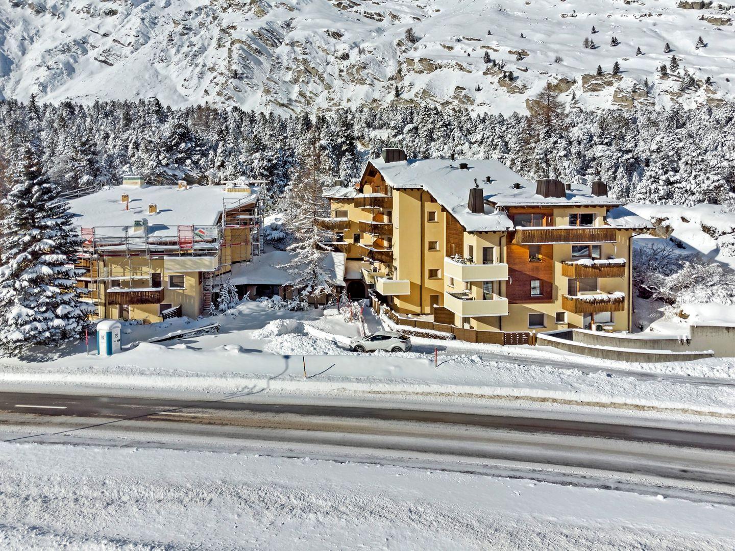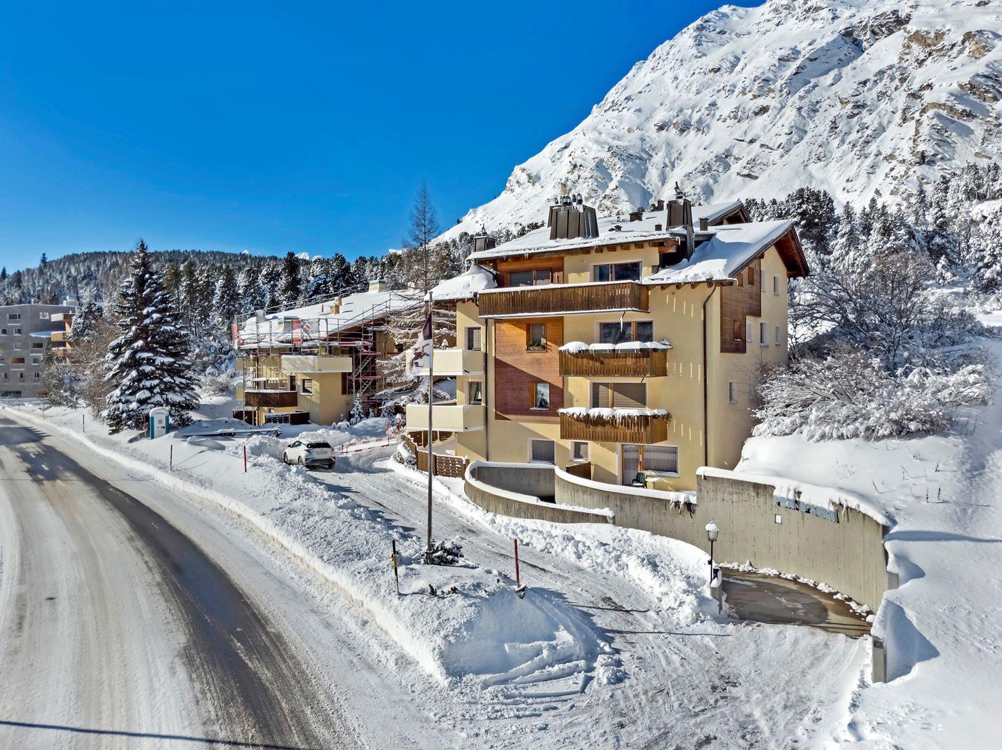 Die Pra d'Sura ist ein Mehrfamilienhaus am Ortsanfang von Maloja. Im Ort gibt es ein kleines Lebensmittelgeschäft.