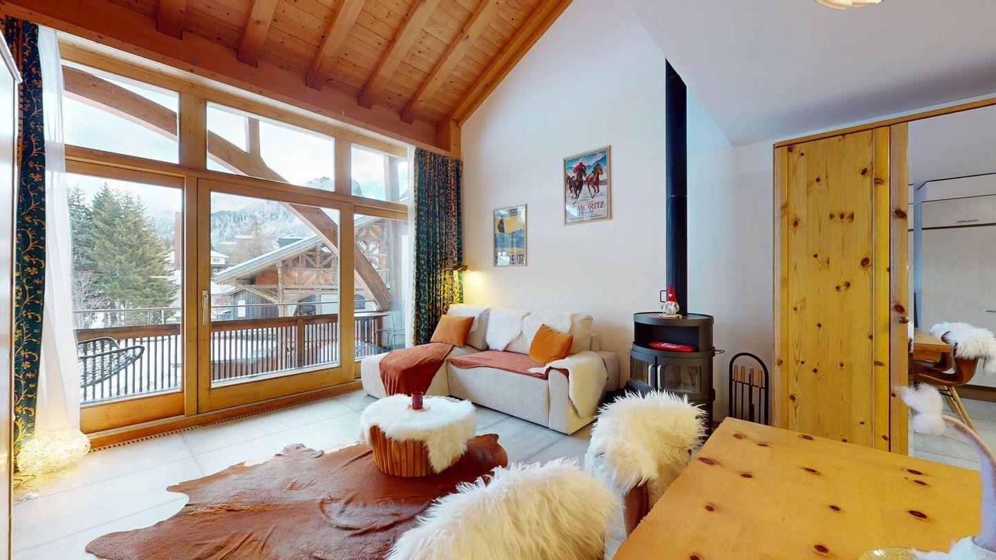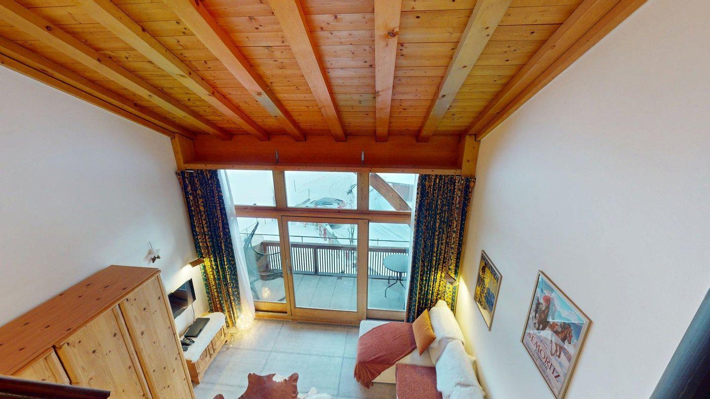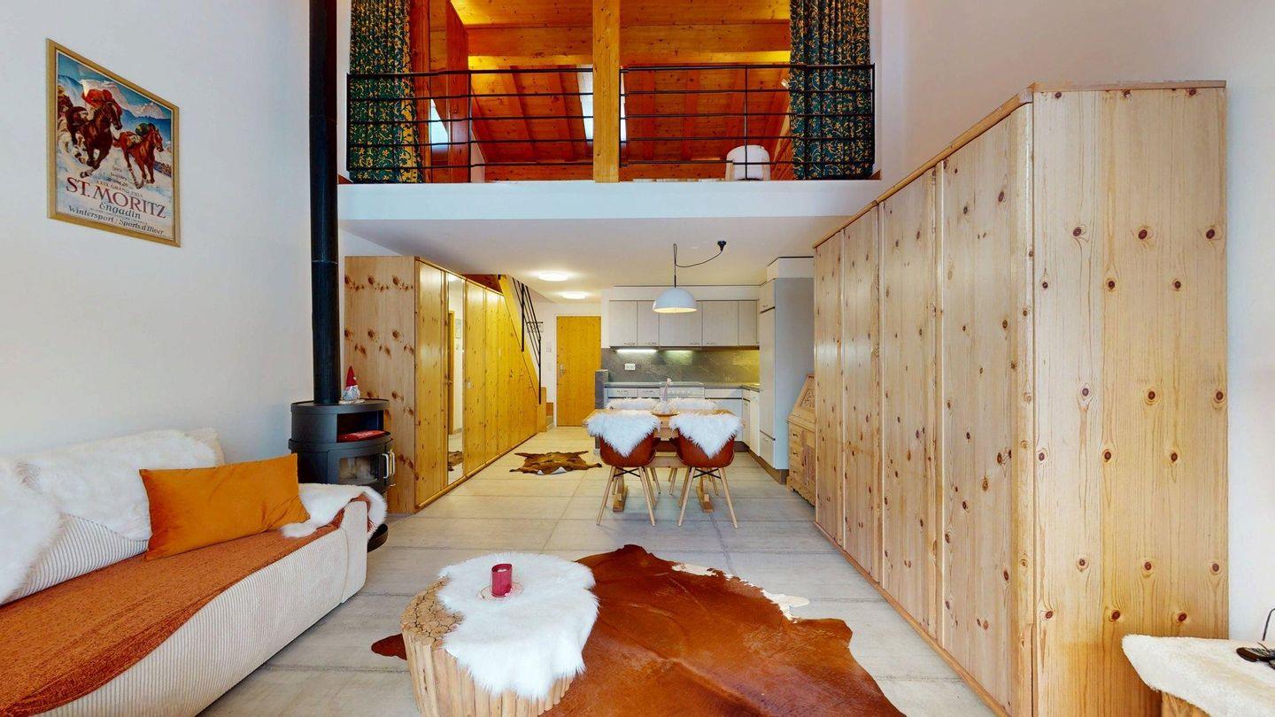 2½ -Zimmerwohnung auf der zweiten Etage, mit Lift. Entree mit Garderobe. Wohn-/ Esszimmer mit Ausgang zum Balkon. Radio/TV und Internet. Offene Küche mit Herd, Backofen, Kühlschrank mit kleinem Gefrierfach, Kaffeemaschine. Doppelschlafzimmer auf der Empore. Badezimmer mit Dusche/WC/Lavabo. Ein Parkplatz in der Garage. Ski- und Veloraum. Gemeinschaftliche Waschküche. Nichtraucherwohnung. Haustiere sind erlaubt.