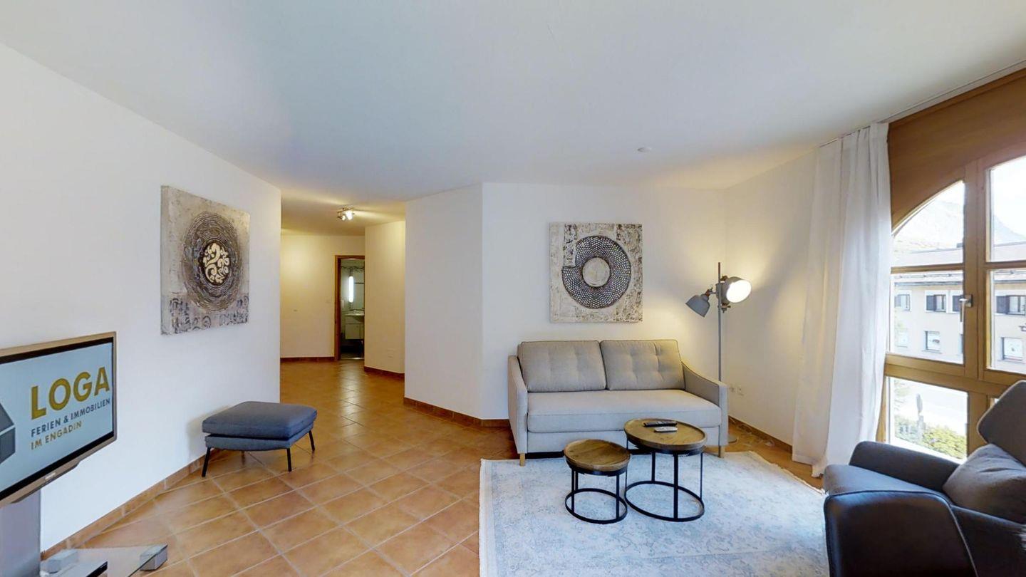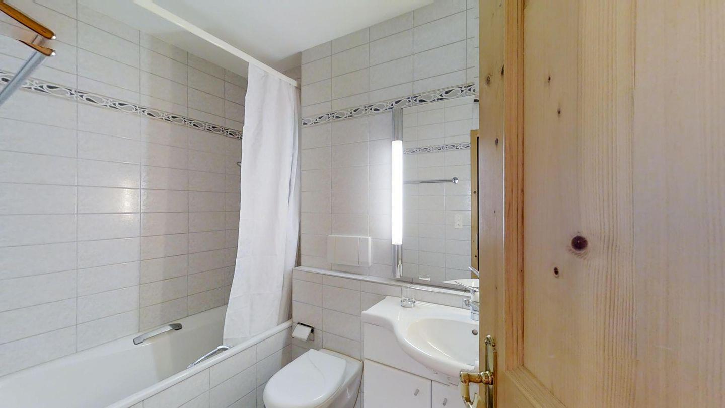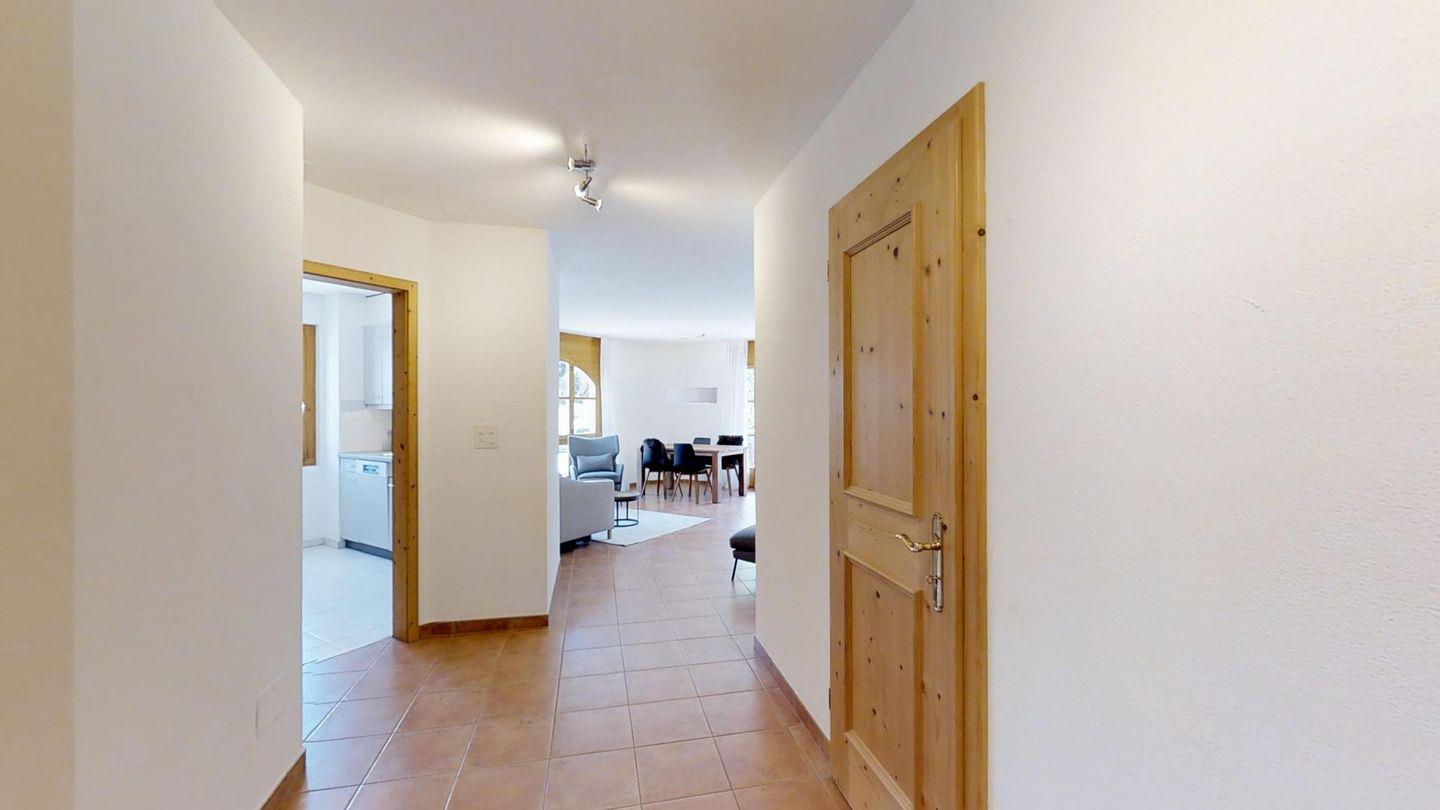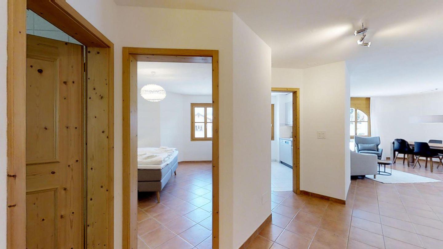 Moderne 2½-Zimmerwohnung im ersten Obergeschoss auf etwa 60 Quadratmetern. Heller Eingangsbereich mit offener Garderobe. Schlafzimmer mit Doppelbett. Wohnzimmer mit Esstisch für 4 Personen. Gemütliche Sofaecke mit Sofabett für 2 Personen. Kamin. Zugang zum Balkon mit Bergsicht. TV/Radio/WIFI. Abgetrennte Küche mit Herd, Kühlschrank/Kühlfach, Chicco d'oro Kaffeemaschine. Badezimmer mit Badewanne, Waschbecken, WC. Separater Abstellraum. Garagenplatz. Skikeller, Waschküche im Haus. Haustiere sind erlaubt.