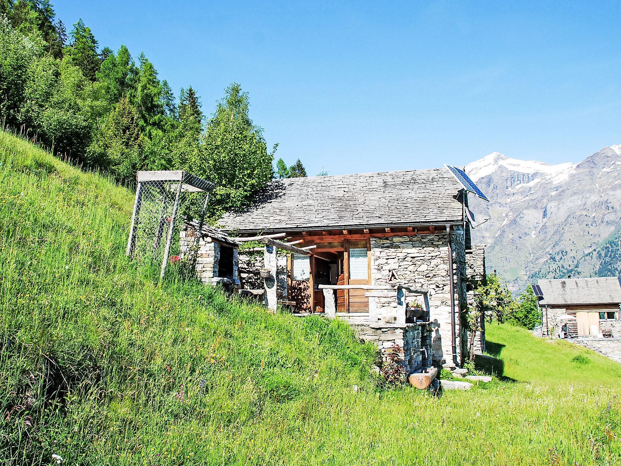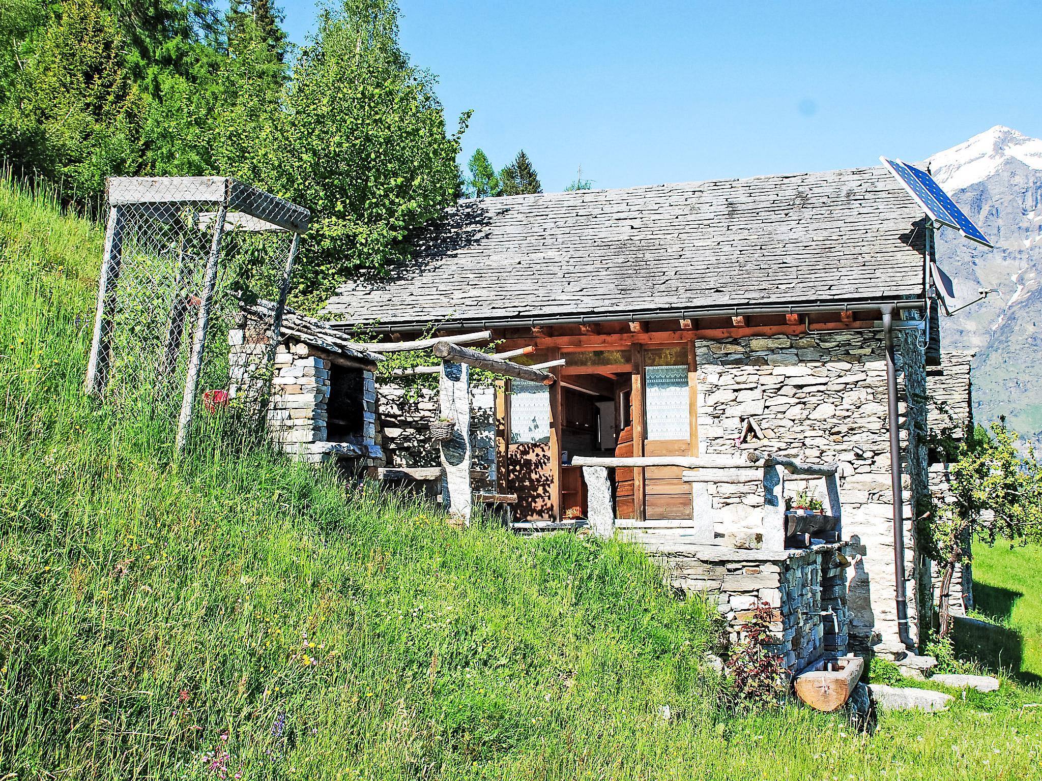 Dagro 18 km von Malvaglia: Die Stromversorgung erfolgt über ein Solarpanel. Herd und Kessel werden mit Gas betrieben. Elektrogeräte über 250W können nicht betrieben werden. Wichtiger Hinweis zu beachten: Bergstrasse 13 km von Malvaglia in Echtzeit 30 Minuten. Die Nutzung der Zufahrtsstrasse ins Val Malvaglia ist seit Neustem Gebührenpflichtig. CHF 7.00/Tag CHF 15.00/Woche CHF 30.00/Monat. Die Gebühr kann in CHF oder Kreditkarte bezahlt werden. Gebührenautomat befindet sich in Caslou. Gemütliches, freistehendes, einfaches Einfamilienhaus "Rustico Pamela", 1'400 m.ü.M., auf 2 Stockwerken, umgeben von Bäumen und Wiesen. In einem Weiler mit 6 Häusern, im Bezirk Valle di Blenio, alleinstehende, ruhige, sonnige Lage auf einem Hügel, 100 m vom Waldrand, im Grünen, Richtung Süden. Zur Alleinbenutzung: naturbelassenes Grundstück 100 m2, terrassierter Garten, 15 m2 mit Wiese 60 m2. Grill. Im Hause: Einstellraum für Fahrräder. 1.1 km lange schmale Zufahrt bis zum Haus (Naturweg, Bergstrasse). 260 m Fussweg bis zum Haus. Breite der Zufahrtsstrasse: 220 cm. Öffentliche Parkplätze 260 m auf der Strasse. Supermarkt 18 km, Restaurant 5 km, Bushaltestelle "Malvaglia Chiesa bus 131-140" 18.7 km, Bahnstation "Biasca FFS - SBB" 24 km. Wanderwege ab Haus 10 m, Luftseilbahn 900 m. Nahe gelegene Sehenswürdigkeiten: Castelli di Bellinzona, UNESCO, Castello di Seravalle, Chiesa Negrentino, Archivio Doneta, Museo della Valle di Blenio, Monte Tamaro, Splash & SPA. Bekannte Seen in der Umgebung sind gut erreichbar: Lago di Luzzone, Lago Retico, Lago Maggiore, Lago di Lugano, Lago Ritòm. Wandergebiete: Val Malvaglia, Valle di Blenio, Nara,Lucomagno, Campo Blenio, La Greina. Bitte beachten: Fahrzeug empfohlen. Geeignet für Familien. Tiere in der Umgebung.