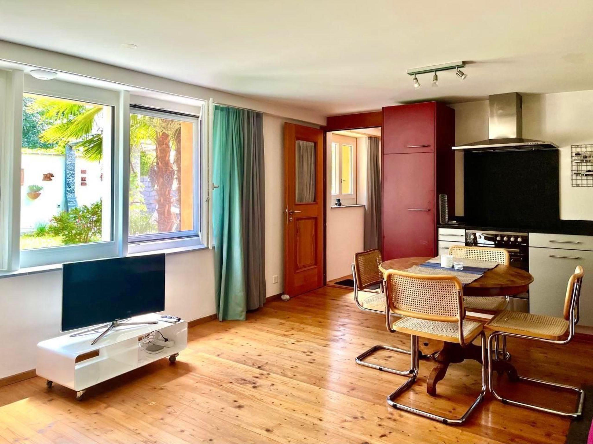 1,5 Zimmerstudio im vom Vermieter bewohnten Einfamilienhaus. Es befindet sich im Parterre mit eigenem Eingang und mit eigenem Gartensitzplatz mit Pergola, zur alleinigen Benutzung. Eine Parkmöglichkeit ist vorhanden und im Preis inbegriffen. Es ist ein grosser Raum mit Esstisch, einem Sofa, einem Doppelbett (160x200cm) und einer sehr gut eingerichteten Küche mit Glaskeramikfeld (vier Kochfelder), Backofen, Granitsteinabdeckung und grossem Kühlschrank. Dusche/ WC inkl. Föhn vorhanden. Das ganze Objekt ist nach oekologischen und baubiologischen Kriterien erstellt worden.