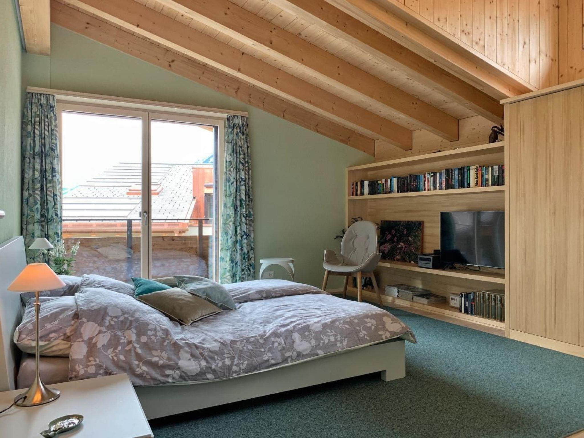 Das geschmackvoll eingerichtete Ferienapartment am Fuße des Haslibergs ist 2019 hochwertig renoviert worden und bietet höchsten Komfort. Mit drei Schlafzimmern, die jeweils mit Doppelbetten ausgestattet sind, bietet das Apartment Platz für sechs Personen. Die an die Schlafzimmer angebundenen Badezimmer sind mit großzügigen Regenduschen ausgestattet. In einem Badezimmer befindet sich zudem eine Badewanne mit Lichteffekten. Das Wohnzimmer der 150m² großen Wohnung bietet einen Panoramablick in die Berge, einen Kamin sowie beidseitge Balkone mit Grillmöglichkeit. Die angrenzende offene Küche mit Kochinsel und Induktionsherd bietet eine moderne Ausstattung inklusive Spülmaschine, Dampfgarer, Ofen, Tellerwärmer und einem Fondue- und Racletteset. Der Esstisch für sechs Personen lässt sich ausziehen, sodass zehn Gäste hieran Platz finden. Ein Haushaltsraum mit Waschmaschine, Trockner, Bügeleisen und Bügelbrett, ein Gäste-WC sowie ein Trockenraum im Keller mit Wäscheleine und Luftentfeuchter runden die Ausstattung des Ferienapartments ab. In der Tiefgarage ist ein Fahrzeugstellplatz vorhanden und das Apartment ist über einen Fahrstuhl erreichbar.