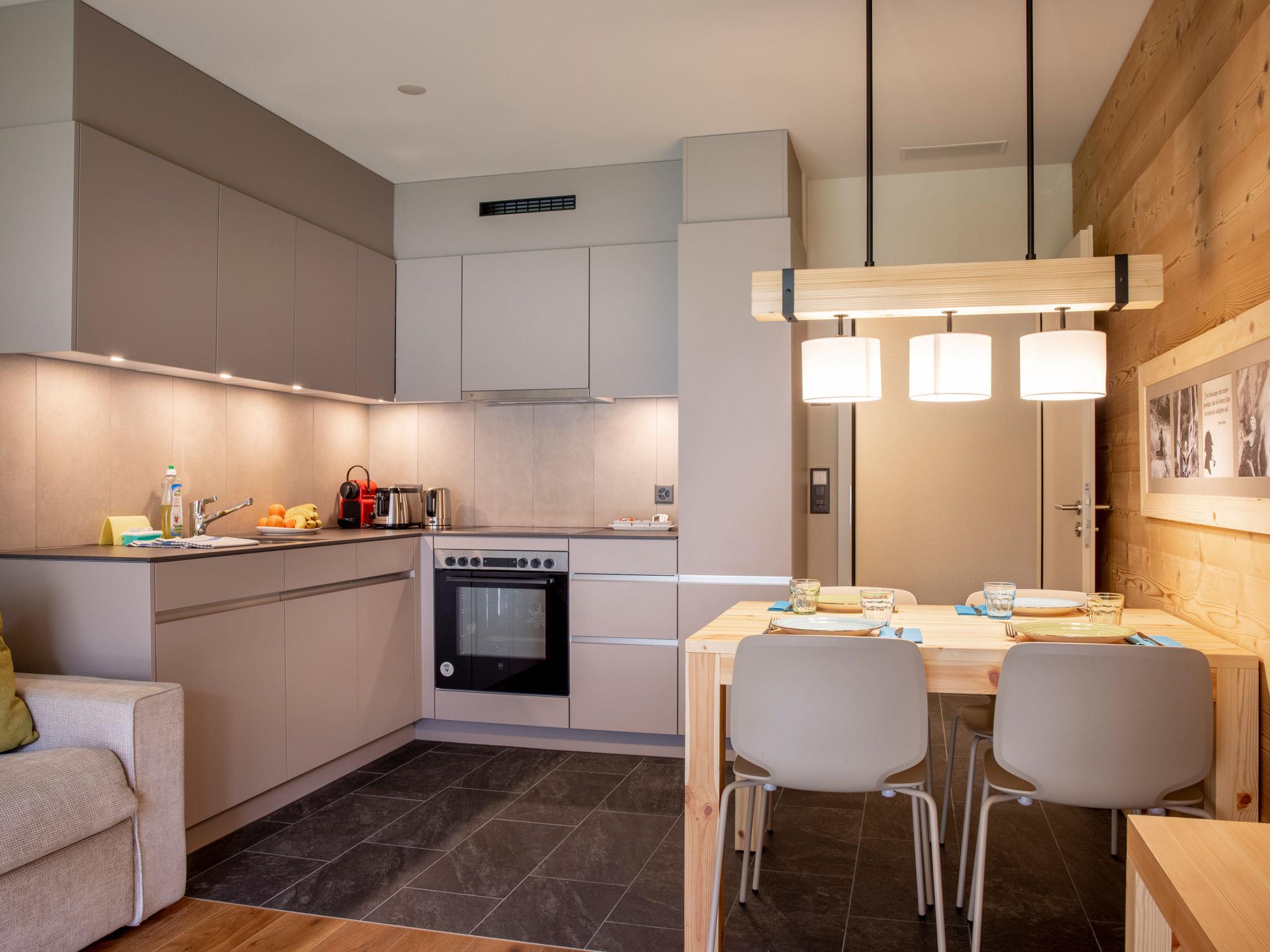 "4personnes 1 chambre Terrasse ou balcon", 2-Zimmer-Wohnung 39 bis 44 m2. Komfortabel und modern eingerichtet: Wohn-/Esszimmer mit 1 Doppeldiwanbett (160 cm, Länge 200 cm), Esstisch, Internationale TV-Sender und Flachbildschirm. Ausgang zum Balkon, zur Terrasse. 1 Zimmer mit 1 Doppelbett (2 x 90 cm, Länge 200 cm). Ausgang zum Balkon, zur Terrasse. Offene Küche (Backofen, Geschirrspüler, 4 Glaskeramikplatten, elektrische Kaffeemaschine, Kapseln für die Kaffeemaschine (Nespresso) extra). Dusche/WC. Fussbodenheizung. Parkettboden. Balkon 10 m2, Südwestlage oder Terrasse 12 m2, Südwestlage. Terrassenmöbel, Balkonmöbel. Eingeschränkte Sicht auf die Berge. Zur Verfügung: Haartrockner. Internet (WLAN, gratis). Bitte beachten: geeignet für Familien. Nichtraucher-Haus. 1 Haustier/Hund erlaubt. Beim Mietobjekt handelt es sich um ein Typenhaus bzw. Um eine Typenwohnung. Ein Fondue Set (Fleisch oder Käse) sowie ein Raclette Ofen kann an der Rezeption gegen ein Depot ausgeliehen werden.
