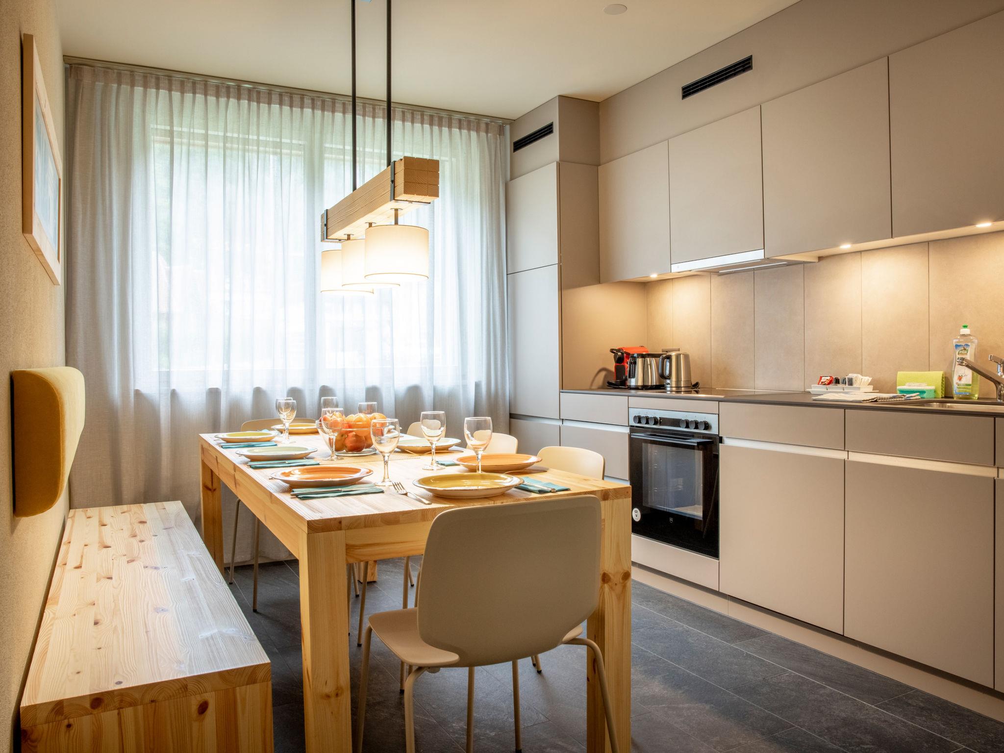 Kinderfreundliche, moderne, sehr komfortable Ferienanlage "SWISSPEAK Resorts Meiringen", 600 m.ü.M., auf 4 Stockwerken, Baujahr 2019. 6 Häuser im Ferienresort. 79 Wohnungen in der Residenz. Im Ortszentrum von Meiringen, 12 km vom See. Zur Mitbenutzung: Park mit Pflanzen, Wiese. Kinderspielplatz. In der Anlage: Empfang, Aufenthaltsraum, Wireless LAN, Sauna, Ruheraum, Spielzimmer, Fahrstuhl, Einstellraum für Fahrräder, Skiraum, Zentralheizung, Waschmaschine (extra), Wäschetrockner (zur Mitbenutzung, extra). Wäschewechsel (zusätzlich extra). Zufahrt bis zum Haus. Parkplatz (beschränkte Anzahl, extra), Gemeinschaftsgarage (extra) beim Haus, öffentliche Parkplätze 600 m extra. Maße: Höhe 210 cm. E-Ladestation. Supermarkt 400 m, Restaurant, Bar 50 m, Bäckerei, Café 200 m, Bushaltestelle "Meiringen, Bahnhof" 200 m, Bahnstation "Meiringen" 200 m, Freibad 800 m, Hallenbad 400 m, Badesee "Hasliberg" 14 km. Golfplatz (18 Loch) 33 km, Tennis, Tennishalle 800 m, Reitstall 10 km, Wanderwege ab Haus 50 m, Luftseilbahn 1 km, Skibushaltestelle 100 m, Langlaufloipe 14 km, Kinderspielplatz 100 m. Nahe gelegene Sehenswürdigkeiten: Sherlock Holmes Museum 50 m, Reichenbach Falls 1.3 km, Aareschlucht 1.6 km, Freilichtmuseum Ballenberg 9 km, Brienzer Rothorn 13 km, Interlaken 28 km. Bekannte Skigebiete sind gut erreichbar: Meiringen-Hasliberg 1 km, Schilthorn 44 km, Jungfrau Region 47 km. Bekannte Seen in der Umgebung sind gut erreichbar: Brienzersee 12 km, Gelmersee 22 km, Thunersee 33 km. Wandergebiete: Hasliberg 1 km, Rosenlaui 12 km. Bitte beachten: geeignet für Familien. Jugendgruppen nur auf Anfrage. Eisenbahnlinie 20 m vom Haus. Flugplatz 6 km vom Haus. Das Foto ist nur ein Wohnungsbeispiel. Die Ferienanlage wurde im Dezember 2019 eröffnet. Sie verfügt über eine beschränkte Anzahl an Tiefgaragen- und Aussenparkplätzen. Das Resort liegt nur 200 Meter vom Bahnhof Meiringen entfernt. Sie können Ihr Gepäck bequem von der SBB zu Hause abholen und direkt ins Resort liefern lassen. Buchbar bis 2 Tage vor Anreise auf www.sbb.ch/gepaeck-special.