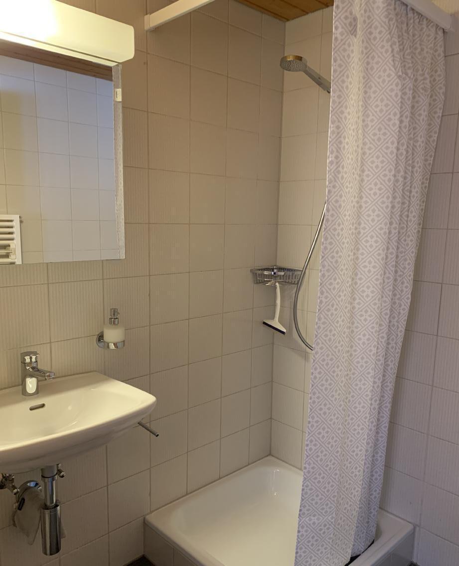 Die helle und geräumige 2-Zimmer-Wohnung im Erdgeschoss kombiniert perfekt moderne Annehmlichkeiten mit dem Hauch traditioneller Gemütlichkeit. Direkt von der Wohnung aus haben Sie Zugang zur Terrasse – ideal für eine erholsame Pause. Die Innenausstattung umfasst ein liebevoll eingerichtetes Wohnzimmer mit Bettsofa, Sessel, Salontischen, einem Büchergestell, TV mit Swisscombox und einer Auswahl an Büchern. Das Schlafzimmer lädt mit Nachtischen, Nachtischlampen, einer Kommode und einem Kleiderständer zum Entspannen ein. Die Küche lässt keine Wünsche offen und bietet neben einer Geschirrspülmaschine auch eine Nespresso-Kaffeemaschine, einen Wasserkocher und diverse Kochutensilien. Für die kleinsten Gäste steht auf Wunsch sogar ein Kinderreisebett bereit.