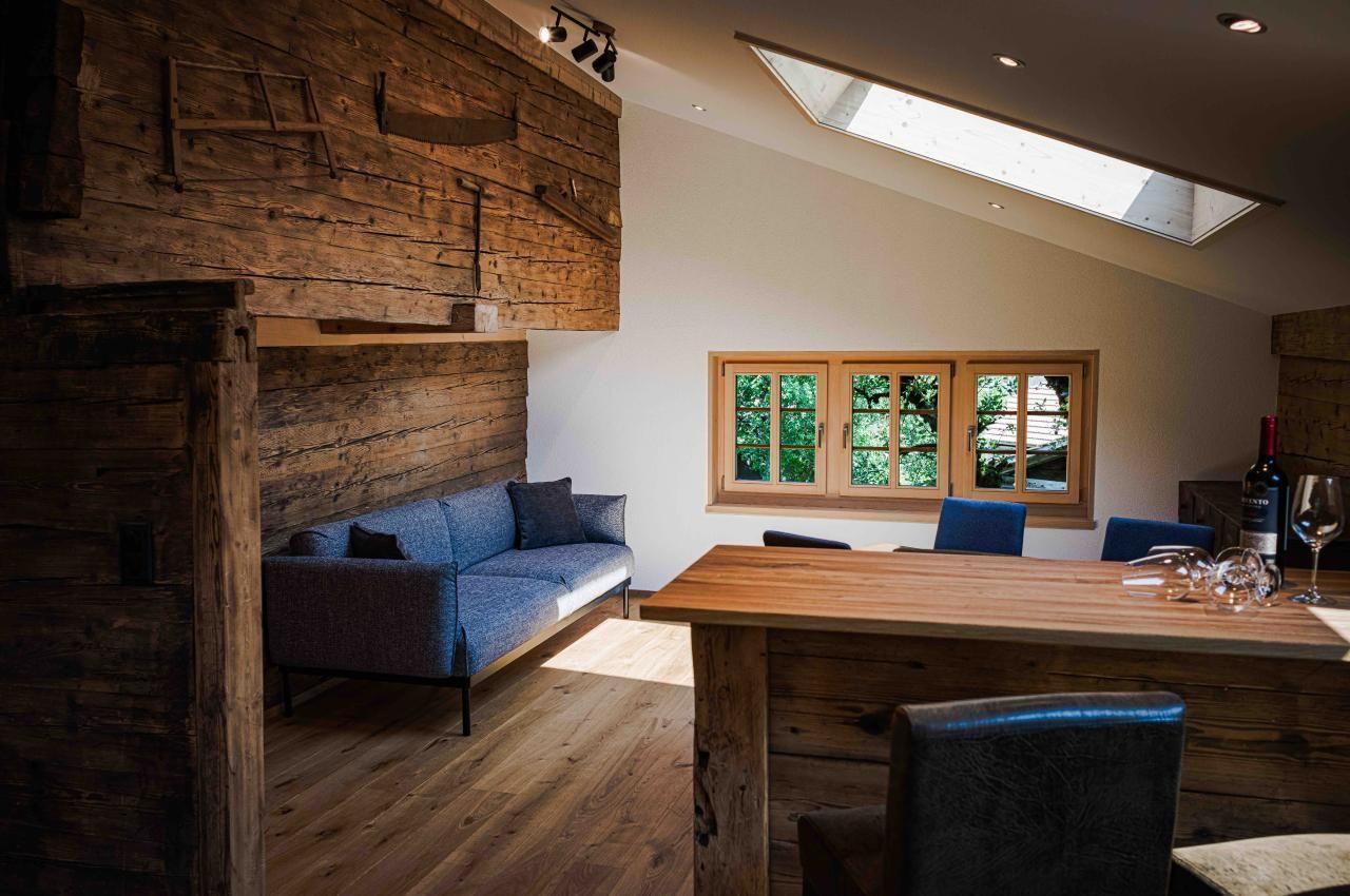 Die 3,5- Zimmerwohnung ist geeignet für Paare wie auch für Familien (bis 6 Personen). Die Wohnung ist mit viel Liebe und Feingefühl frisch renoviert worden. Alte Holzwände ergänzen sich mit weissem modernen Verputz.
