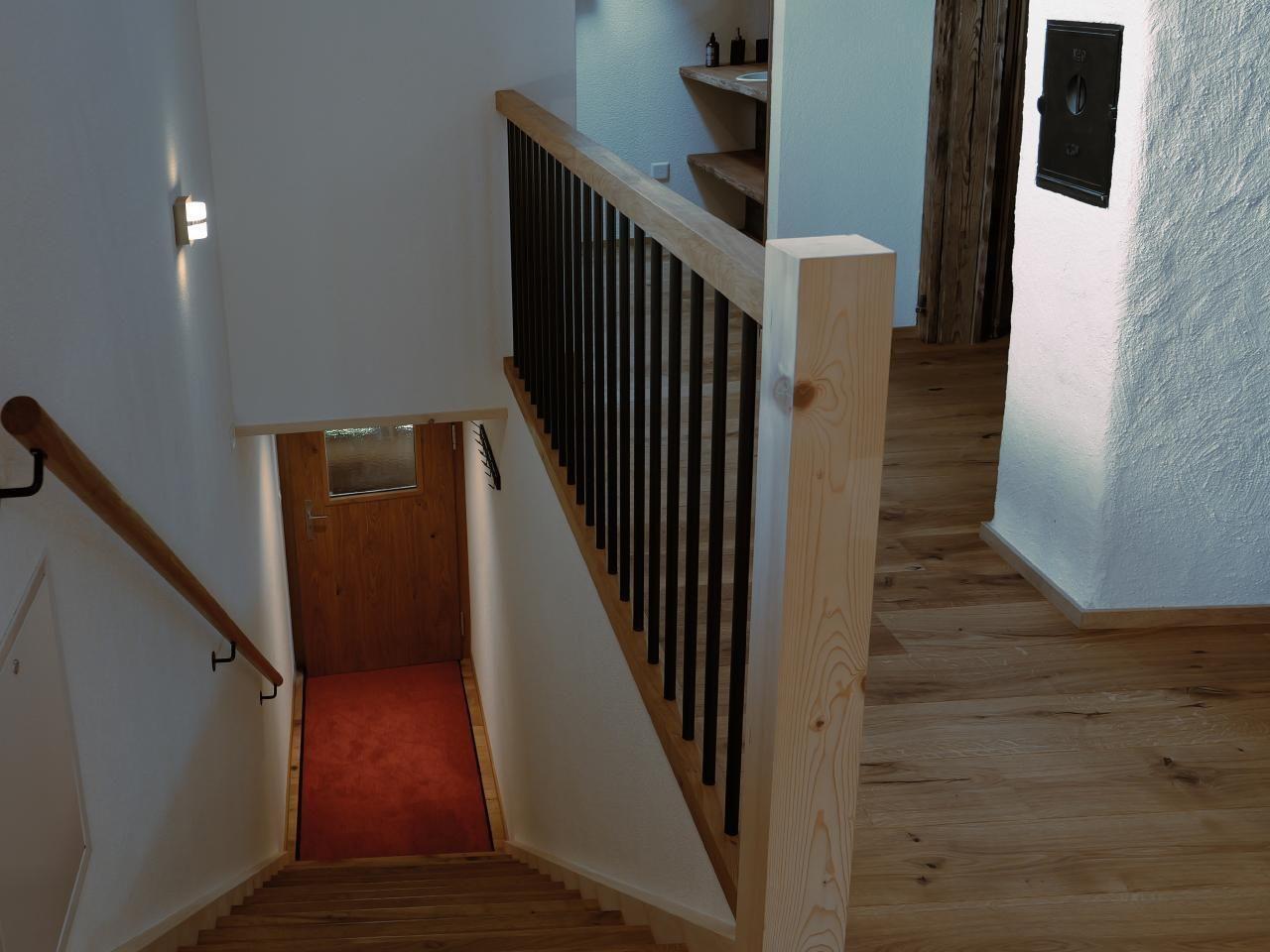 Die Küche ist mit neuesten Geräten (Kombisteamer, Glaskeramik, Geschirrspüler und Kühlschrank) ausgestattet. Übliche Kochutensilien sowie Geschirr ist vorhanden. Das Elternschlafzimmer hat ein Doppelbett (180cm) und antiker Kleiderschrank, welcher noch von den Vorfahren im Haus steht. Im zweiten Schlafzimmer steht ein weiteres Doppelbett (140cm) sowie auf der Galerie zwei Einzelbetten, welche zusammengeschoben werden können (2x 90cm).