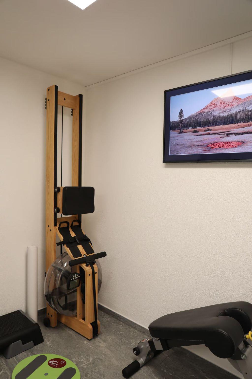 Das Innere des Hauses besticht durch sein spannendes Wohnerlebnis auf halben Etagen, ergänzt durch sorgfältig ausgewählte Farben und Materialien sowie stilvolle Deko-Elemente. Wohlgefühl und Gemütlichkeit prägen jede Ecke des Hauses – ein Ort, der bei jedem Wetter zum Verbleib einlädt. Egal ob Sauna, Dampfbad oder der Fitnessraum mit Ausrüstung auch für größere Personen, hier finden Sie zu jeder Jahreszeit das passende Angebot für Ihr Wohlbefinden.