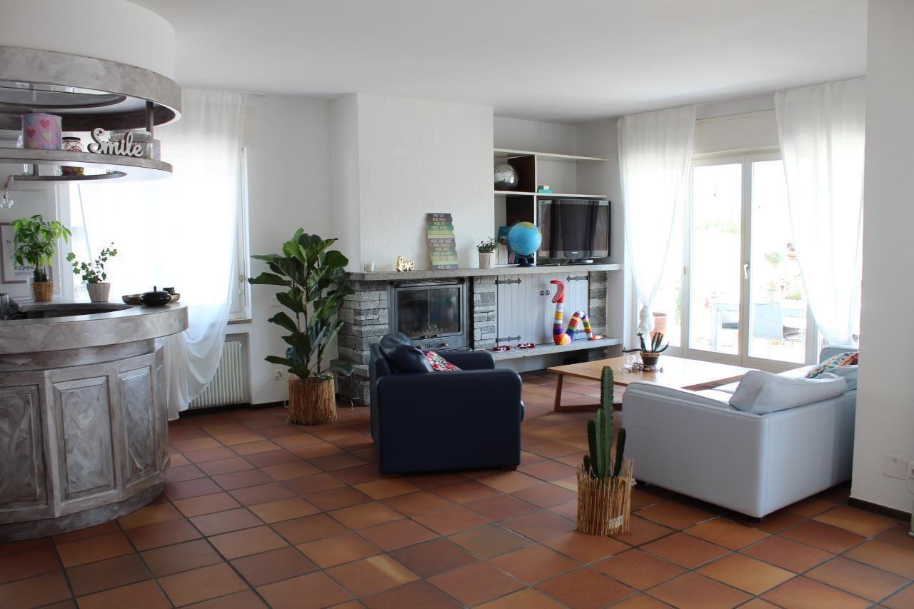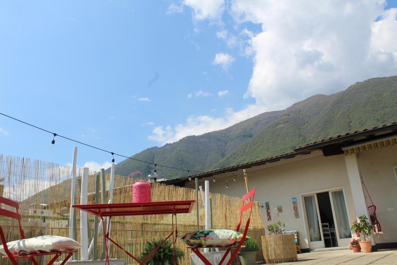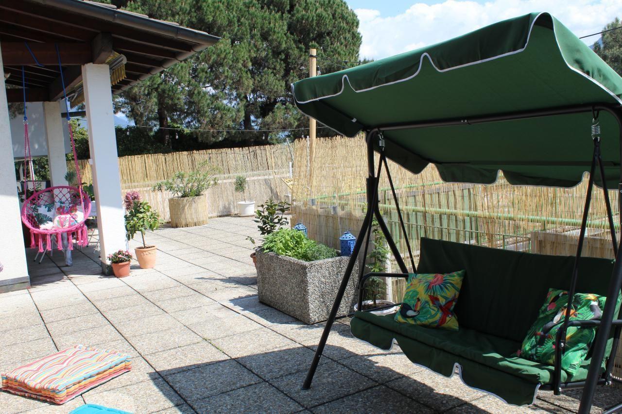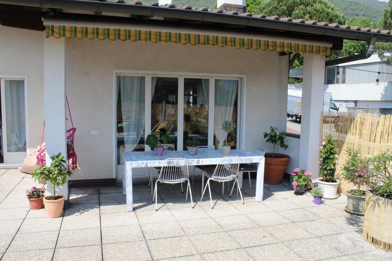 Es ist eine sehr geräumige Wohnung mit einer privaten Terrasse voller Blumen (ca. 110 m²), die abends beleuchtet werden kann und in einer privilegierten Gegend am Lago Maggiore liegt.