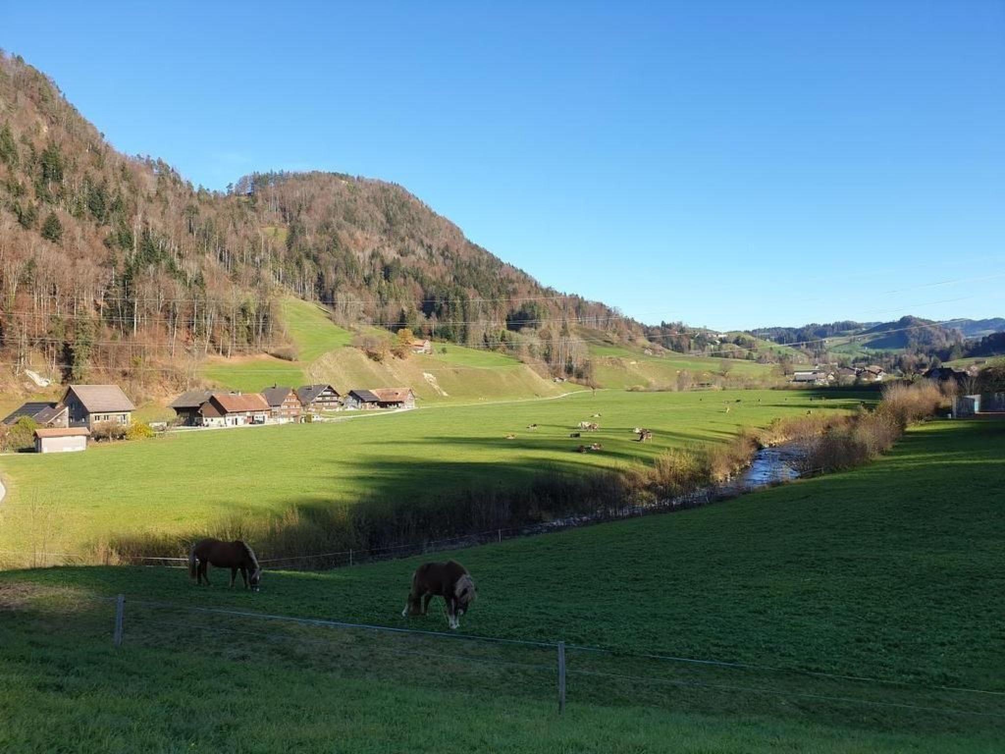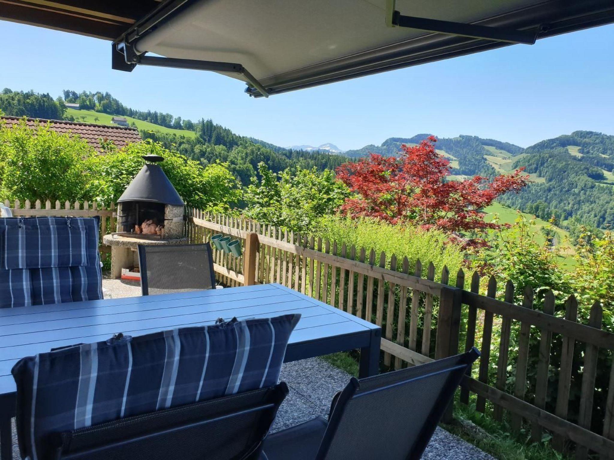 Die Lage des Chalets inmitten des reizvollen Neckertals ermöglicht eine Vielzahl an Freizeitaktivitäten: Das umliegende Wandergebiet mit seinen lohnenswerten Aussichtspunkten und urchigen Bergrestaurants lädt zu Erkundungen ein. Trotz der ruhigen, idyllischen Lage sind es bis zum Dorfzentrum von Mogelsberg nur etwa 600 m. Auch die Stadt St. Gallen lässt sich mit Bahn oder Auto in nur 25 Minuten erreichen, was das Chalet zu einem perfekten Ausgangspunkt für vielfältige Unternehmungen macht.