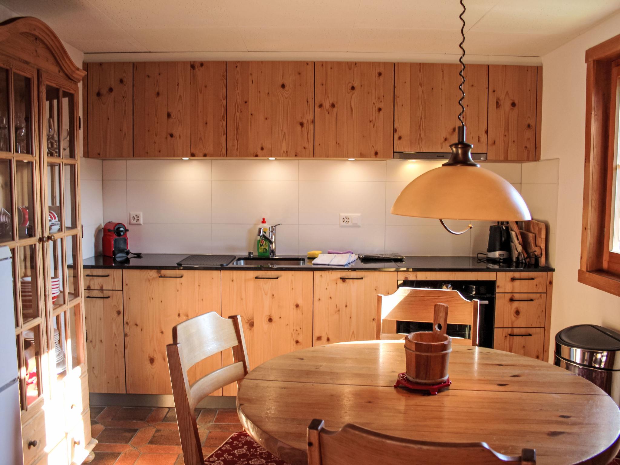"Chalet Les 3 Marmottes", 4-Zimmer-Chalet 110 m2 auf 2 Stockwerken. Geschmackvoll und gemütlich eingerichtet: Wohn-/Esszimmer mit offenem Kamin, Esstisch und Sat-TV (Flachbildschirm), Stereoanlage. Ausgang zum Balkon, Richtung Süden. Offene Küche (4 Kochplatten, Backofen, Geschirrspüler, Mikrowelle, Tiefkühler, elektrische Kaffeemaschine, Fondue Set (Käse)). Sep. WC. Unteres Geschoss: 2 Zimmer, jedes Zimmer mit 2 Betten (100 cm, Länge 200 cm). Ausgang zur Terrasse. 1 Zimmer mit 1 x 2 Etagenbetten, Dusche. Bad/WC. Terrassenmöbel. Herrliche Panoramasicht auf die Berge und die Landschaft. Zur Verfügung: Waschmaschine, Wäschetrockner. Internet (WLAN, gratis). Bitte beachten: Nichtraucher-Haus. Maximal 2 Haustiere/Hunde erlaubt.