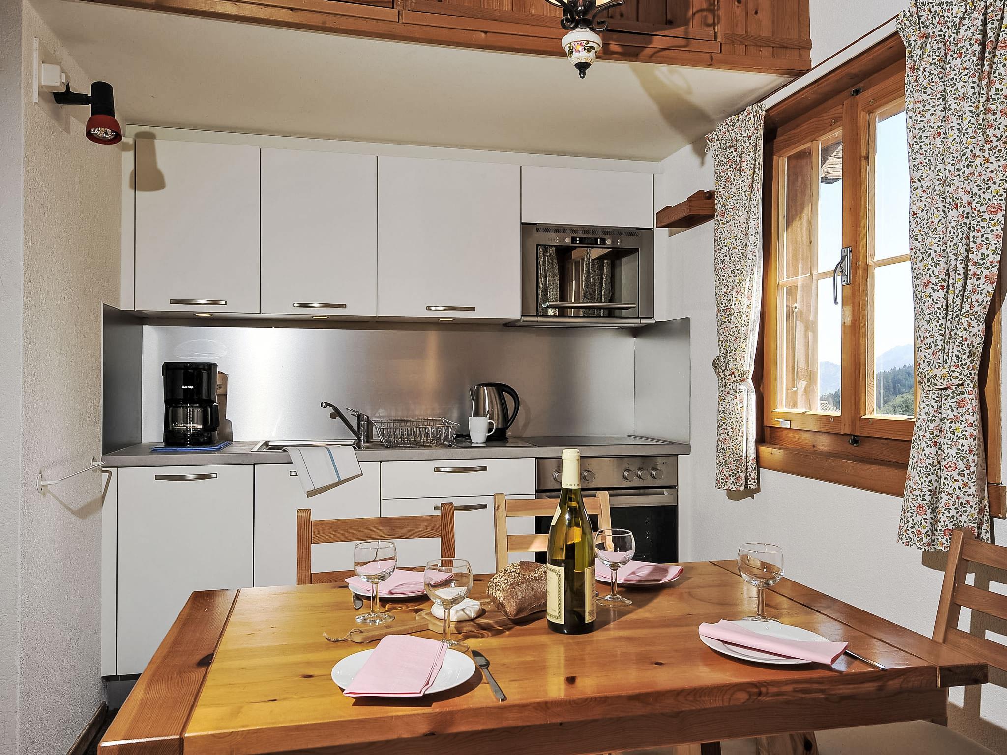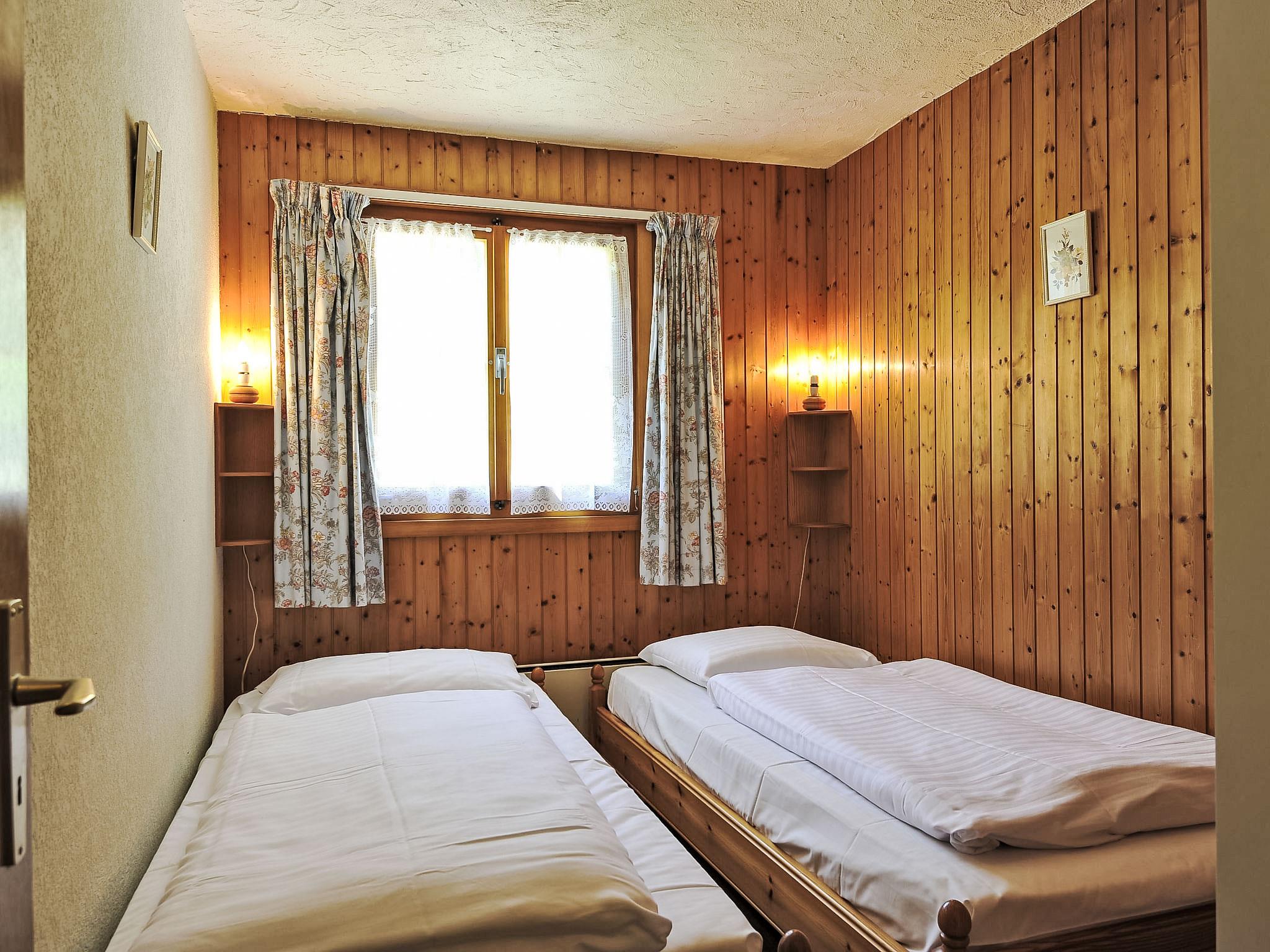 "Mountain View", 5-Zimmer-Chalet 110 m2 auf 3 Stockwerken. Zweckmässig und gemütlich eingerichtet: 1 Zimmer mit 2 Betten (90 cm, Länge 200 cm). 1 kleines Zimmer mit 2 Betten (70 cm, Länge 180 cm). 1 Zimmer mit 2 Betten (90 cm, Länge 190 cm). Bad/Bidet/WC. Unteres Geschoss: 1 Zimmer mit 1 Bett (90 cm, Länge 190 cm). 1 Zimmer mit 1 Doppelbett (160 cm, Länge 200 cm). Bad/Bidet/WC. Obergeschoss: Wohn-/Esszimmer mit Esstisch, Sat-TV und Video. Ausgang zum Balkon, Richtung Süden. Offene Küche (Backofen, Geschirrspüler, 4 Glaskeramikplatten, Mikrowelle, Tiefkühler, elektrische Kaffeemaschine, Fondue Set (Käse)). Sep. WC. Sehr schöne Sicht auf die Berge und die Landschaft. Zur Verfügung: Waschmaschine, Wäschetrockner. Internet (Wireless LAN, gratis). Bitte beachten: Nichtraucher-Unterkunft.