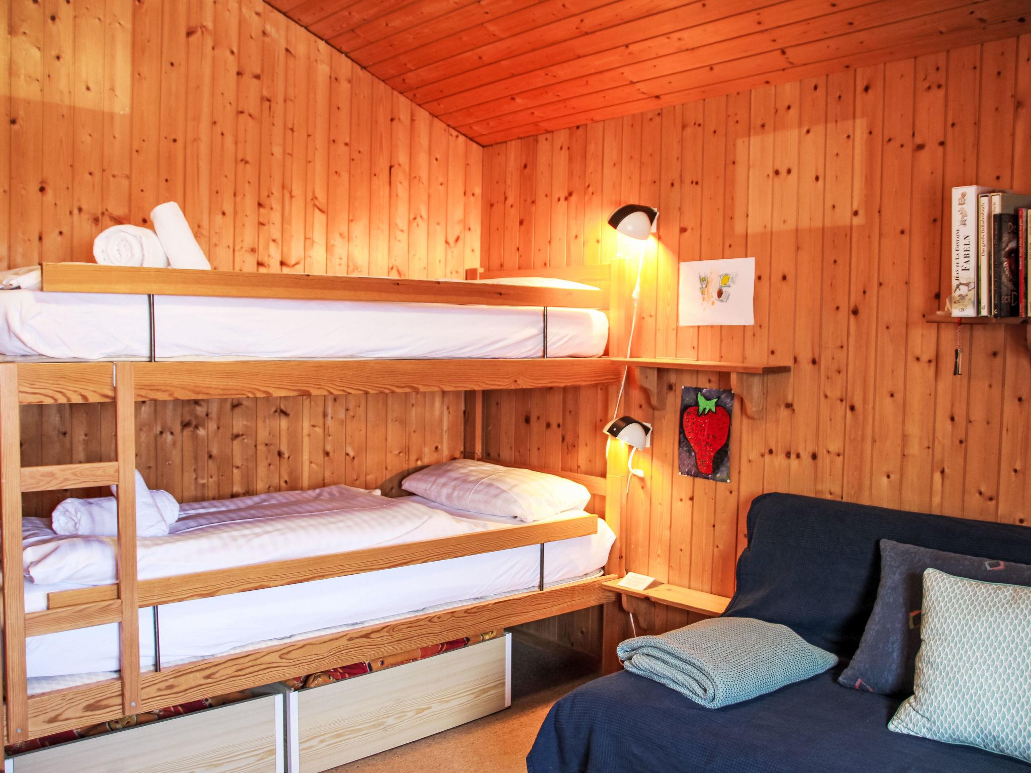"Henri", 3-Zimmer-Chalet 85 m2. Mit viel Holz eingerichtet: Wohn-/Esszimmer mit offenem Kamin. Ausgang zur Terrasse. Offene Küche (4 Kochplatten, Backofen, Geschirrspüler, Toaster, Wasserkocher, elektrische Kaffeemaschine, Racletteofen, Fondue Set (Käse)). Ausgang zur Terrasse. Obergeschoss: 1 Zimmer mit 1 Doppelbett (2 x 90 cm, Länge 200 cm). 1 Kinderzimmer mit 1 Diwanbett (140 cm, Länge 200 cm), 1 x 2 Etagenbetten (90 cm, Länge 200 cm). Dusche/WC, Doppelwaschbecken. E-Heizung. Terrasse, Südlage. Terrassenmöbel, Gartengrill. Sehr schöne Sicht auf die Berge und die Landschaft. Zur Verfügung: Waschmaschine, Wäschetrockner. Parkplatz in 50 m. Bitte beachten: Nichtraucher-Unterkunft.