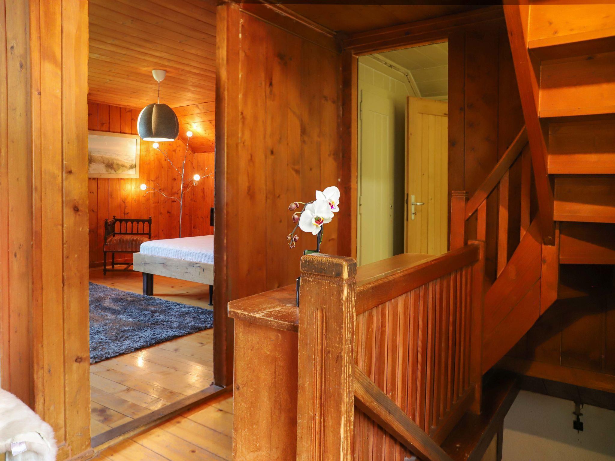 "Le Revers", 5-Zimmer-Chalet 100 m2 auf 2 Stockwerken. Teilweise renoviert im Jahre 2018, einfach und komfortabel eingerichtet: Wohn-/Esszimmer mit Esstisch, Sat-TV, DVD, Kachelofen und Petrolofen. Ausgang zum Garten, zur Terrasse. Offene Küche (Backofen, Geschirrspüler, 4 Glaskeramikplatten, Tiefkühler, elektrische Kaffeemaschine, Kapseln für die Kaffeemaschine (Nespresso) extra). Sep. WC. Obergeschoss: 1 Doppelzimmer mit 1 Doppelbett (1 x 180 cm, Länge 200 cm). 1 Zimmer mit 1 franz. Bett (1 x 140 cm, Länge 200 cm). 1 offenes kleines Zimmer mit 1 Bett. Bad/WC, Dusche/WC. Grosser Garten. Terrassenmöbel. Herrliche Sicht auf den See, die Berge, den Garten, die Landschaft und die Ortschaft. Zur Verfügung: Waschmaschine, Wäschetrockner, Babybett bis 3 Jahre (extra). Internet (Wireless LAN, gratis). Bitte beachten: geeignet für Familien. Nichtraucher-Unterkunft. Maximal 1 Haustier/Hund erlaubt.