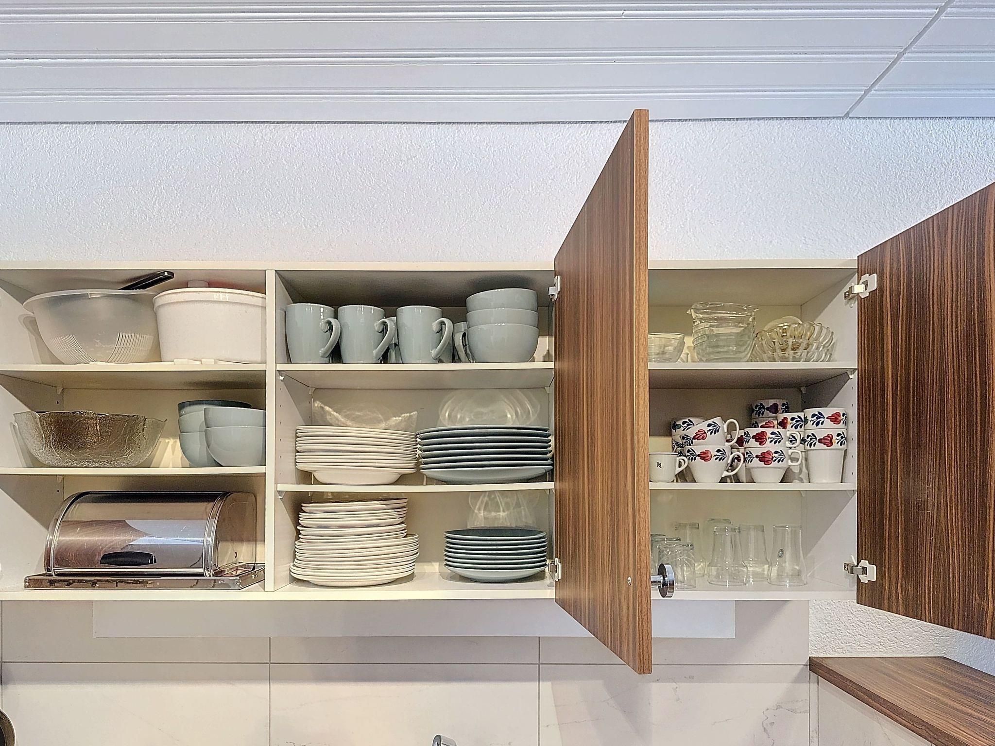 ?? EINE GUT AUSGESTATTETE KÜCHE mit Geschirrspüler, Backofen, Mikrowelle, Kaffeemaschine, Wasserkocher, Toaster, Fondueset und Grundnahrungsmitteln wie Kaffee, Tee, Öl, Salz und Pfeffer.