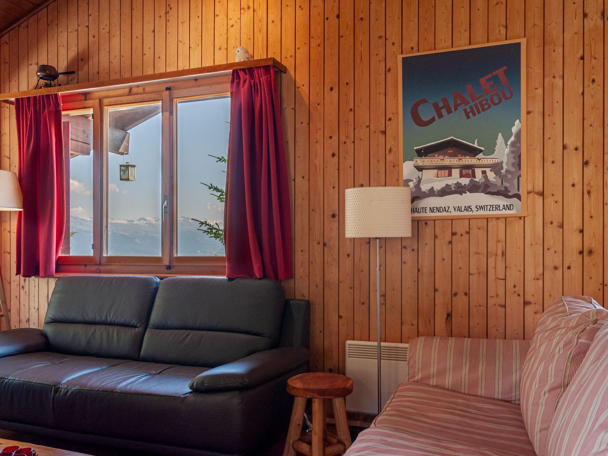 Pattier Haut: Chalet "Le Hibou". Am Ortsrand, 1.2 km vom Zentrum von (600m by foot), ruhige Lage. Zur Alleinbenutzung: Garten mit Rasen. Im Hause: Waschmaschine. Steile Zufahrt bis zum Haus. Im Winter bitte Schneeketten mitbringen. Parkplatz. Supermarkt 1.5 km, Restaurant 1.2 km, Bäckerei 1.5 km, Bushaltestelle "Haute-Nendaz, La Crettaz" 600 m, Bahnstation "Sion" 15.7 km. Golfplatz (18 Loch) 18 km, Tennis 2 km, Skisportanlagen 1.6 km, Skibushaltestelle 100 m. Bekannte Skigebiete sind gut erreichbar: Nendaz 4 Vallées 1.6 km. Wandergebiete: Bisse du Milieu 600 m. Bitte beachten: Gratis Skibus.