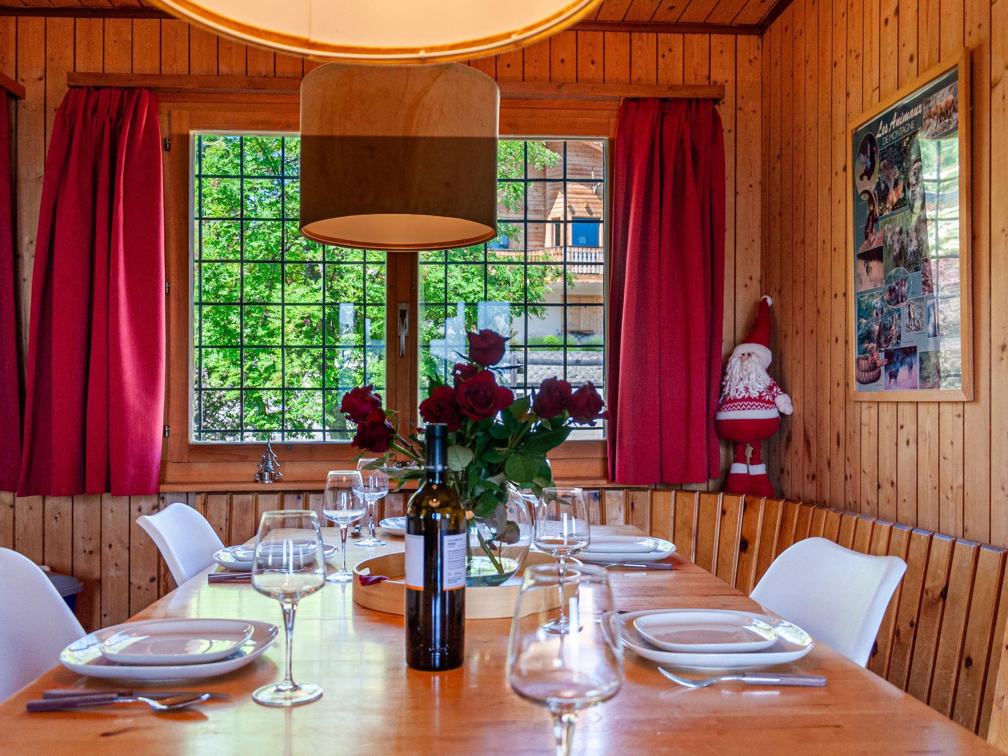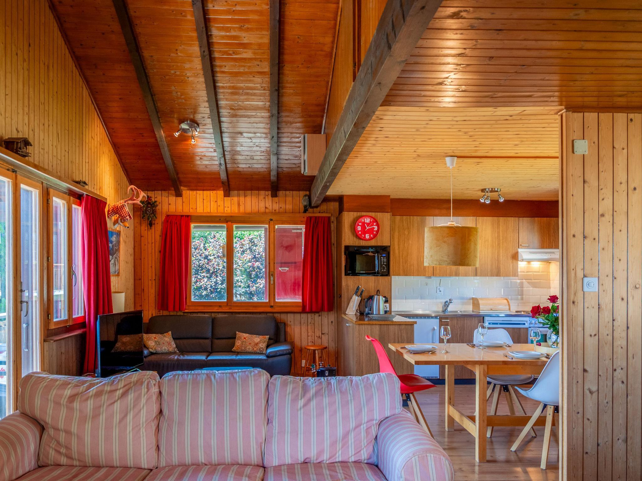 "Le Hibou", 4-Zimmer-Chalet 102 m2 auf 2 Stockwerken. Wohn-/Esszimmer mit offenem Kamin, Sat-TV, Kabel-TV, Stereoanlage und DVD. Ausgang zur Terrasse. Offene Küche (Backofen, Geschirrspüler, Toaster, Wasserkocher, Mikrowelle, elektrische Kaffeemaschine, Kapseln für die Kaffeemaschine (Nespresso) extra, Racletteofen, Fondue Set (Chinoise, Käse)). Dusche, sep. WC. E-Heizung. Unteres Geschoss: 3 Zimmer, jedes Zimmer mit 2 Betten (90 cm, Länge 190 cm). Bad/WC. Balkon, Ostlage, grosse Terrasse 20 m2, Nordlage und Westlage, kleiner Gartensitzplatz, Südlage und Westlage. Terrassenmöbel, Gartengrill (mobil). Schöne Sicht auf die Berge und das Tal. Zur Verfügung: Waschmaschine, Wäschetrockner, Babybett. Internet (WLAN, gratis). Parkplatz (2 Autos). Bitte beachten: Nichtraucher-Unterkunft. Maximal 1 Haustier/Hund erlaubt.