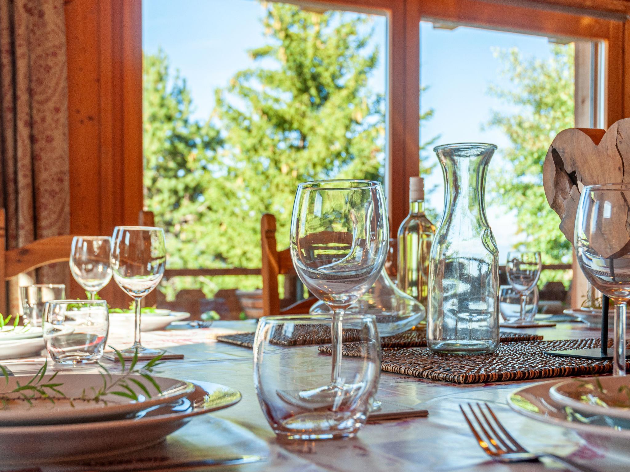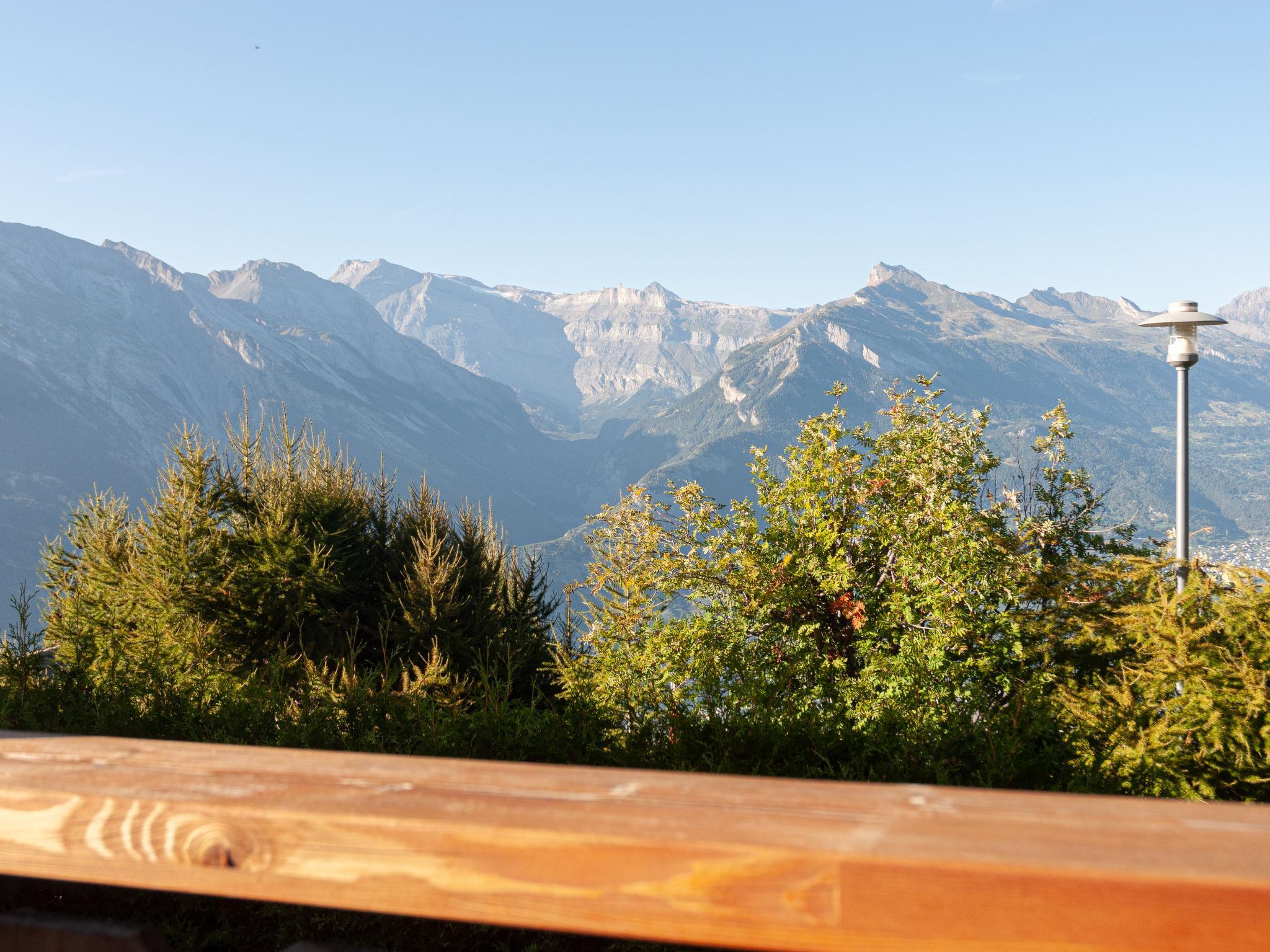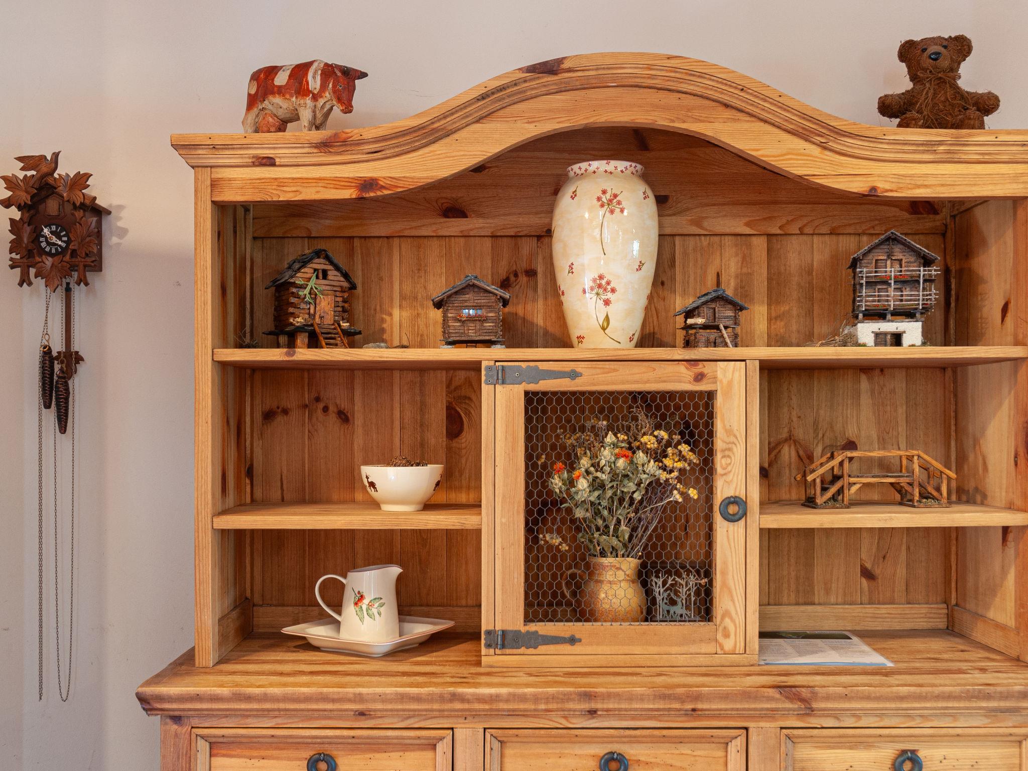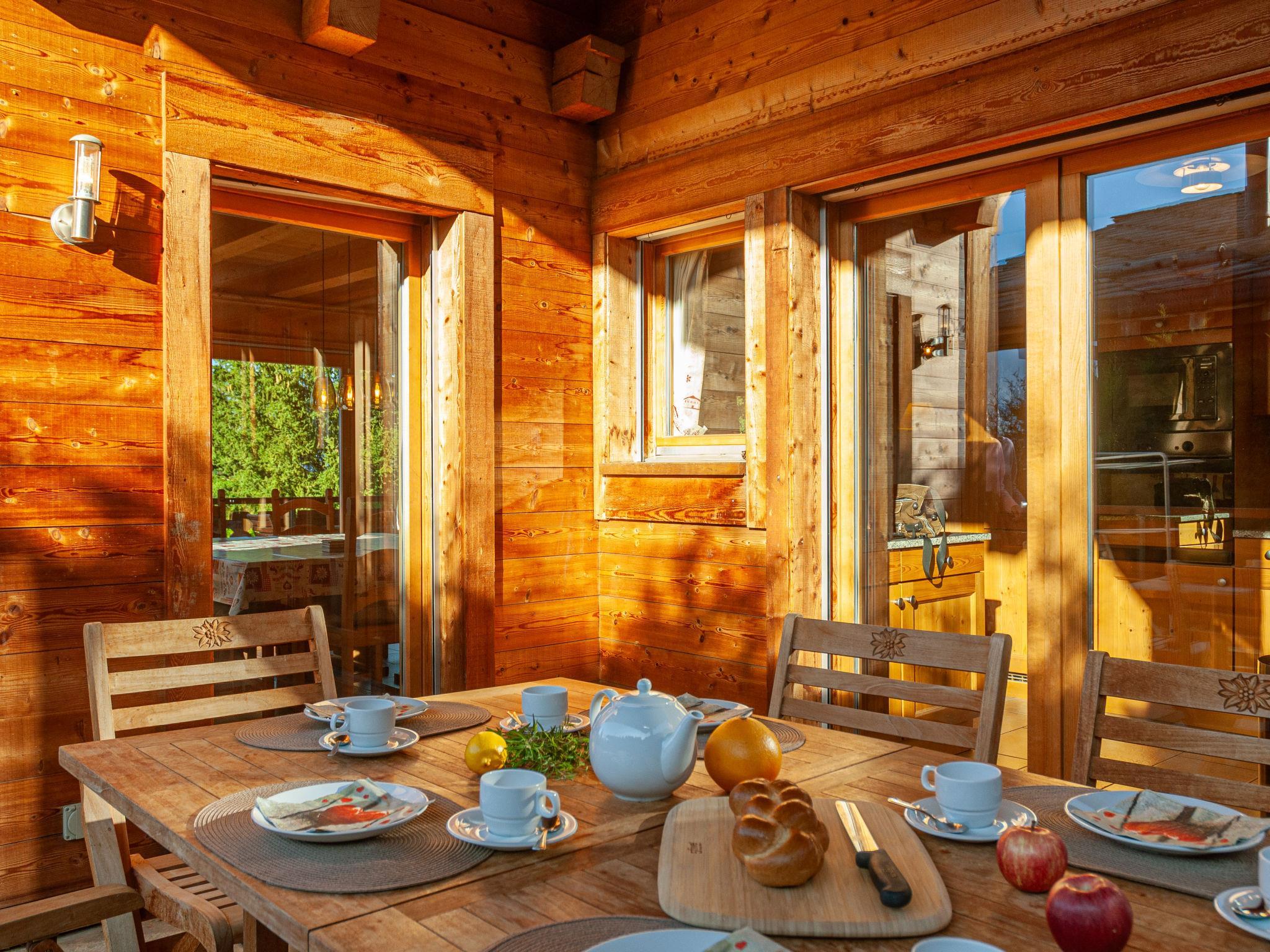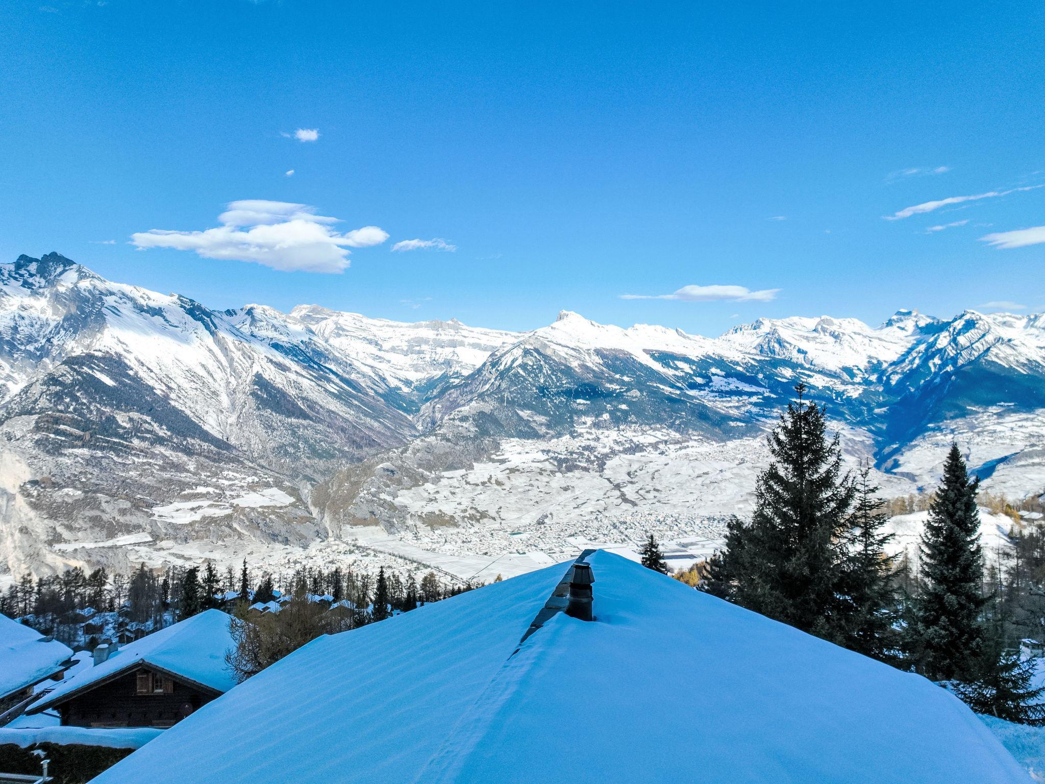 "Rêves des Alpes", 5-Zimmer-Chalet 150 m2 auf 3 Stockwerken. Geräumig, mit viel Holz eingerichtet: grosses Wohn-/Esszimmer mit offenem Kamin, Kabel-TV, Stereoanlage, DVD und E-Heizung. Ausgang zum Balkon, zur Terrasse. Offene Küche (Backofen, Geschirrspüler, 4 Glaskeramikplatten, Toaster, Wasserkocher, Mikrowelle, elektrische Kaffeemaschine, Kapseln für die Kaffeemaschine (Nespresso) extra, Racletteofen, Fondue Set (Käse)) mit Bar. Sep. WC. E-Heizung. Unteres Geschoss: 1 Zimmer mit 1 franz. Bett (180 cm, Länge 200 cm). 2 Zimmer, jedes Zimmer mit 2 Betten (90 cm, Länge 200 cm). Bad/WC, Bad/Dusche/WC. Obergeschoss: 1 grosses Zimmer mit 1 franz. Bett (160 cm, Länge 200 cm), Bad/WC. Ausgang zum Balkon. 2 Balkone, Nordlage und Westlage, kleiner Balkon, Südlage Terrasse. Terrassenmöbel, Gartengrill. Sehr schöne Sicht auf die Berge und das Tal. Zur Verfügung: Waschmaschine, Kinderhochstuhl, Haartrockner. Internet (WLAN, gratis). Parkplatz (1 Auto), Garage (2 Autos), Höhe 210 cm, Breite 240 cm. Bitte beachten: Nichtraucher-Unterkunft.