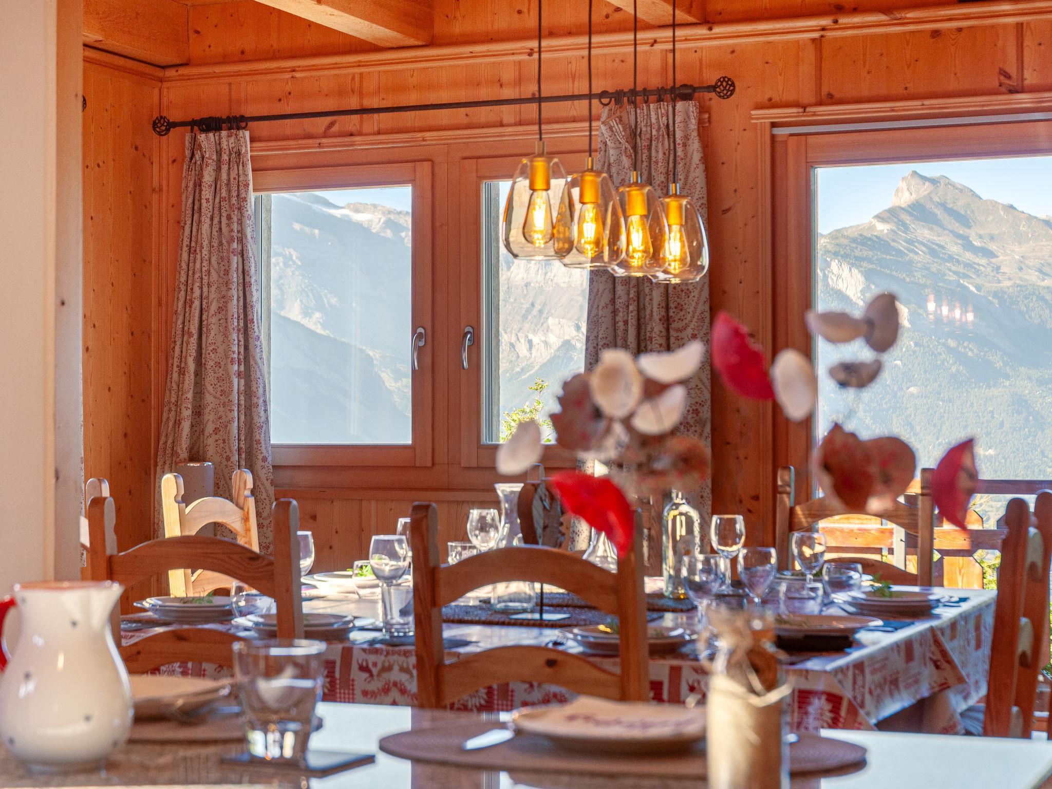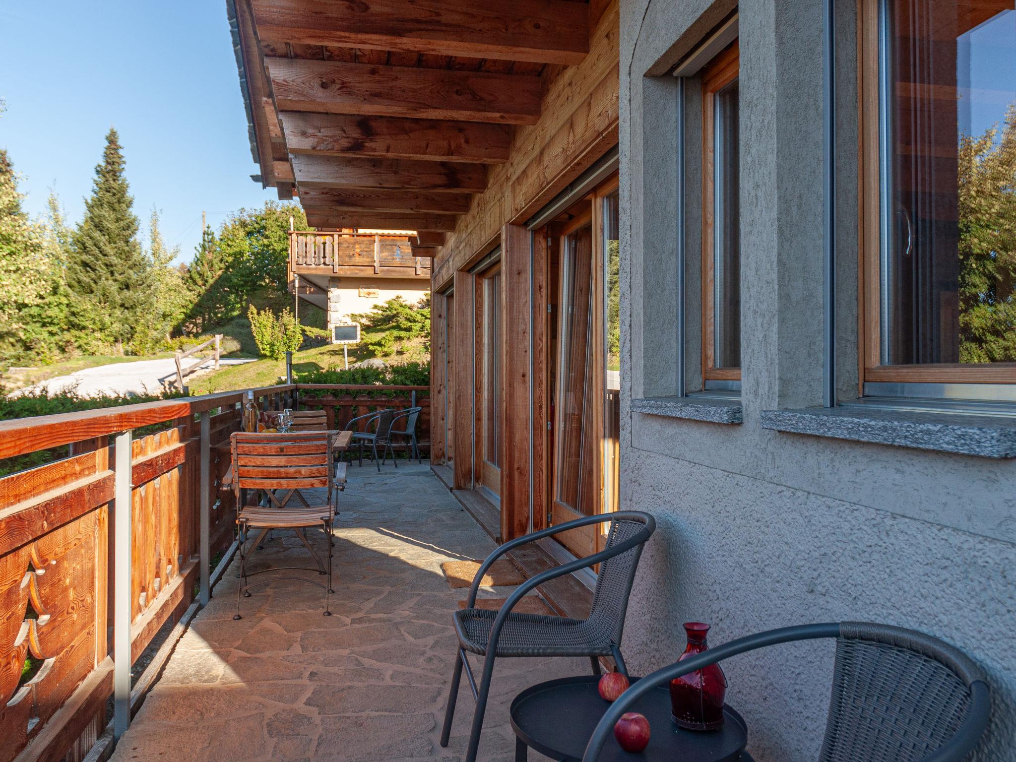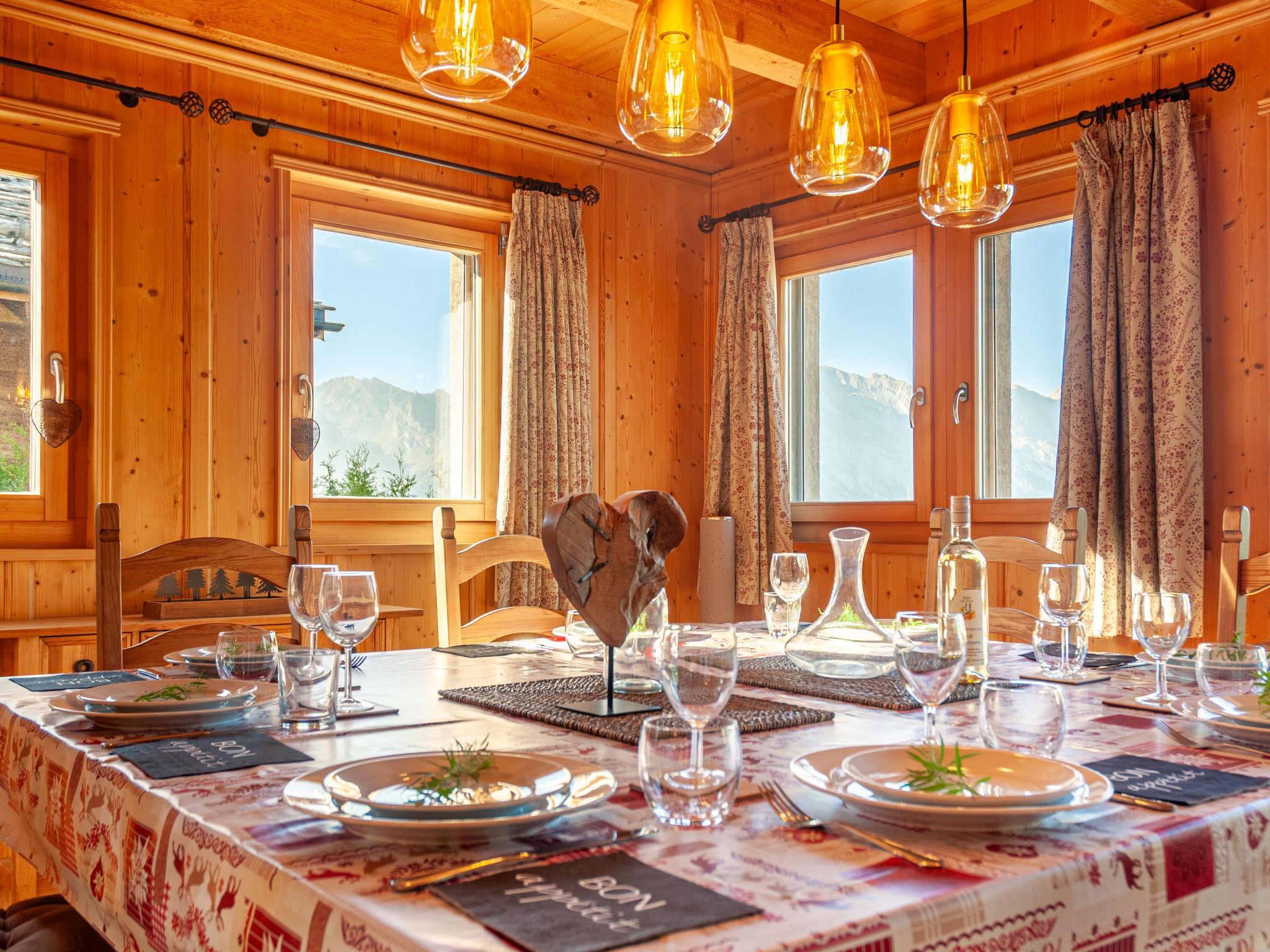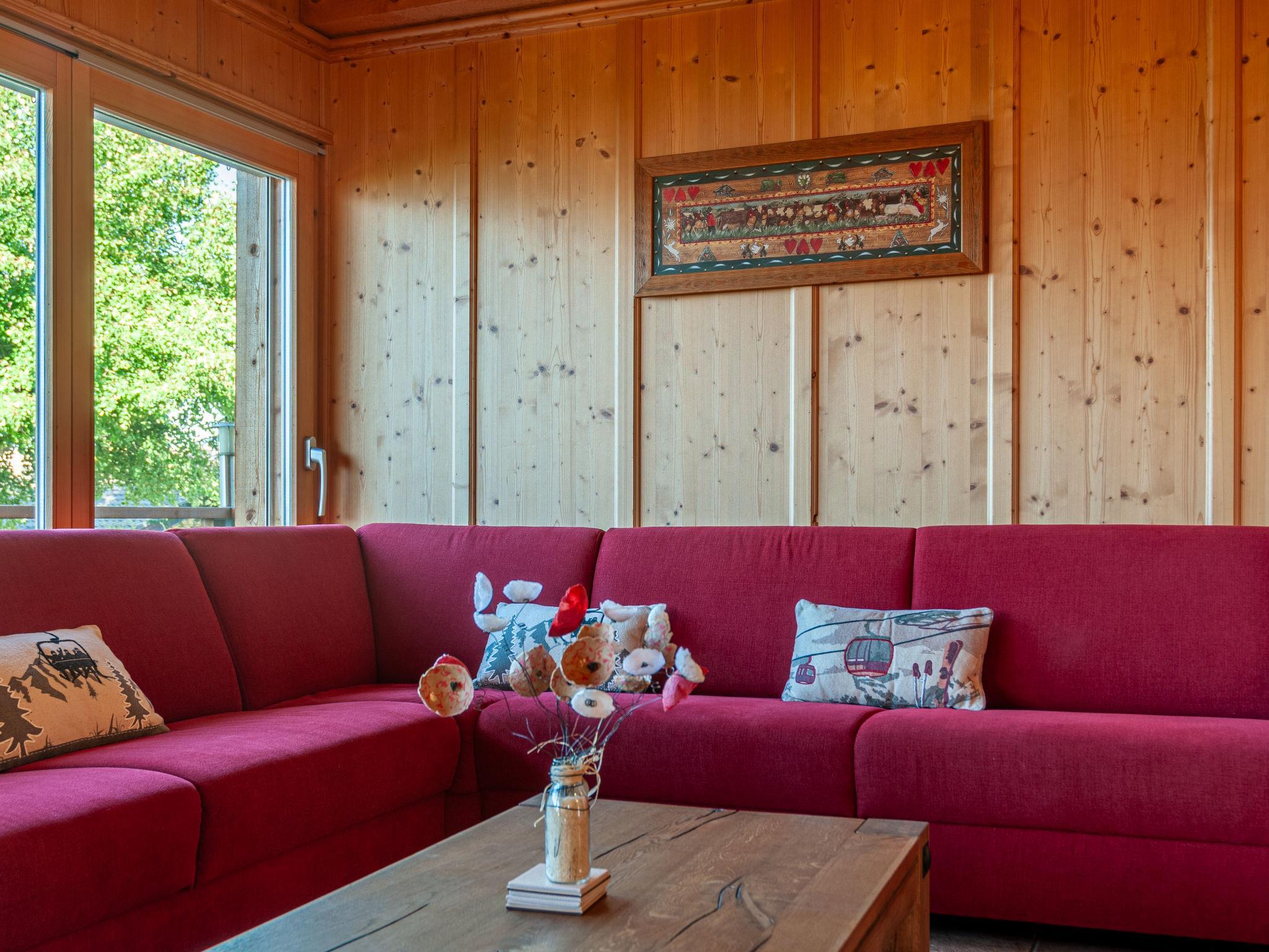"Rêves des Alpes", 5-Zimmer-Chalet 150 m2 auf 3 Stockwerken. Geräumig, mit viel Holz eingerichtet: grosses Wohn-/Esszimmer mit offenem Kamin, Kabel-TV, Stereoanlage, DVD und E-Heizung. Ausgang zum Balkon, zur Terrasse. Offene Küche (Backofen, Geschirrspüler, 4 Glaskeramikplatten, Toaster, Wasserkocher, Mikrowelle, elektrische Kaffeemaschine, Kapseln für die Kaffeemaschine (Nespresso) extra, Racletteofen, Fondue Set (Käse)) mit Bar. Sep. WC. E-Heizung. Unteres Geschoss: 1 Zimmer mit 1 franz. Bett (180 cm, Länge 200 cm). 2 Zimmer, jedes Zimmer mit 2 Betten (90 cm, Länge 200 cm). Bad/WC, Bad/Dusche/WC. Obergeschoss: 1 grosses Zimmer mit 1 franz. Bett (160 cm, Länge 200 cm), Bad/WC. Ausgang zum Balkon. 2 Balkone, Nordlage und Westlage, kleiner Balkon, Südlage Terrasse. Terrassenmöbel, Gartengrill. Sehr schöne Sicht auf die Berge und das Tal. Zur Verfügung: Waschmaschine, Kinderhochstuhl, Haartrockner. Internet (WLAN, gratis). Parkplatz (1 Auto), Garage (2 Autos), Höhe 210 cm, Breite 240 cm. Bitte beachten: Nichtraucher-Unterkunft.