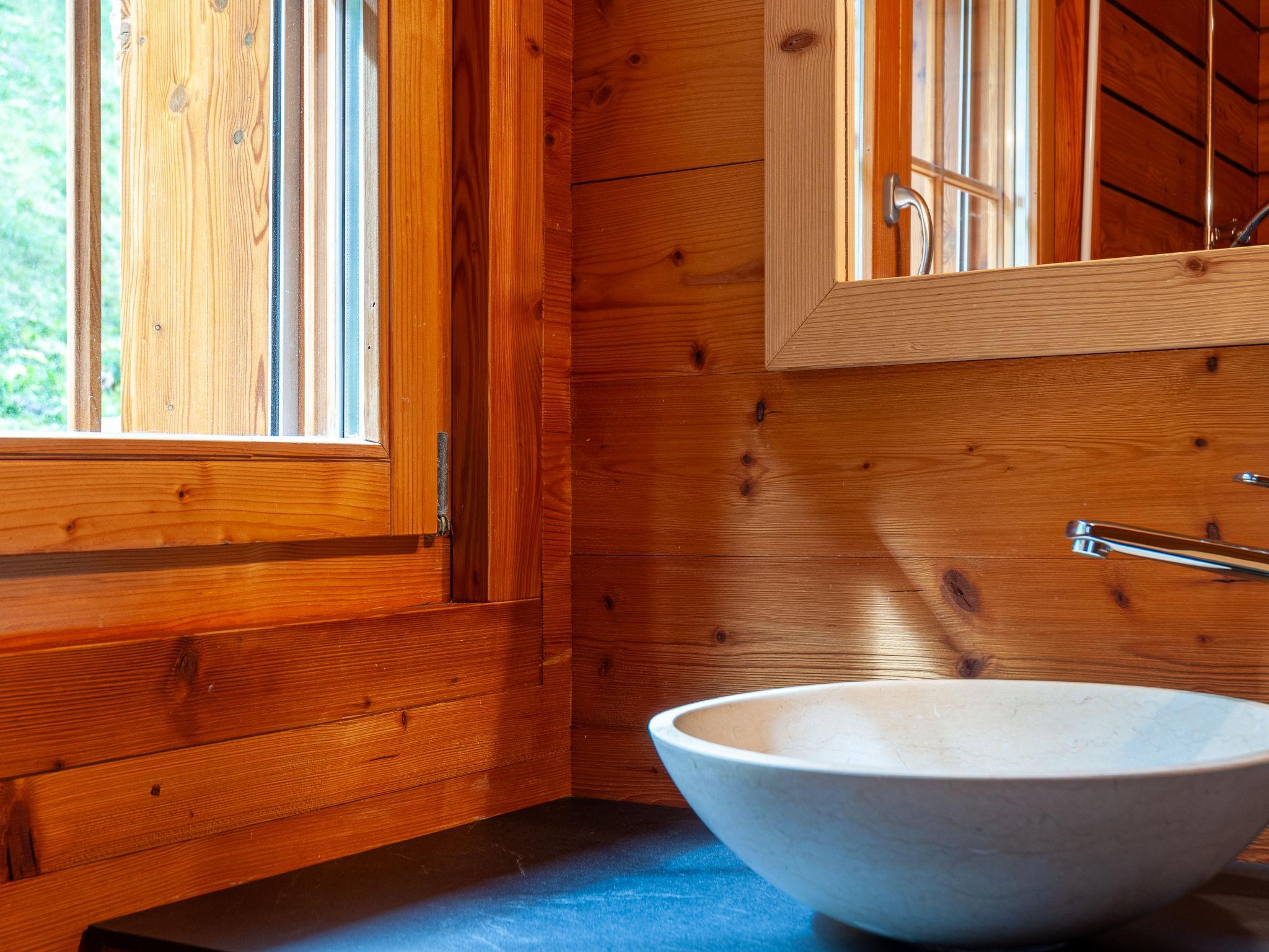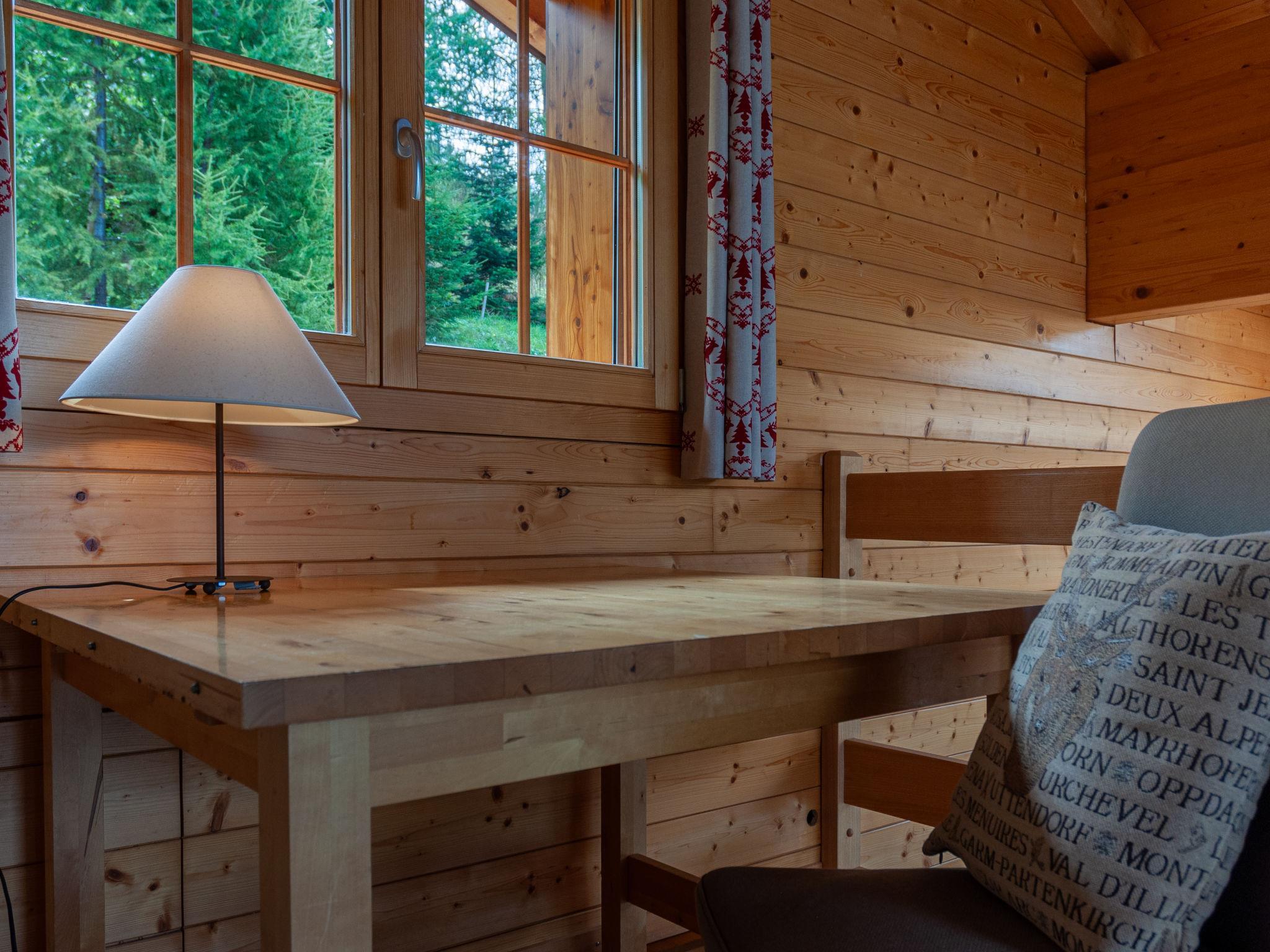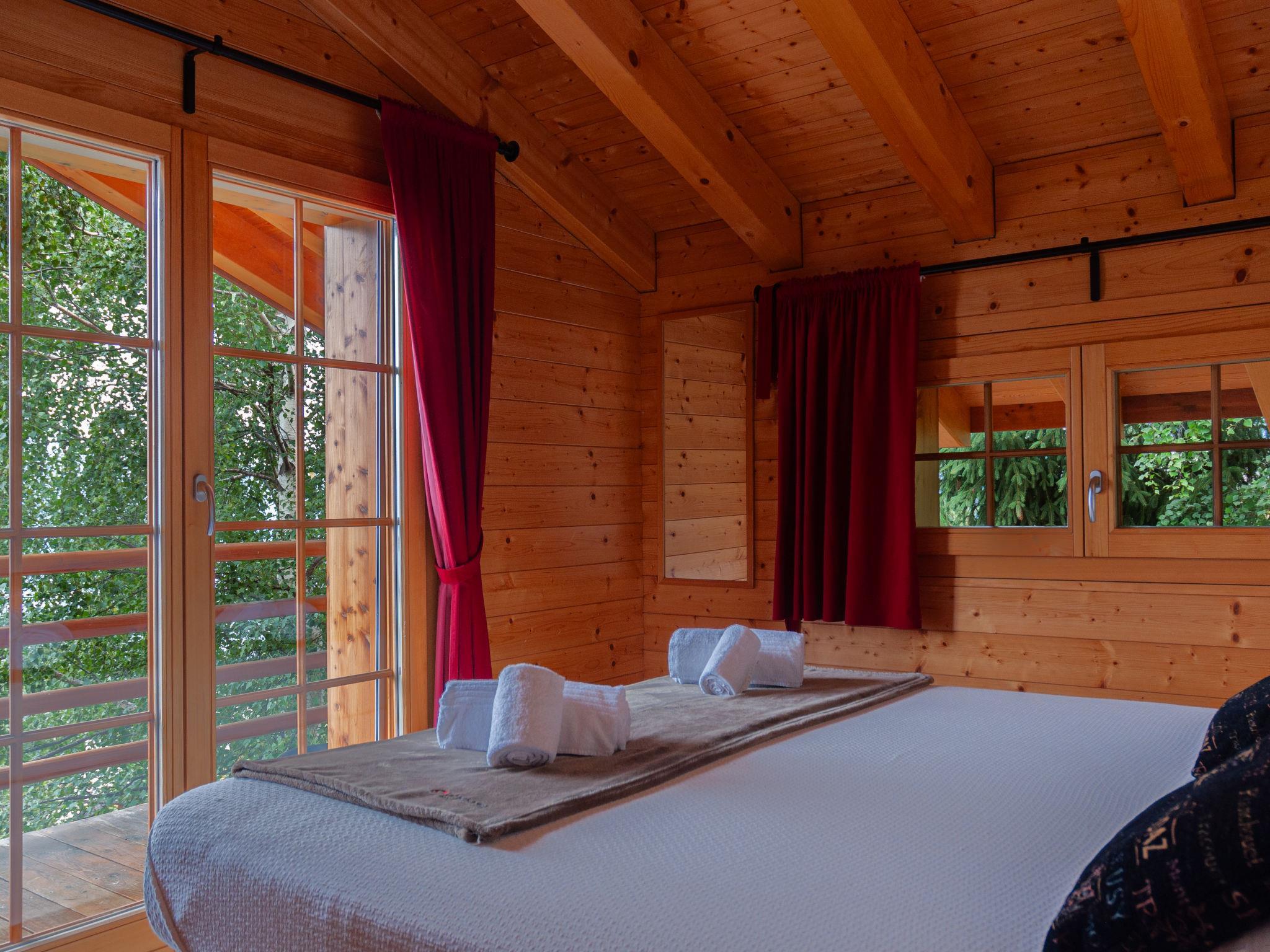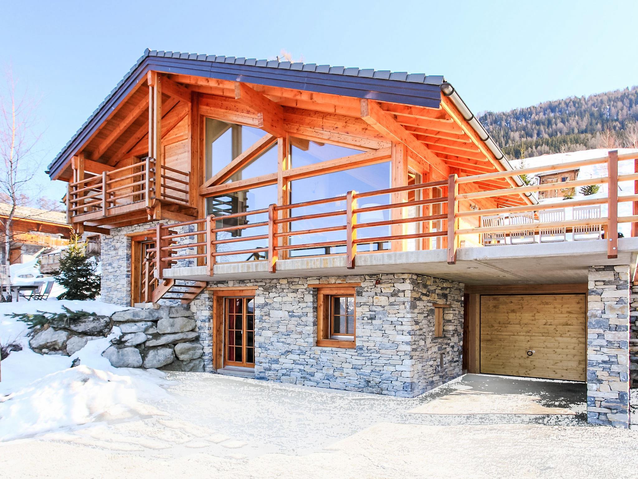 "Mimique", 5-Zimmer-Chalet 180 m2 auf 3 Stockwerken. Hell, renoviert im Jahre 2014, komfortabel eingerichtet: Wohn-/Esszimmer mit Panoramafenster mit Schwedenofen, Sat-TV, Kabel-TV, CD, Stereoanlage und DVD. Ausgang zur Terrasse, Richtung Nordwesten. 1 Zimmer mit 1 franz. Bett (180 cm, Länge 200 cm). Ausgang zur Terrasse, Richtung Norden. Offene Küche (Backofen, Geschirrspüler, 4 Glaskeramikplatten, Toaster, Wasserkocher, Mikrowelle, Tiefkühler, elektrische Kaffeemaschine, Kapseln für die Kaffeemaschine (Nespresso) extra, Racletteofen, Fondue Set (Käse)). Bad/Dusche, sep. WC, Doppelwaschbecken. Heizung. Unteres Geschoss: Eingang. 1 grosses Zimmer mit 1 franz. Bett (160 cm, Länge 200 cm), Kabel-TV und Flachbildschirm. Ausgang zur Terrasse, Richtung Norden. Dusche, sep. WC, Doppelwaschbecken, Sauna. Obergeschoss: 1 abgeschrägtes Zimmer mit 1 franz. Bett (180 cm, Länge 200 cm). Ausgang zum Balkon, Richtung Norden. 1 abgeschrägtes Zimmer mit 2 Betten (90 cm, Länge 200 cm). Dusche/WC. Terrasse 55 m2, Westlage und Südlage. Terrassenmöbel, Gartengrill (mobil), Liegestühle (3). Herrliche Sicht auf die Berge und das Tal. Zur Verfügung: Waschmaschine, Wäschetrockner, Sauna, Kinderhochstuhl, Babybett, Haartrockner. Internet (WLAN, gratis). Parkplatz (2 Autos), Garage, Höhe 210 cm, Breite 250 cm. Bitte beachten: Nichtraucher-Unterkunft.