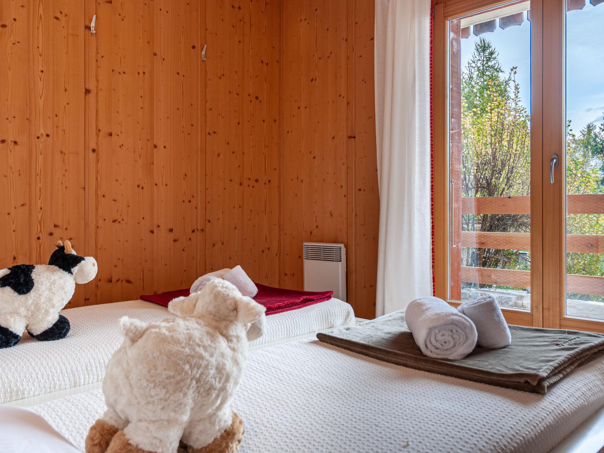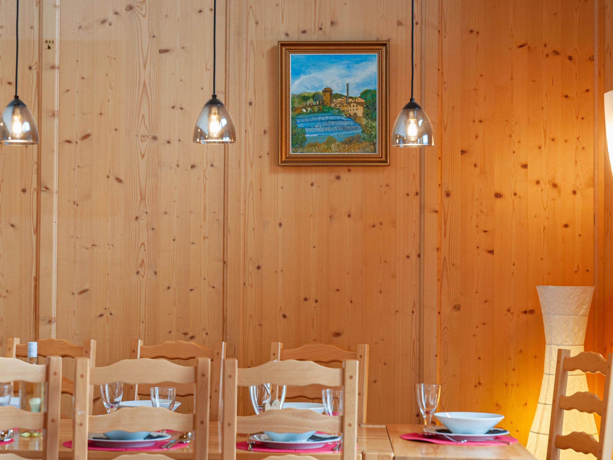 "Sneachta", 5-Zimmer-Chalet 115 m2 auf 3 Stockwerken. Objekt geeignet für 4 Erwachsene + 4 Kinder. Komfortabel und gemütlich eingerichtet: kleiner Eingang. Wohn-/Esszimmer mit offenem Kamin, Kabel-TV und DVD. Ausgang zur Terrasse, Richtung Norden. Kleine, offene Küche (Backofen, Geschirrspüler, 4 Glaskeramikplatten, Toaster, Wasserkocher, Mikrowelle, Tiefkühler, elektrische Kaffeemaschine, Kapseln für die Kaffeemaschine (Nespresso) extra, Racletteofen, Fondue Set (Käse)). Dusche/WC. E-Heizung, Fussbodenheizung. Unteres Geschoss: 2 Zimmer, jedes Zimmer mit 1 franz. Bett (160 cm, Länge 200 cm). 1 Zimmer mit 2 Betten (90 cm, Länge 200 cm). Bad/WC. Obergeschoss: 1 Zimmer mit 1 Doppelbett (160 cm, Länge 200 cm), Bad/Dusche/WC. Grosse Terrasse, Nordlage und Ostlage. Terrassenmöbel, Gartengrill. Herrliche Panoramasicht auf die Berge. Zur Verfügung: Waschmaschine, Wäschetrockner, Kinderhochstuhl. Internet (WLAN, gratis). Parkplatz (2 Autos). Bitte beachten: geeignet für Familien. Nichtraucher-Haus. Maximal 1 Haustier/Hund erlaubt.