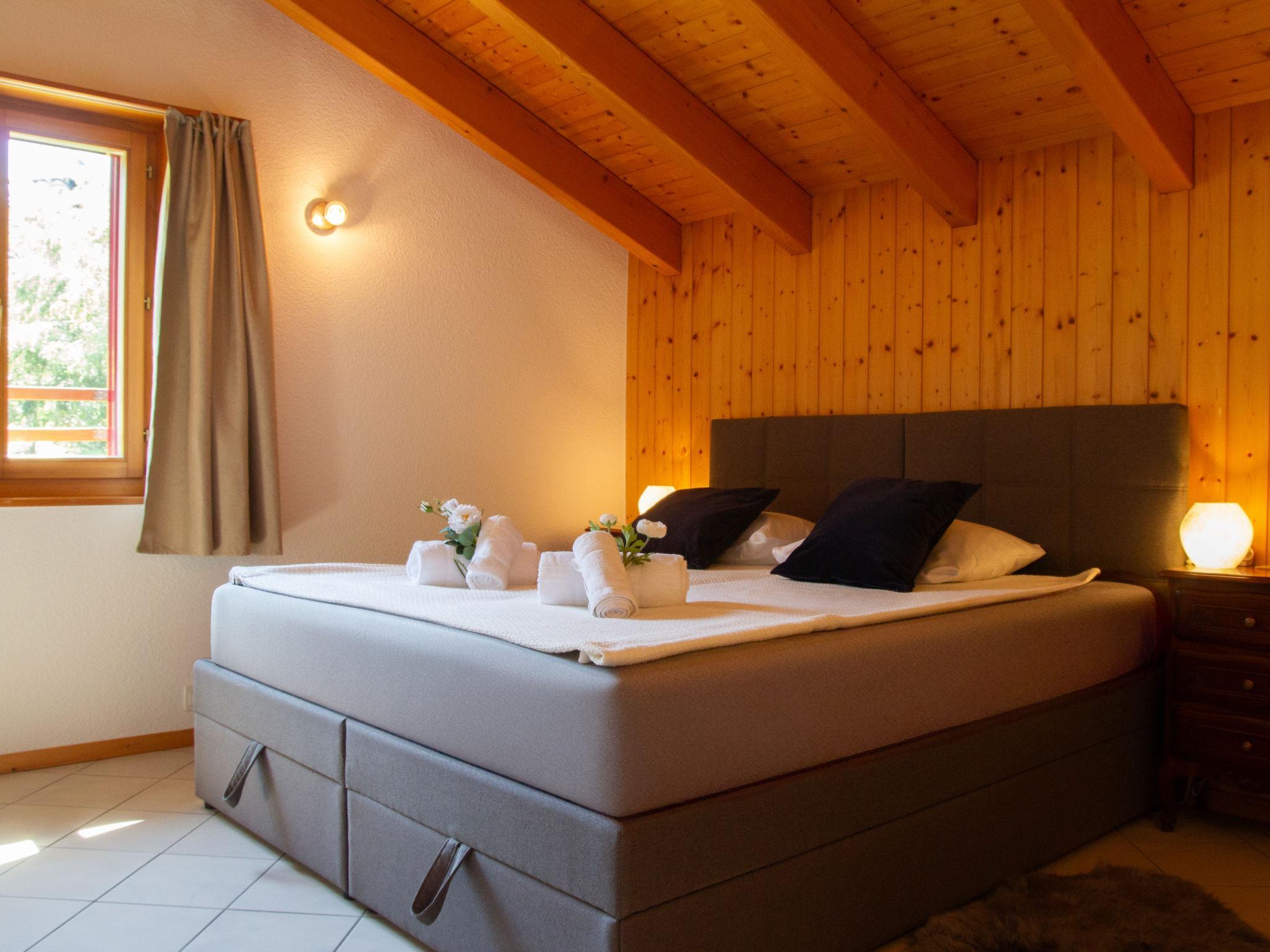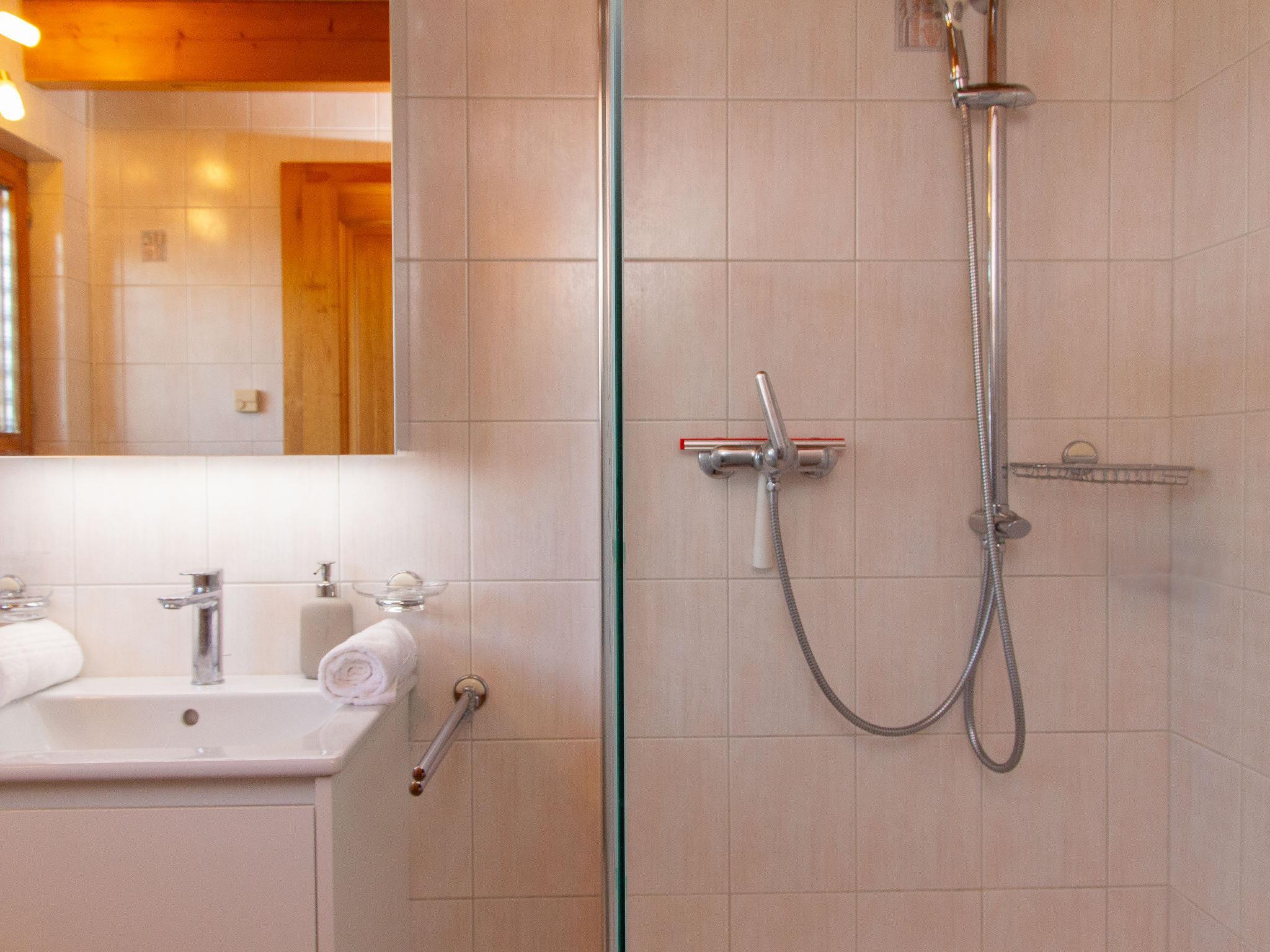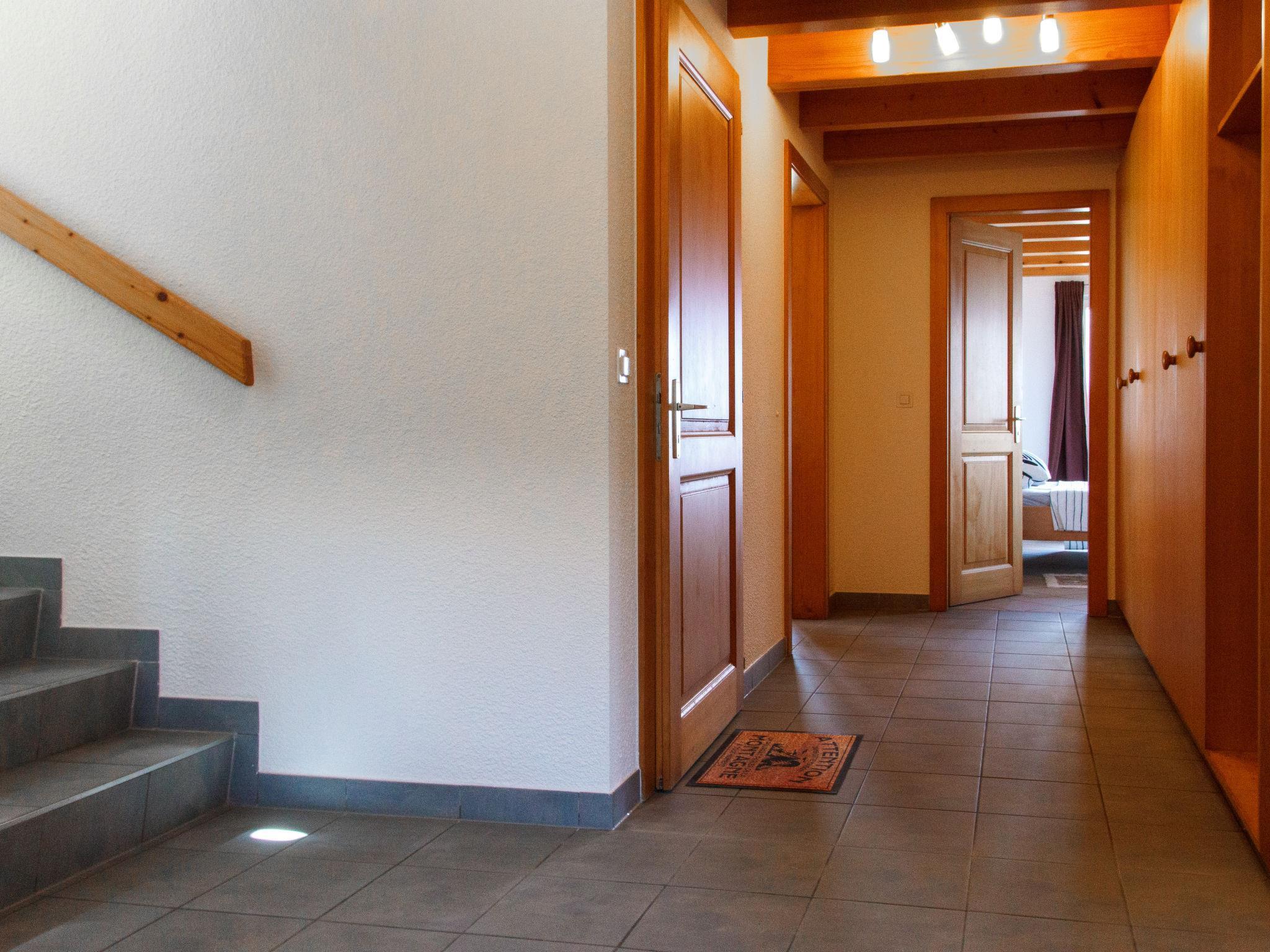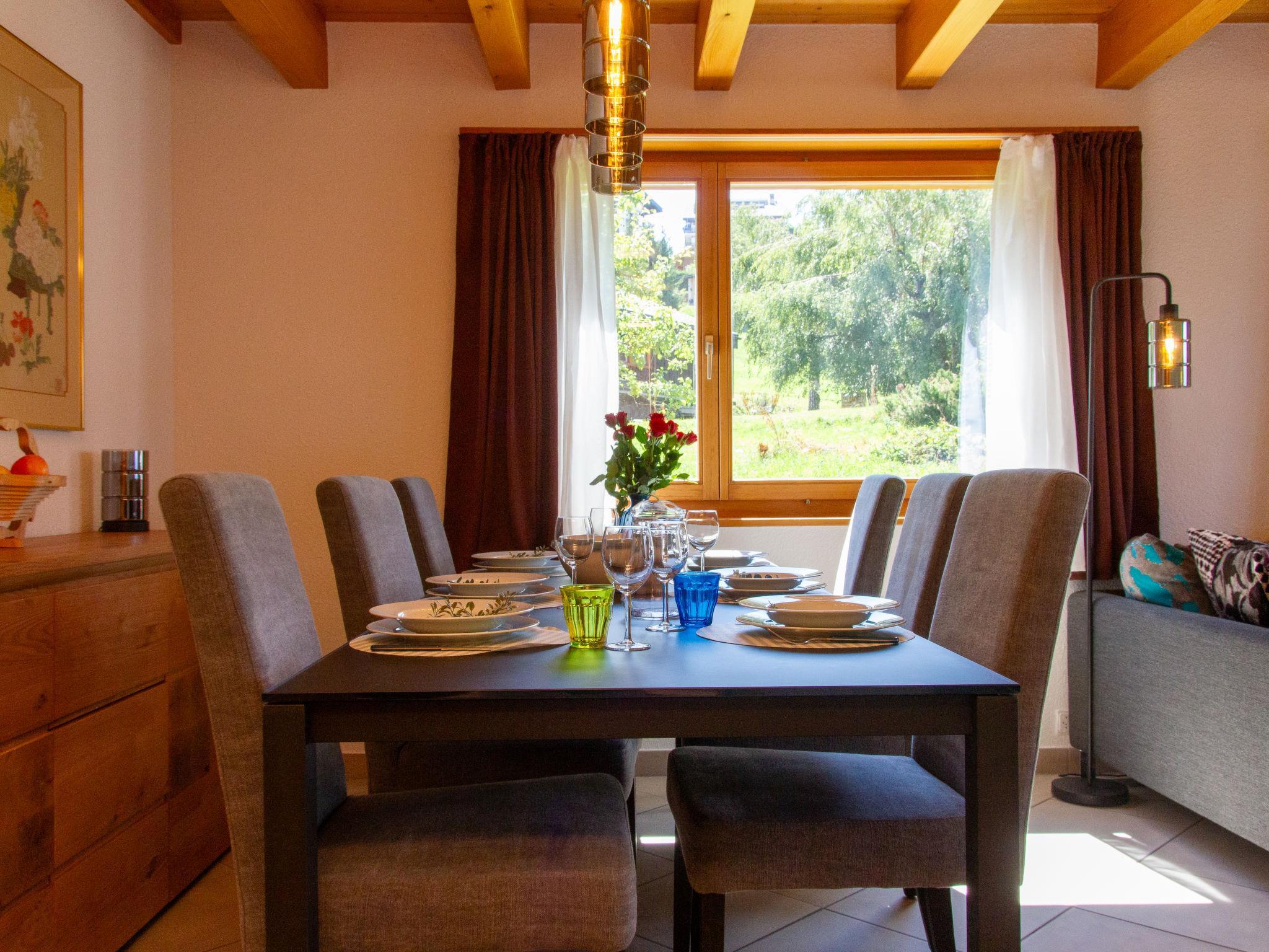 "Chalet Mirabelle", 5-Zimmer-Haus 178 m2 auf 3 Stockwerken, Nordwestlage. Geräumig, komfortabel und schön eingerichtet: Eingang. Grosses Wohnzimmer mit Esstisch und Kabel-TV. Ausgang zur Terrasse. 1 grosses Zimmer mit 1 Bett (160 cm, Länge 200 cm), Dusche/WC. Ausgang zur Terrasse. Küche (Backofen, Geschirrspüler, 4 Glaskeramikplatten, Toaster, Wasserkocher, elektrische Kaffeemaschine, Kapseln für die Kaffeemaschine (Nespresso) extra, Racletteofen, Fondue Set (Käse)) mit Esstisch. Sep. WC. E-Heizung. Unteres Geschoss: 1 Zimmer mit 2 Betten (90 cm, Länge 200 cm). Obergeschoss: 1 Zimmer mit 2 Betten (90 cm, Länge 200 cm). 1 Zimmer mit 2 Betten (90 cm, Länge 200 cm). Salon mit TV und DVD. Bad/WC. Terrasse 21 m2, Nordlage und Westlage, Garten. Balkonmöbel, Gartengrill, Wintergarten. Sehr schöne Sicht auf die Berge. Zur Verfügung: Waschmaschine, Wäschetrockner, Haartrockner. Internet (WLAN, gratis). Parkplatz (2 Autos), Garage (1 Auto). Bitte beachten: Nichtraucher-Unterkunft.