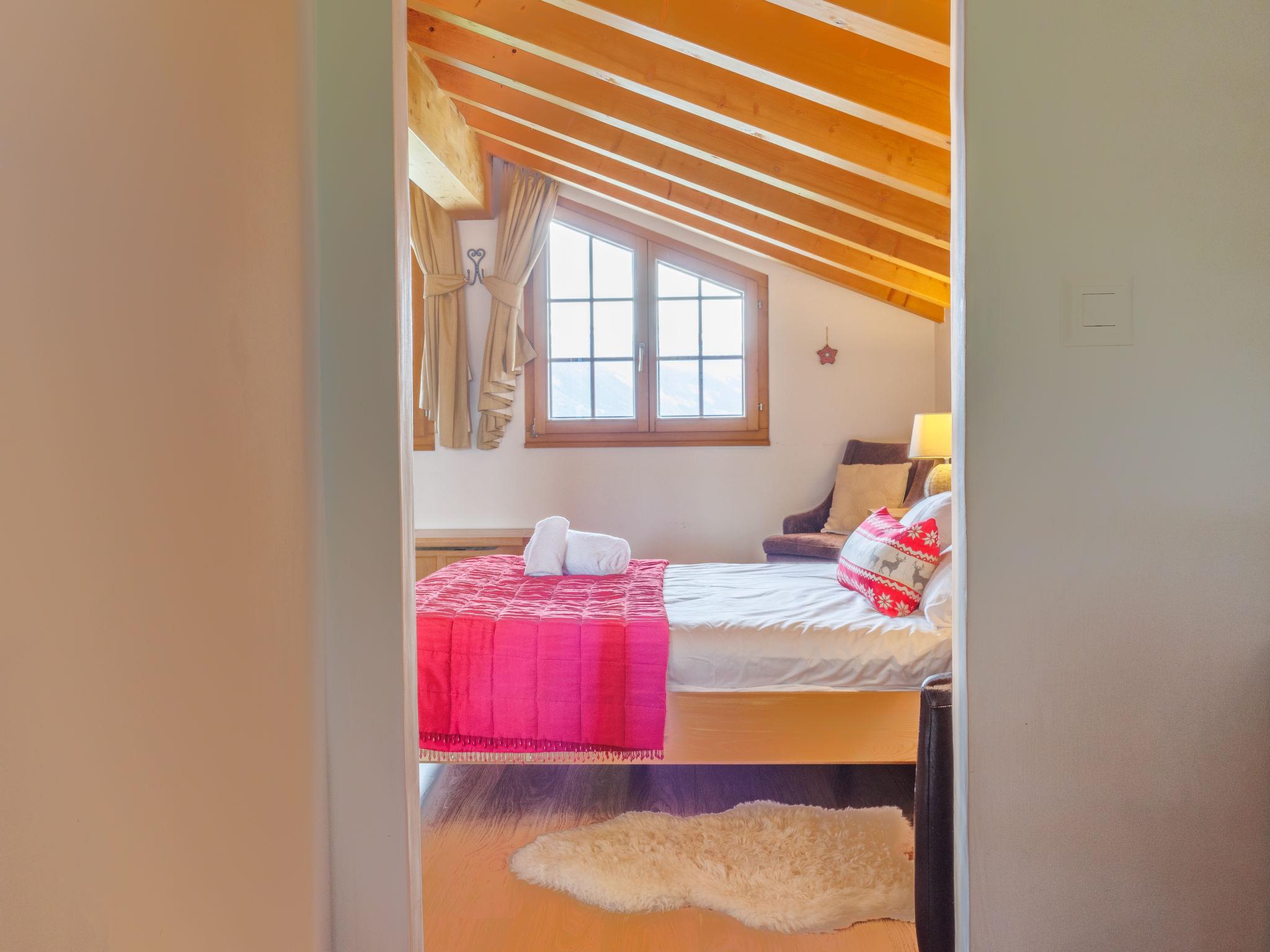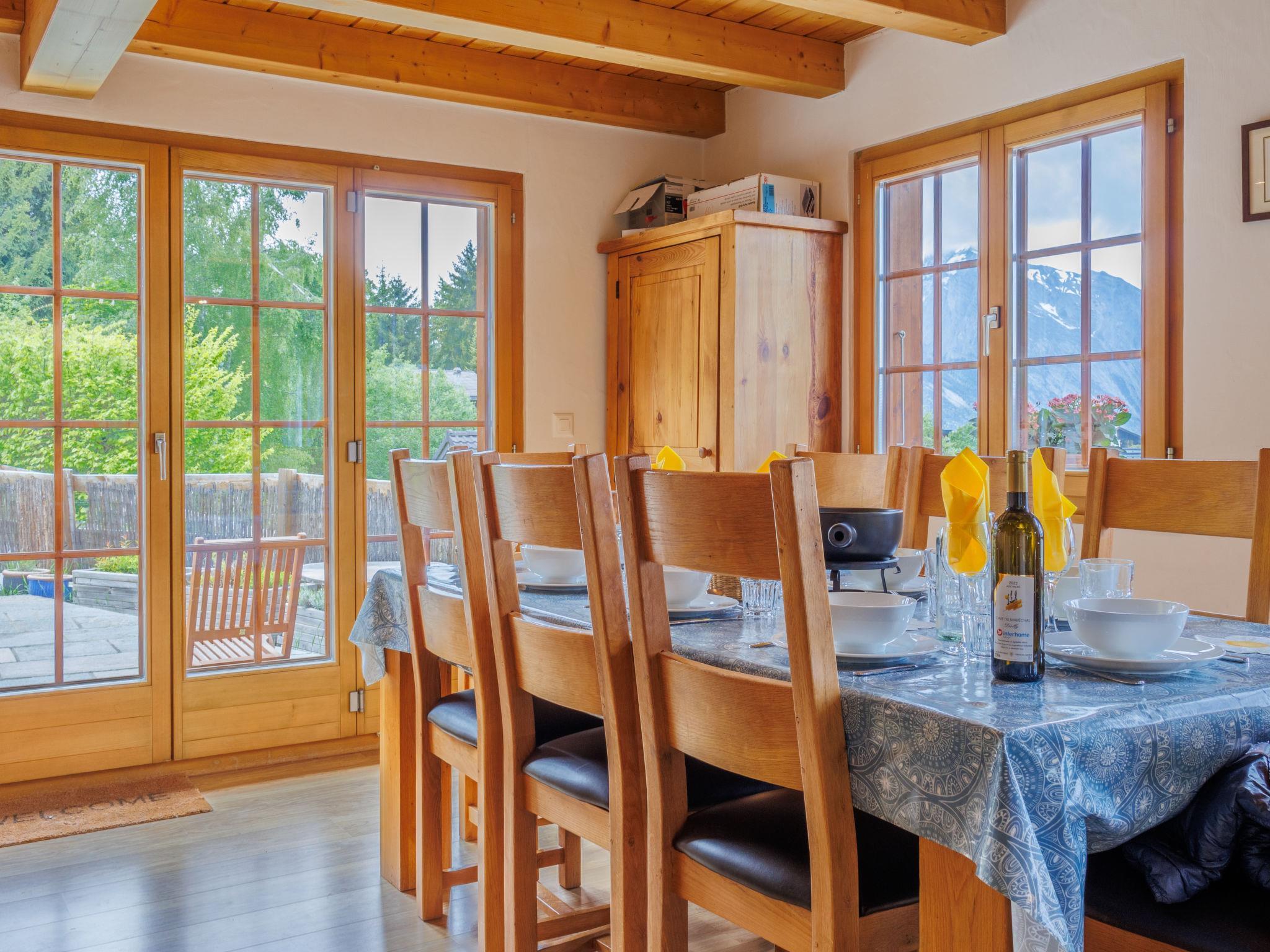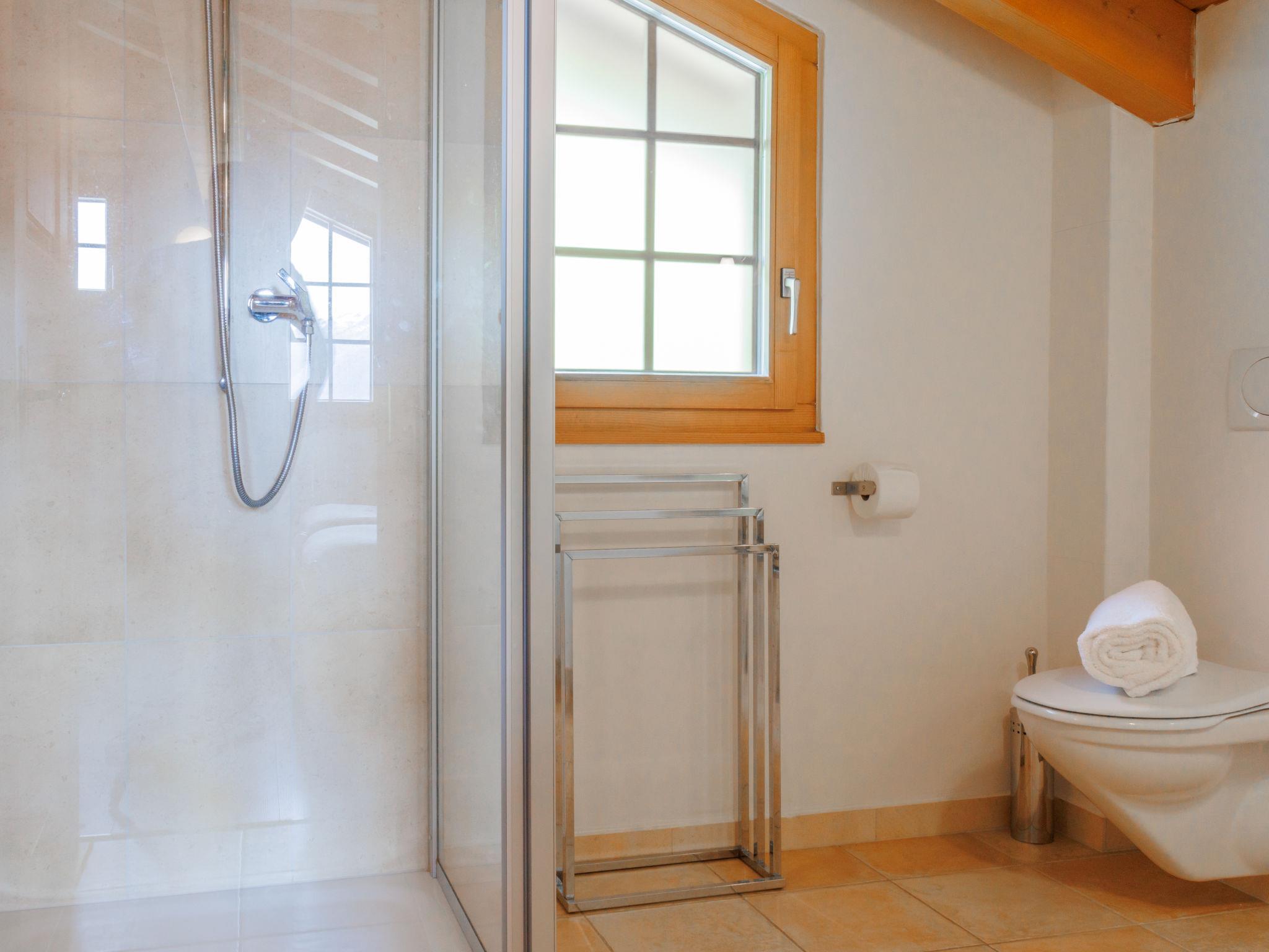"Petit Nid", 5-Zimmer-Chalet 167 m2 auf 3 Stockwerken. Geräumig, komfortabel und schön eingerichtet: Wohn-/Esszimmer mit Schwedenofen, Kabel-TV und DVD. Ausgang zum Balkon, zur Terrasse, Richtung Norden und Richtung Westen. 1 Zimmer mit 2 Betten (90 cm, Länge 200 cm), Dusche/WC. Offene Küche (Backofen, Geschirrspüler, 4 Glaskeramikplatten, Toaster, Wasserkocher, Mikrowelle, elektrische Kaffeemaschine, Kapseln für die Kaffeemaschine (Nespresso) extra, Racletteofen, Fondue Set (Käse)). Fussbodenheizung. Unteres Geschoss: 1 Zimmer mit 2 Betten (90 cm, Länge 200 cm), Dusche/WC. Eingang. Obergeschoss: 1 grosses Zimmer mit 1 franz. Bett (160 cm, Länge 200 cm), Bad/Dusche/WC. 1 Zimmer mit 2 Betten (90 cm, Länge 200 cm), Dusche/WC. Balkon 10 m2, Nordlage, grosse Terrasse 33 m2, Westlage. Terrassenmöbel, Gartengrill, Liegestühle (2). Herrliche Panoramasicht auf die Berge, das Tal und die Ortschaft. Zur Verfügung: Waschmaschine, Wäschetrockner, Kinderhochstuhl, Babybett, Haartrockner. Internet (WLAN, gratis). Parkplatz (1 Auto), Garage (1 Auto). Bitte beachten: Nichtraucher-Haus.