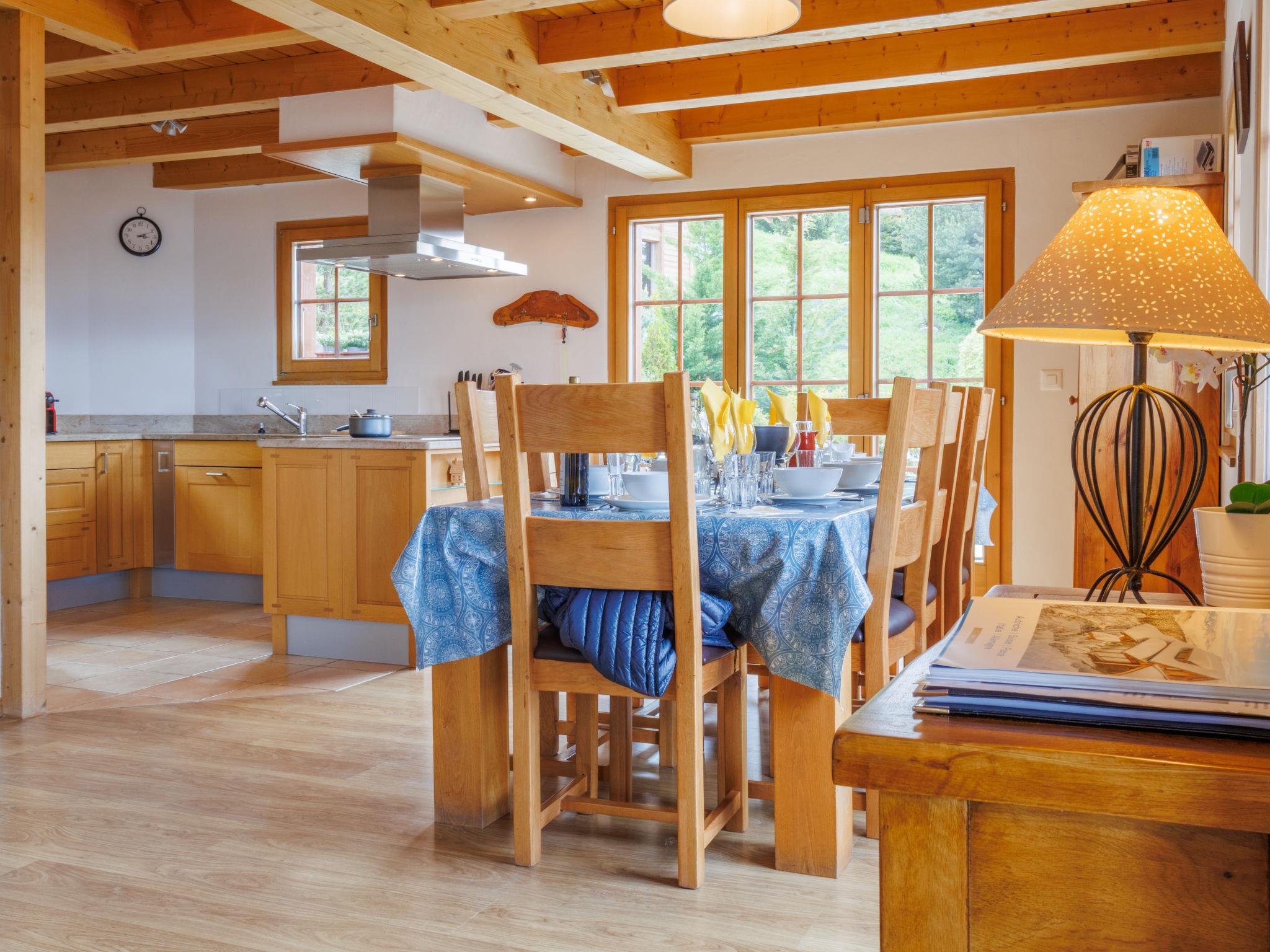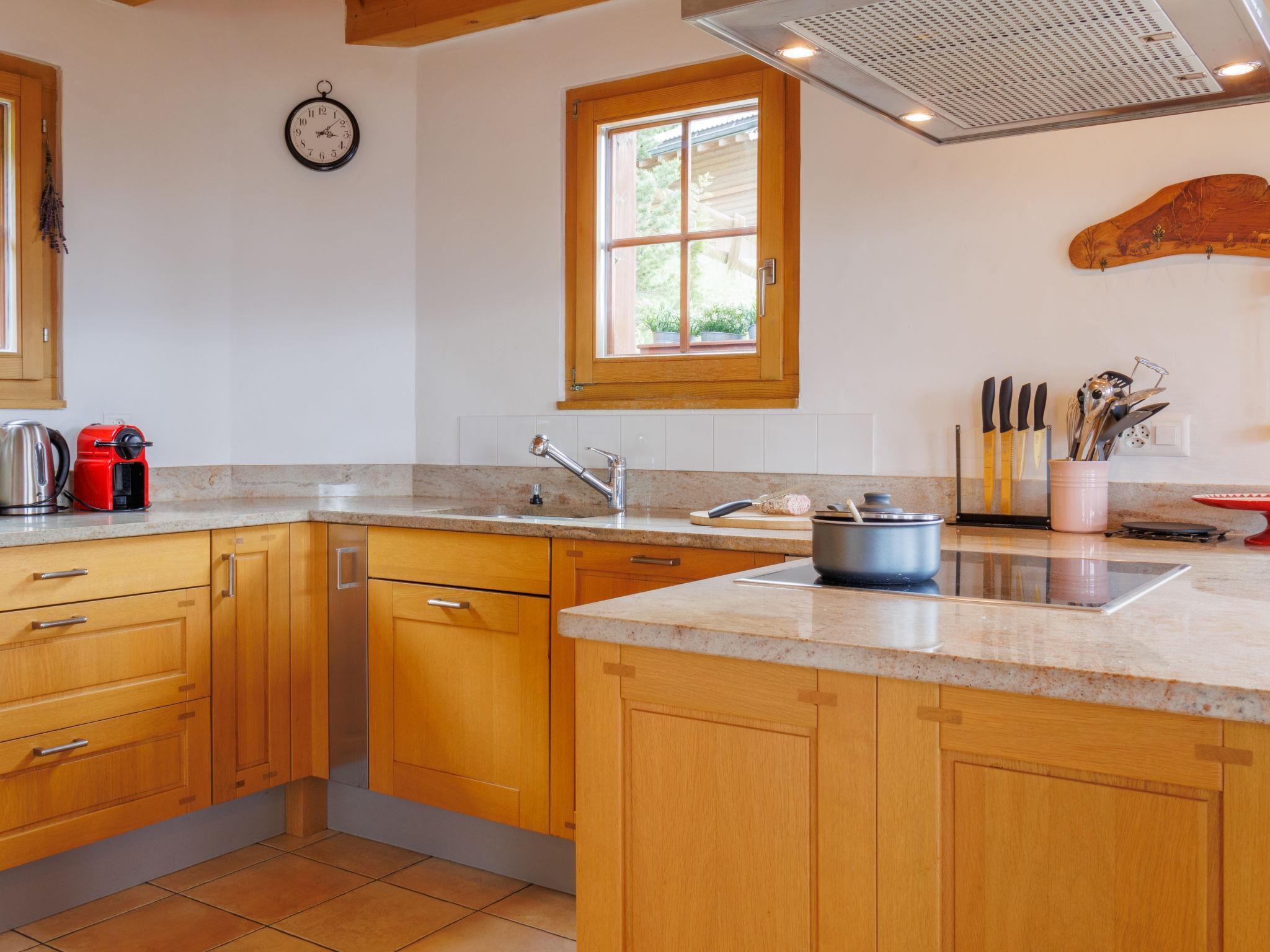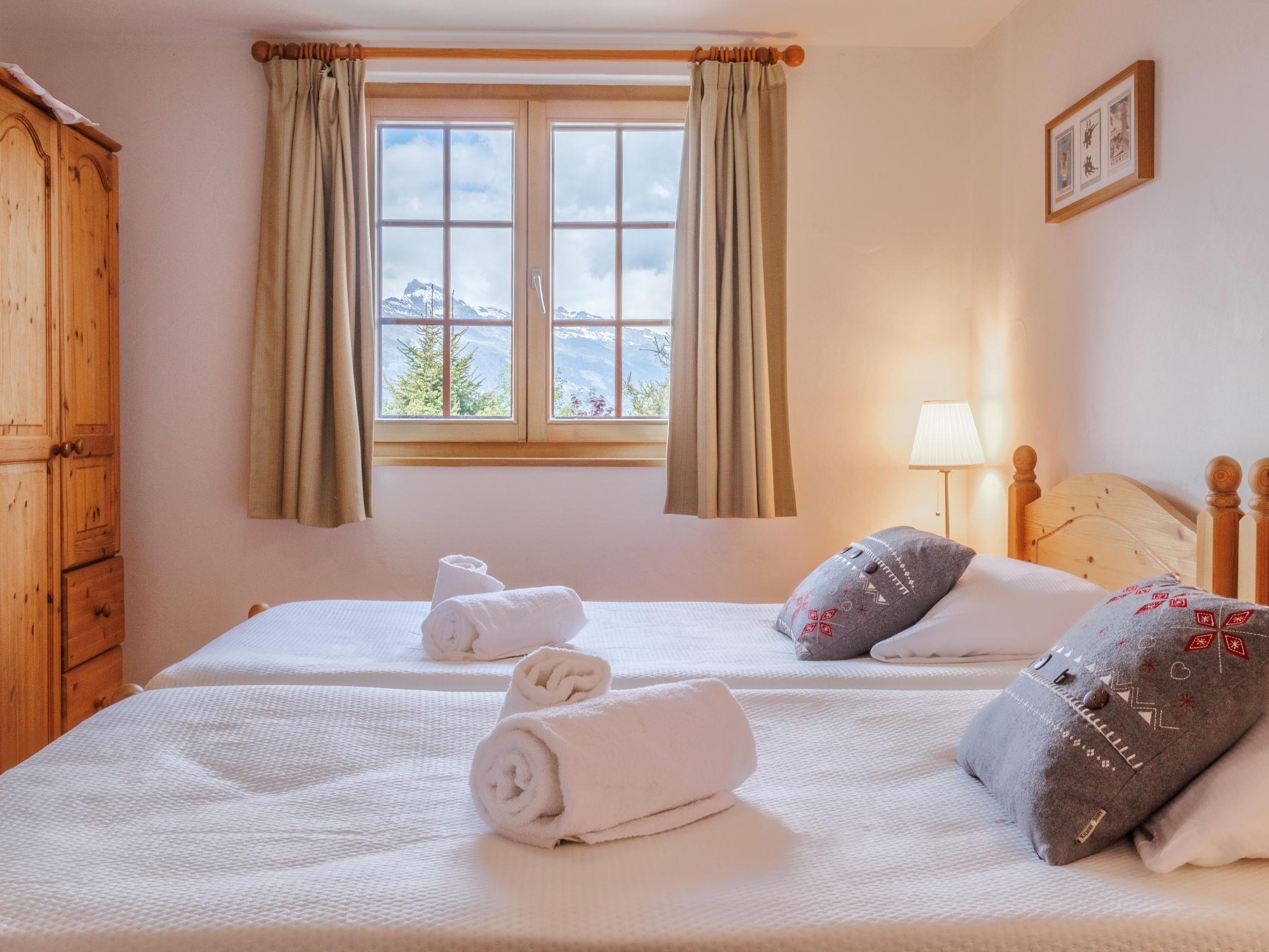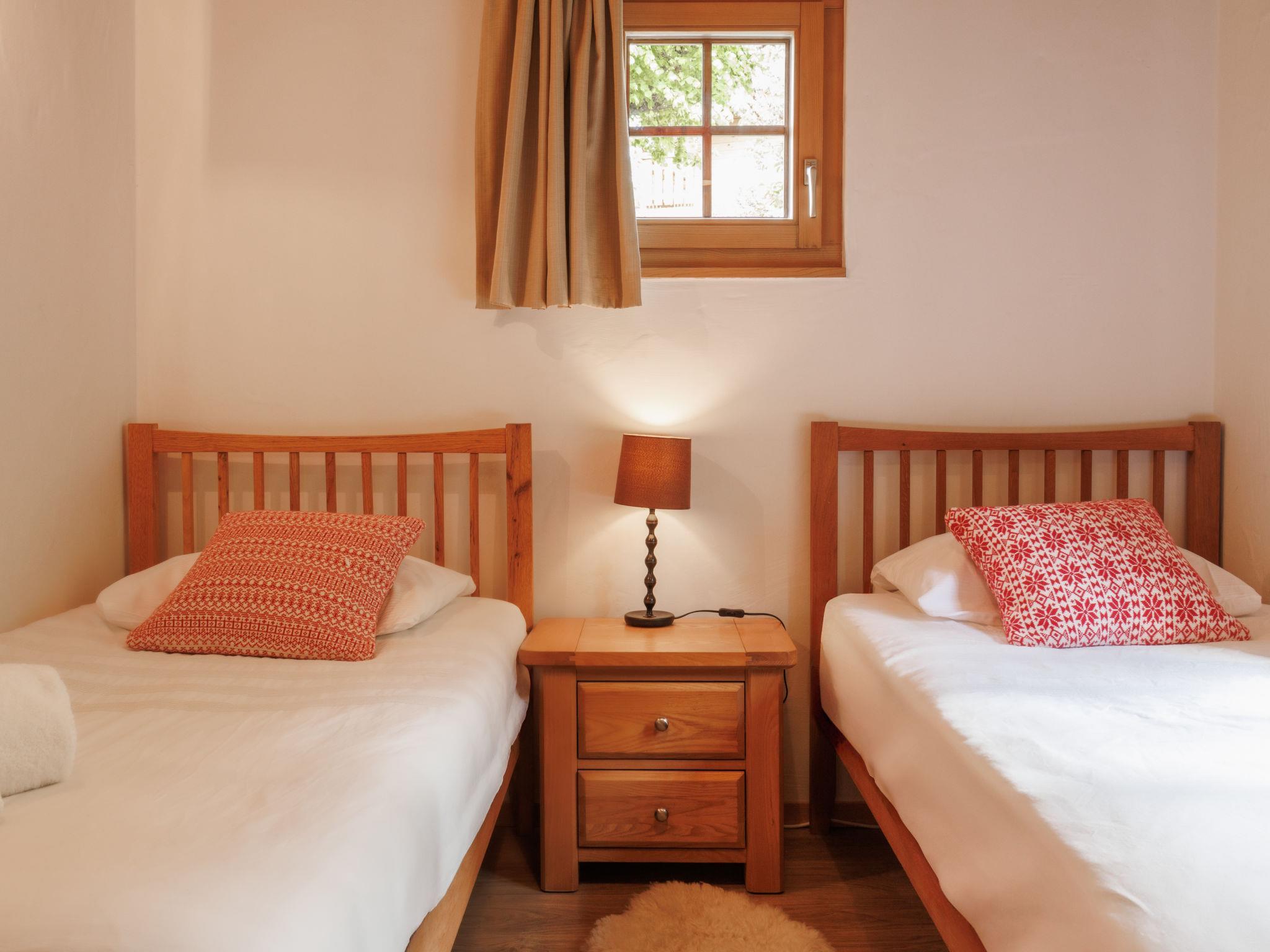 "Petit Nid", 5-Zimmer-Chalet 167 m2 auf 3 Stockwerken. Geräumig, komfortabel und schön eingerichtet: Wohn-/Esszimmer mit Schwedenofen, Kabel-TV und DVD. Ausgang zum Balkon, zur Terrasse, Richtung Norden und Richtung Westen. 1 Zimmer mit 2 Betten (90 cm, Länge 200 cm), Dusche/WC. Offene Küche (Backofen, Geschirrspüler, 4 Glaskeramikplatten, Toaster, Wasserkocher, Mikrowelle, elektrische Kaffeemaschine, Kapseln für die Kaffeemaschine (Nespresso) extra, Racletteofen, Fondue Set (Käse)). Fussbodenheizung. Unteres Geschoss: 1 Zimmer mit 2 Betten (90 cm, Länge 200 cm), Dusche/WC. Eingang. Obergeschoss: 1 grosses Zimmer mit 1 franz. Bett (160 cm, Länge 200 cm), Bad/Dusche/WC. 1 Zimmer mit 2 Betten (90 cm, Länge 200 cm), Dusche/WC. Balkon 10 m2, Nordlage, grosse Terrasse 33 m2, Westlage. Terrassenmöbel, Gartengrill, Liegestühle (2). Herrliche Panoramasicht auf die Berge, das Tal und die Ortschaft. Zur Verfügung: Waschmaschine, Wäschetrockner, Kinderhochstuhl, Babybett, Haartrockner. Internet (WLAN, gratis). Parkplatz (1 Auto), Garage (1 Auto). Bitte beachten: Nichtraucher-Haus.