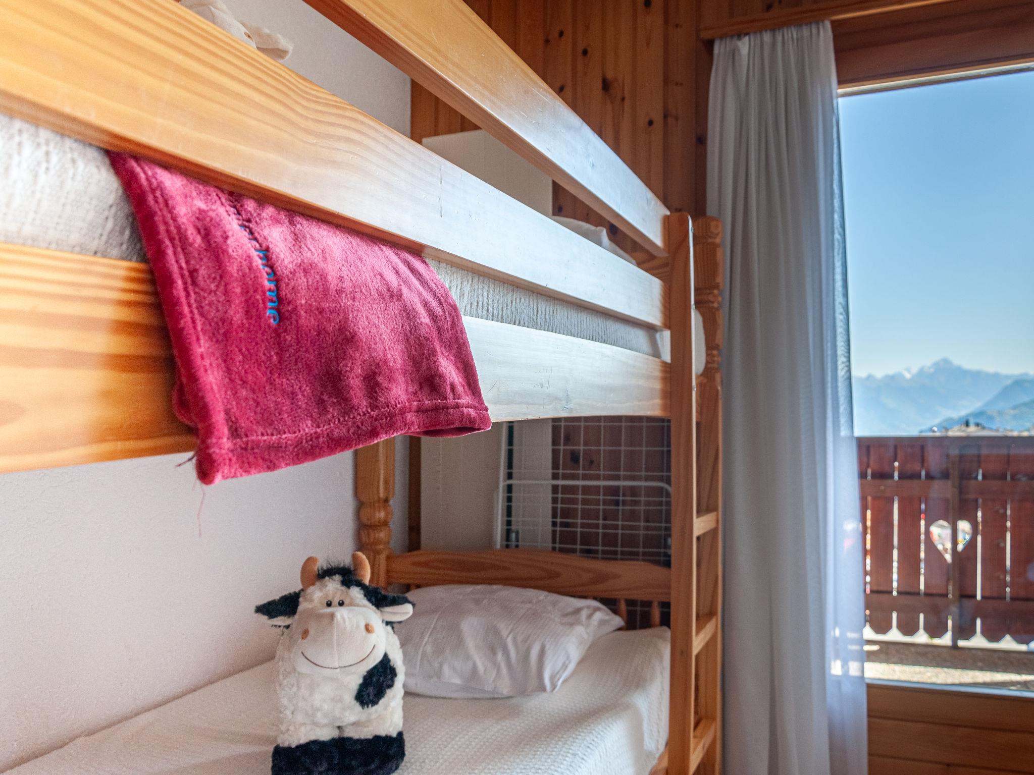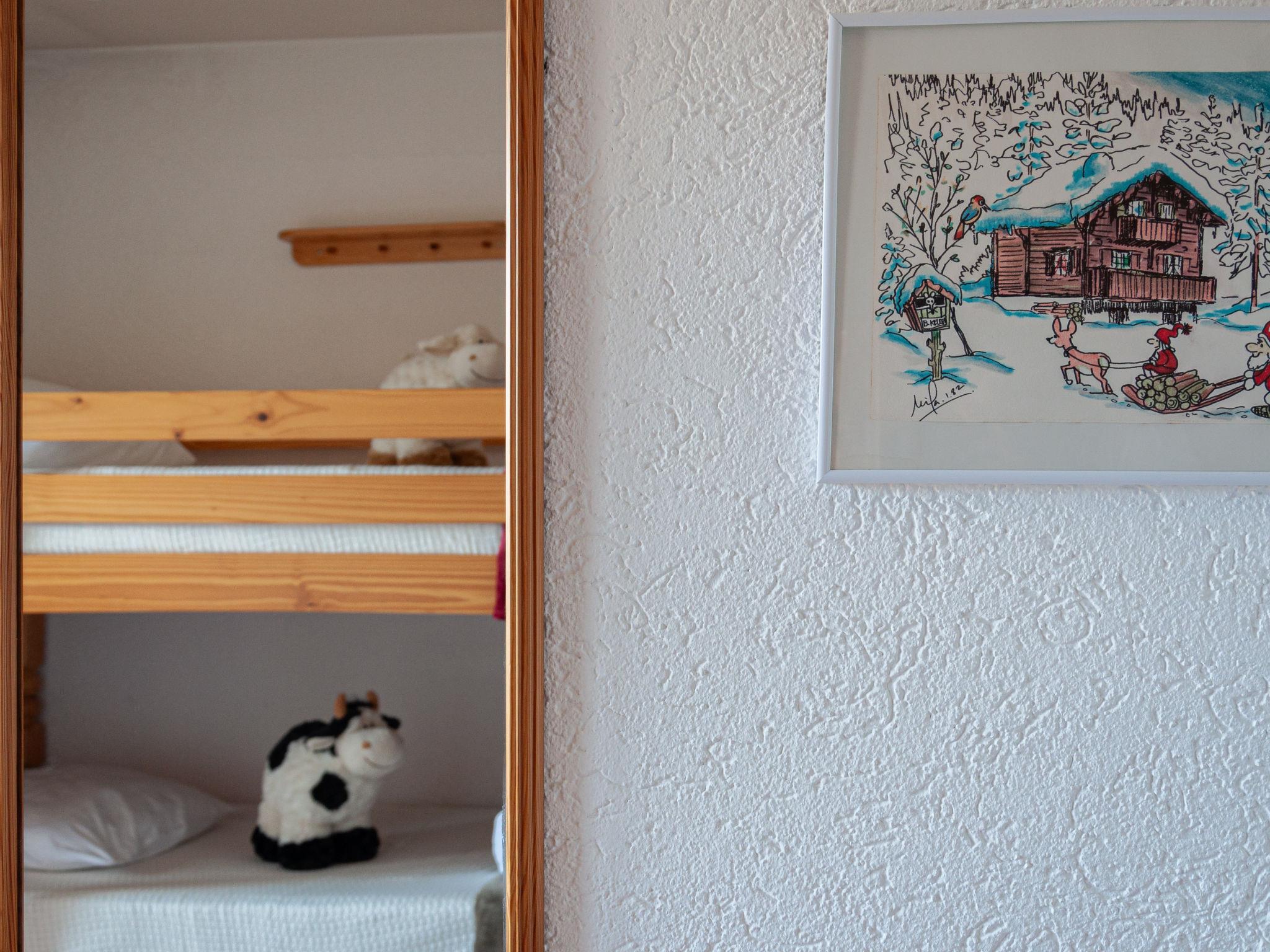 "Lake Placid A7", 4-Zimmer-Attikawohnung 90 m2 im 4. Stock. Geräumig und hell, abgeschrägt, schön und geschmackvoll eingerichtet: Eingang. Grosses Wohn-/Esszimmer mit Schwedenofen und Kabel-TV. Ausgang zum Balkon, zur Terrasse. 1 Kinderzimmer mit 1 x 2 Etagenbetten (90 cm, Länge 195 cm). Ausgang zum Balkon, Richtung Osten. 1 Zimmer mit 1 franz. Bett (140 cm, Länge 200 cm). 1 abgeschrägtes Zimmer mit 1 franz. Bett (160 cm, Länge 200 cm). Küche (Geschirrspüler, 4 Glaskeramikplatten, Mikrowelle, elektrische Kaffeemaschine, Kapseln für die Kaffeemaschine (Delizio) extra, Racletteofen, Fondue Set (Chinoise, Käse)). Bad/WC, sep. WC. Balkon, Westlage und Ostlage, grosse Terrasse, Nordlage. Balkonmöbel. Sicht auf die Berge und die Ortschaft. Zur Verfügung: Haartrockner. Internet (Wireless LAN, gratis). Parkplatz Nr. A7 (überdacht), Höhe 230 cm. Bitte beachten: Nichtraucher-Unterkunft.