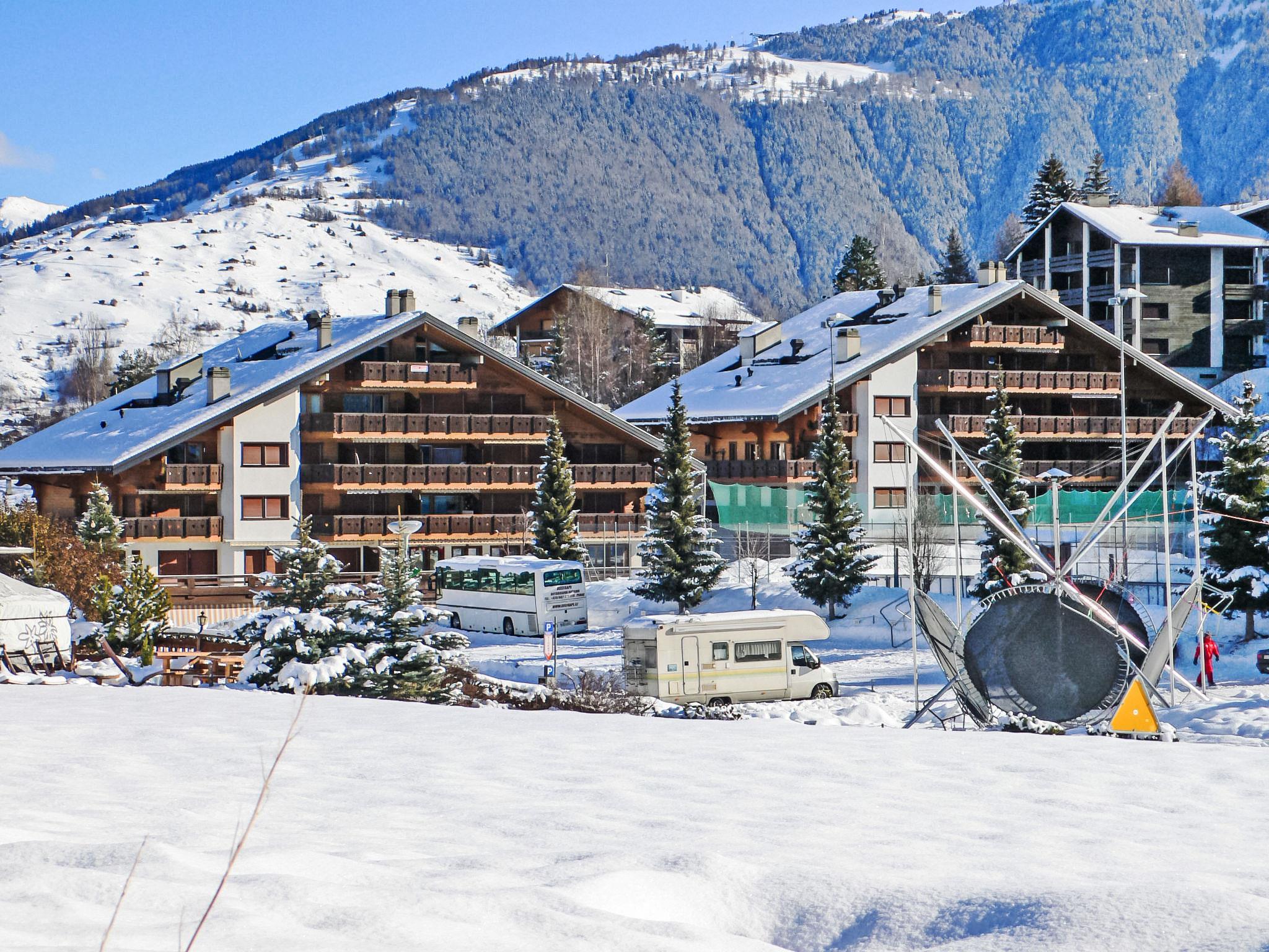 Residenz "Lake-Placid", auf 4 Stockwerken. Im Ortszentrum, Richtung Westen. Im Hause: Kiosk, Fahrstuhl, Skiraum, Zentralheizung, Waschmaschine, Wäschetrockner (zur Mitbenutzung, extra). Parkplatz (beschränkte Anzahl). Supermarkt 10 m, Restaurant 150 m, Bushaltestelle 300 m, Bahnstation "Sion" 14 km, Freibad 700 m. Golfplatz (18 Loch) 16 km, Tennis 650 m, Gondelbahn 450 m, Skibushaltestelle 200 m, Eisfeld 100 m. Nahe gelegene Sehenswürdigkeiten: Spa des Bisses 200 m. Bekannte Skigebiete sind gut erreichbar: Nendaz-Tracouet 4 Vallées 450 m. Bitte beachten: Gratis Skibus. Weitere Unterkünfte sind buchbar.