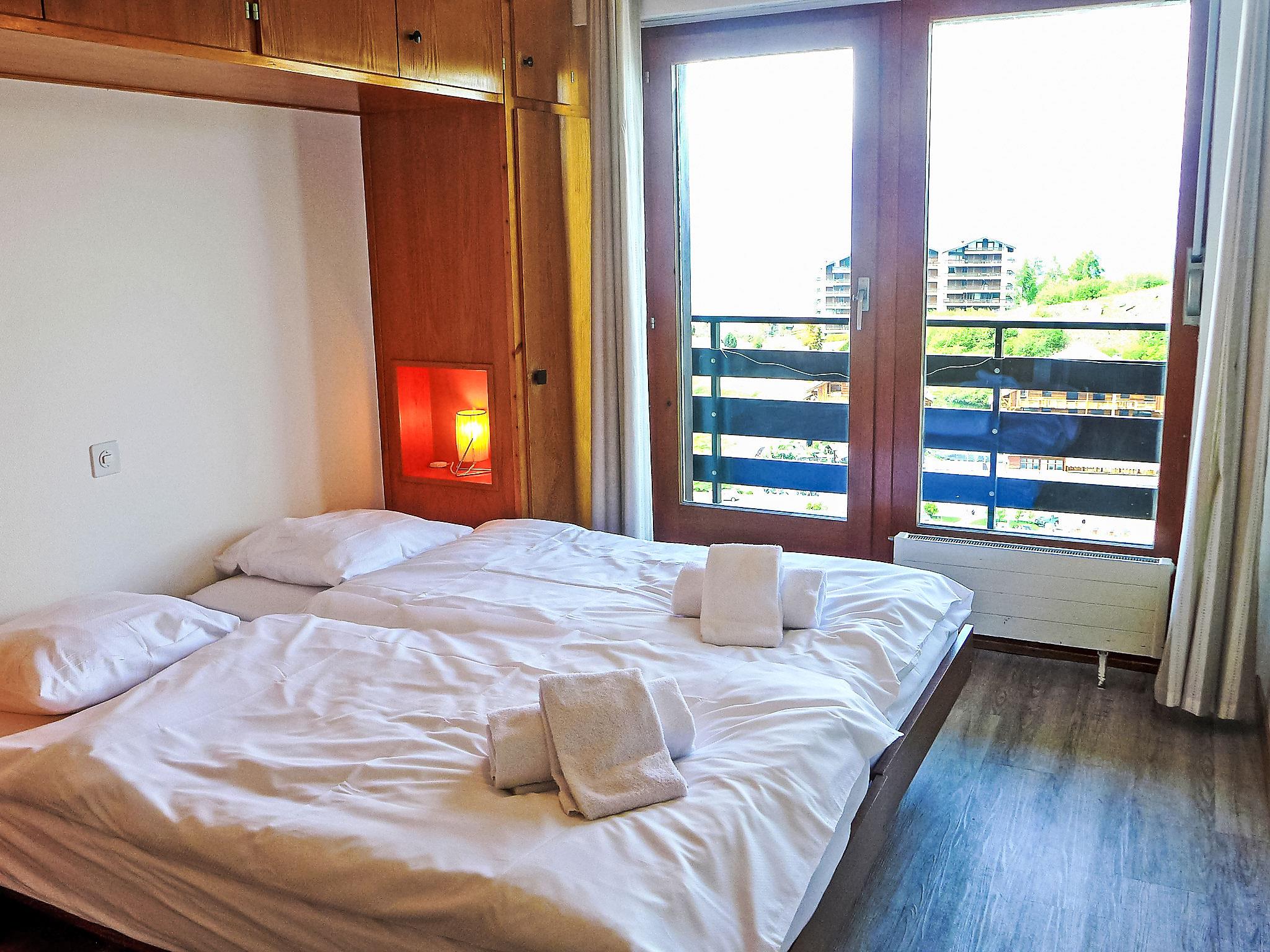 "Christiania I F6", 3-Zimmer-Wohnung 70 m2 im 6. Stock. Eingang mit 1 x 2 Etagenbetten (90 cm, Länge 190 cm). Wohn-/Esszimmer mit offenem Kamin (nur Deko), Kabel-TV und Flachbildschirm. 1 Zimmer mit 2 Betten (90 cm, Länge 190 cm). Ausgang zum Balkon, Richtung Norden. 1 kleines Zimmer mit 2 Betten (90 cm, Länge 190 cm). Küche (3 Kochplatten, Backofen, Toaster, Wasserkocher, Mikrowelle, elektrische Kaffeemaschine, Racletteofen, Fondue Set (Käse)). Bad/WC, sep. WC. Balkon, Nordlage Balkon, Ostlage. Schöne Sicht auf die Berge und die Ortschaft. Zur Verfügung: Internet (Wireless LAN, gratis). Parkplatz Nr. 6A (überdacht), Höhe 190 cm, Breite 210 cm. Bitte beachten: Kühlschrank ohne Gefrierfach, Nichtraucher-Unterkunft. Maximal 1 Haustier/Hund erlaubt. Anstelle eines abgeschlossenen Schlafzimmers befinden sich manche Schlafplätze in einem offenen Bereich (Galerie, Nische etc.).