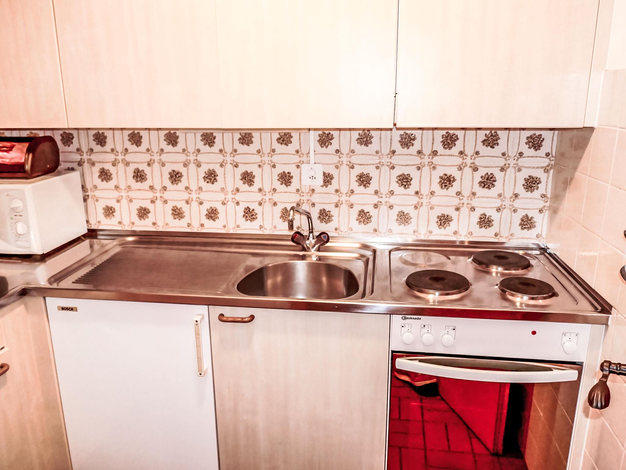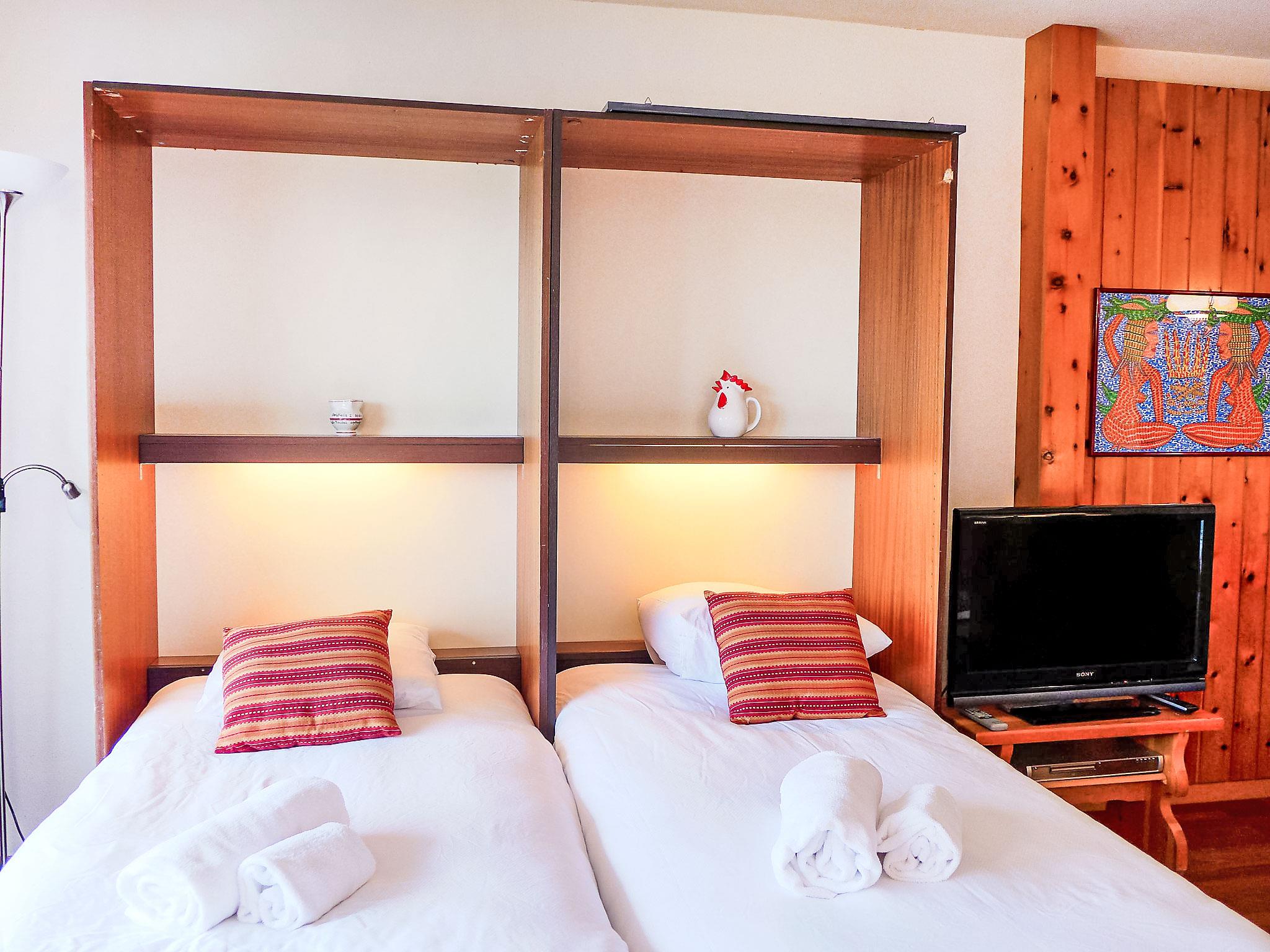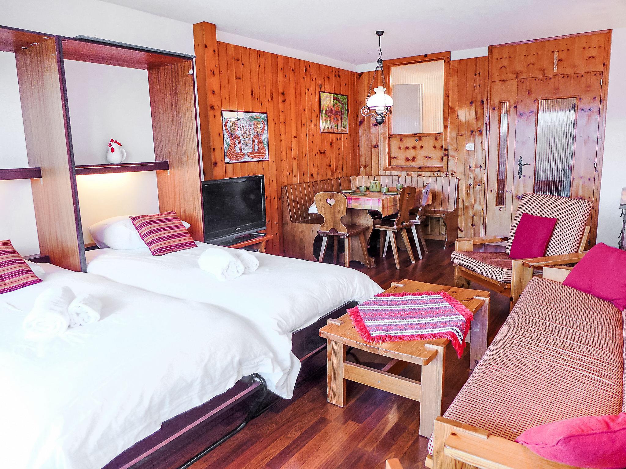 "Christiania 2 Tbel", 1-Zimmer-Wohnung 35 m2, im erhöhten Erdgeschoss. Objekt geeignet für 2 Erwachsene + 2 Kinder. Sehr einfach eingerichtet: Wohn-/Schlafzimmer mit 2 Wandklappbetten (80 cm, Länge 185 cm), Kabel-TV und Flachbildschirm. Ausgang zum Balkon. Eingang mit 1 x 2 Etagenbetten (75 cm, Länge 180 cm). Küche (3 Kochplatten, Backofen, Wasserkocher, Mikrowelle, elektrische Kaffeemaschine, Racletteofen, Fondue Set (Käse)). Bad/WC. Balkon, Nordlage. Balkonmöbel. Sicht auf die Berge und die Ortschaft. Zur Verfügung: Haartrockner. Internet (WLAN, gratis). Bitte beachten: Nichtraucher-Haus, kein Parkplatz. Anstelle eines abgeschlossenen Schlafzimmers befinden sich manche Schlafplätze in einem offenen Bereich (Galerie, Nische etc.).