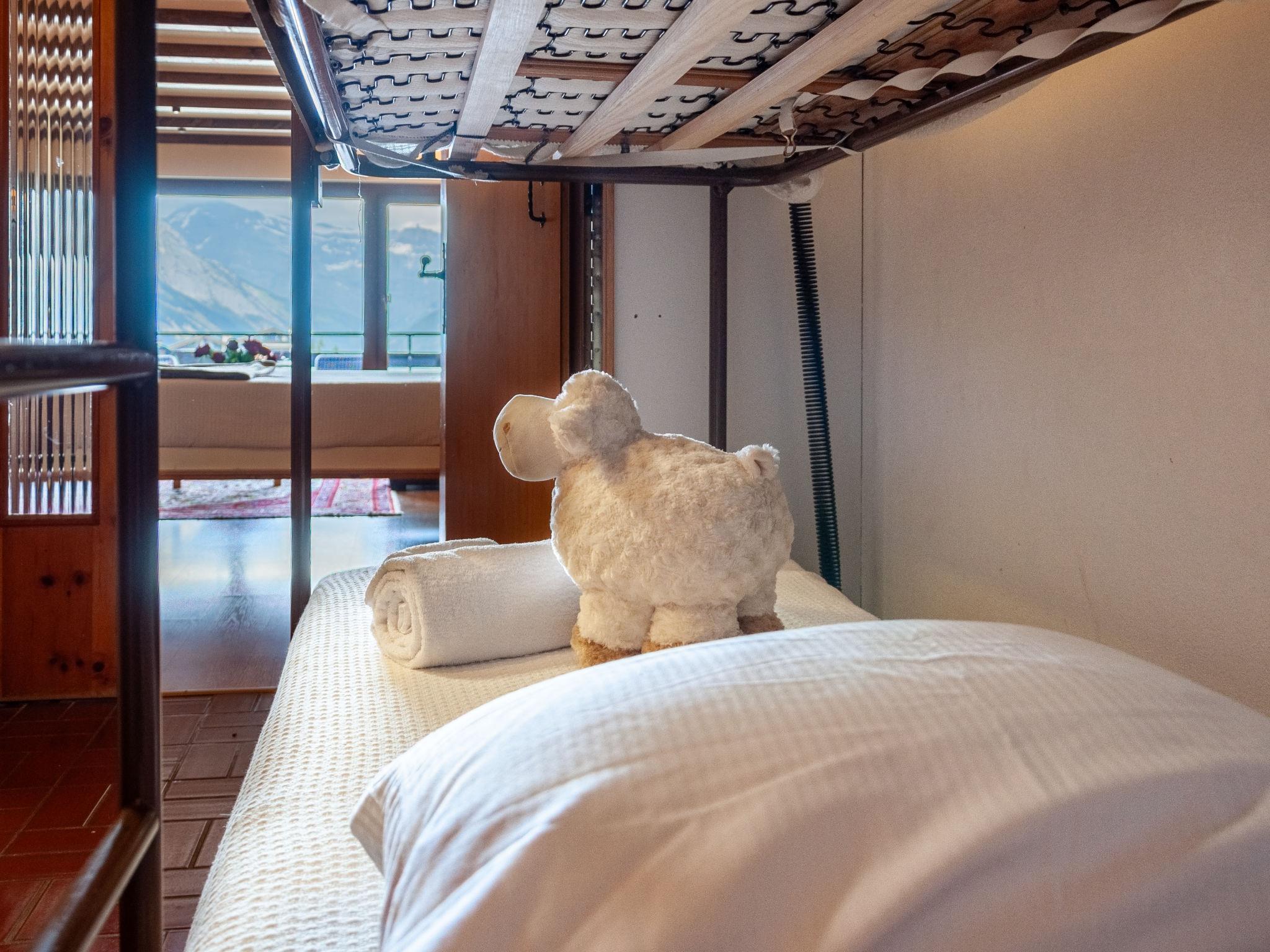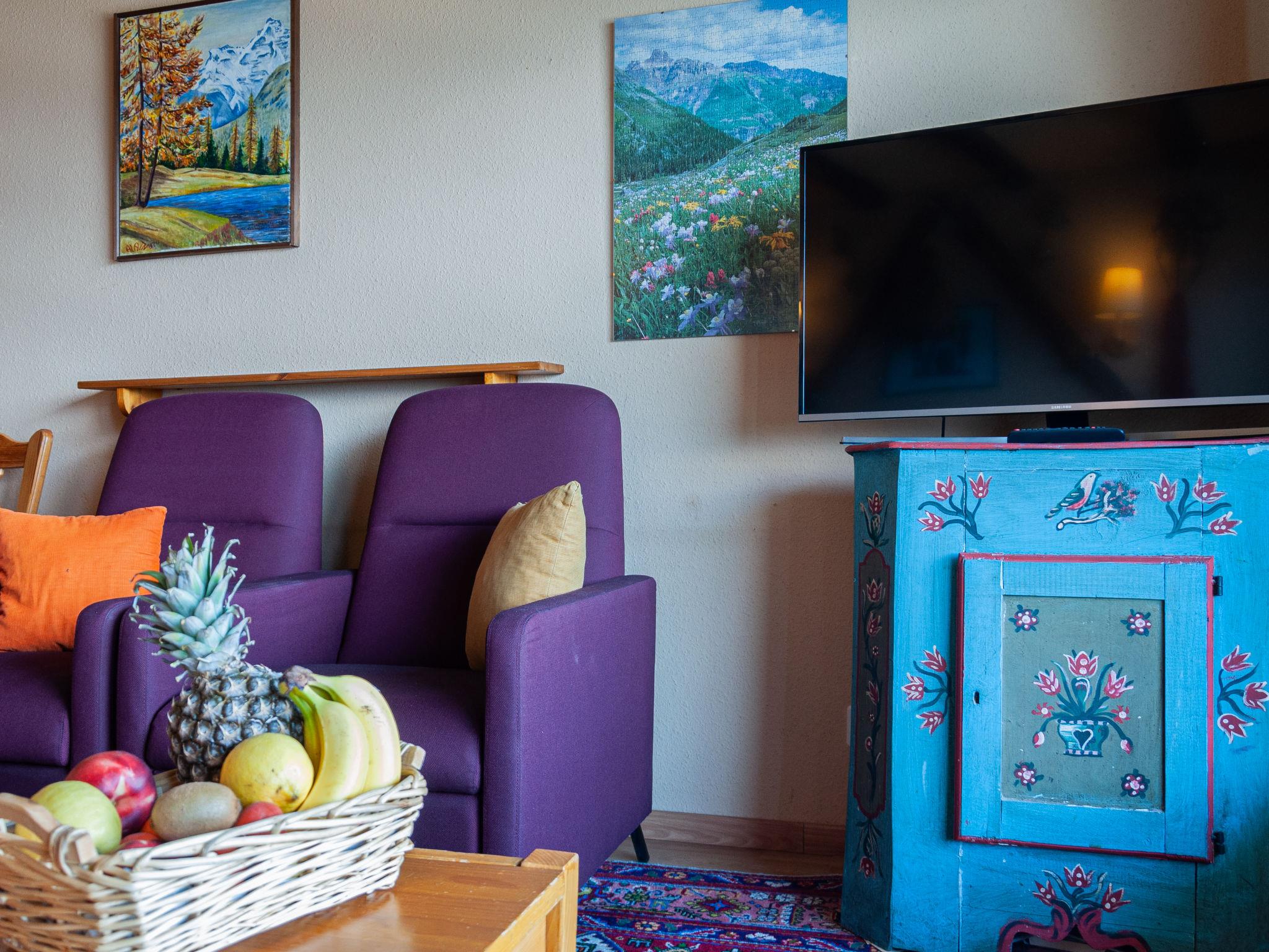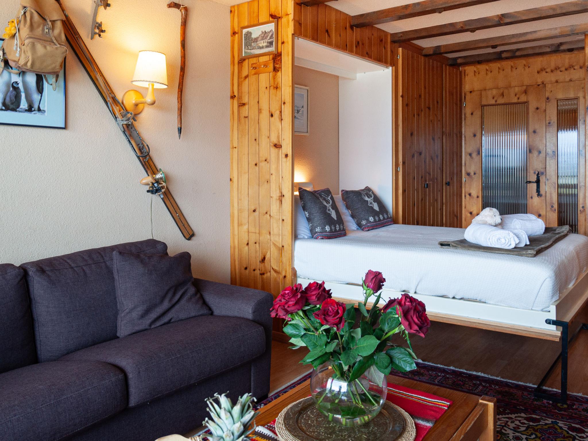 "Christiania I R3", 1-Zimmer-Studio 36 m2 im 3. Stock, Nordlage. Objekt geeignet für 2 Erwachsene + 2 Kinder. Zweckmässig eingerichtet: Wohn-/Esszimmer mit 1 franz. Wandschrankbett (140 cm, Länge 190 cm), Kabel-TV. Ausgang zum Balkon. Eingang mit 1 x 2 Etagenbetten (80 cm, Länge 180 cm). Kleine Küche (3 Kochplatten, Backofen, Wasserkocher, elektrische Kaffeemaschine). Bad/WC. Balkon, Nordwestlage. Schöne Sicht auf die Berge und die Ortschaft. Zur Verfügung: Internet (Wireless LAN, gratis). Parkplatz Nr. 6C (überdacht), Höhe 190 cm. Bitte beachten: Nichtraucher-Unterkunft. Anstelle eines abgeschlossenen Schlafzimmers befinden sich manche Schlafplätze in einem offenen Bereich (Galerie, Nische etc.).