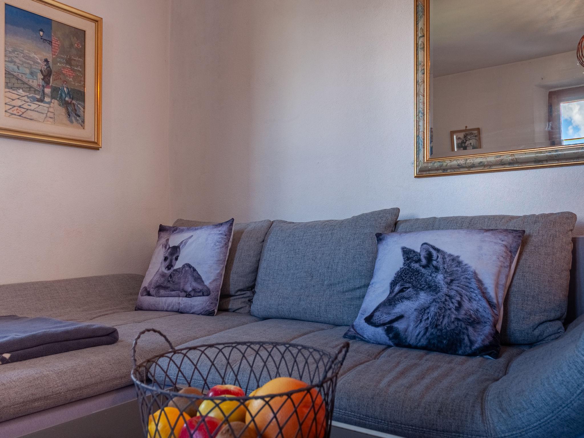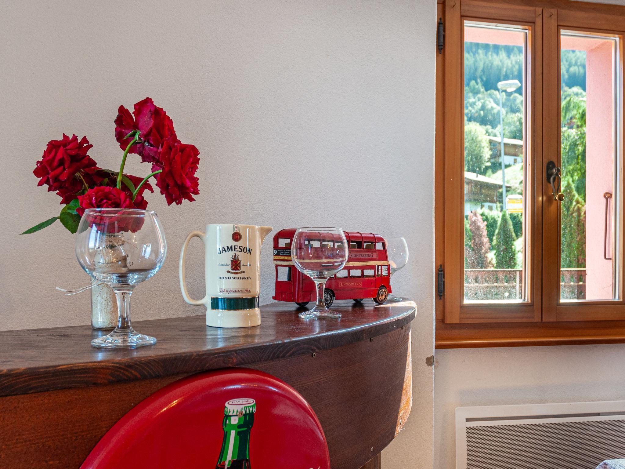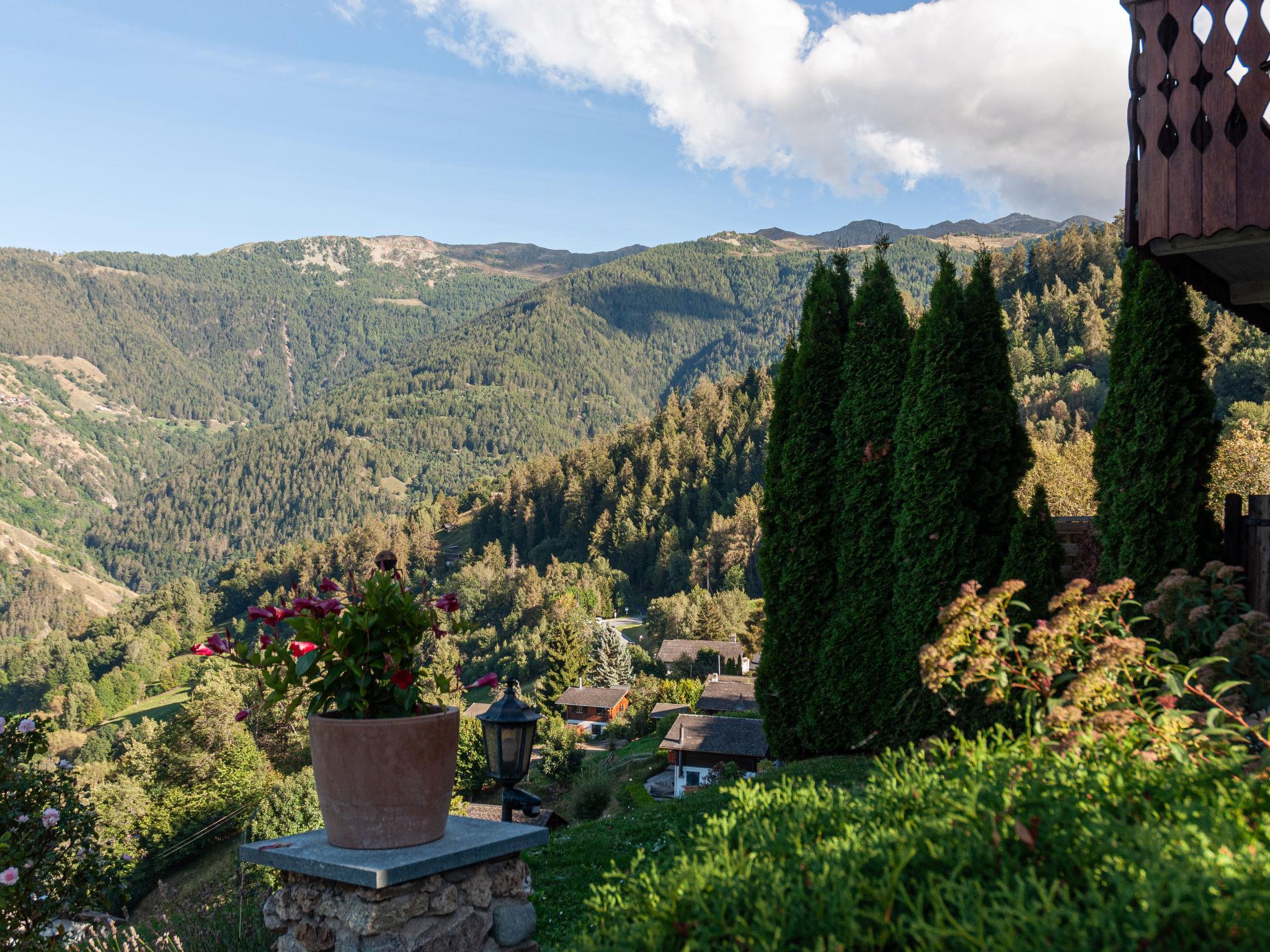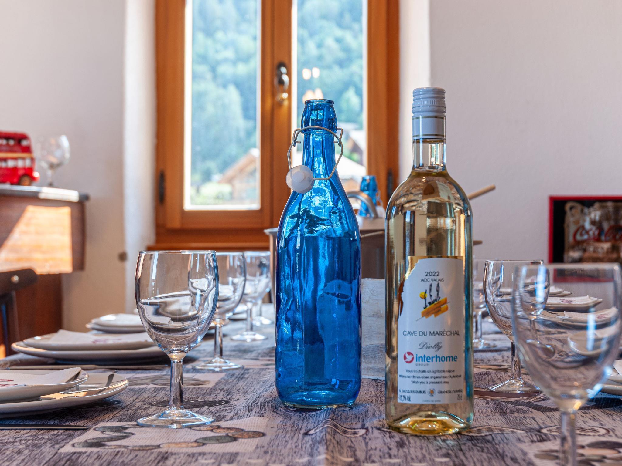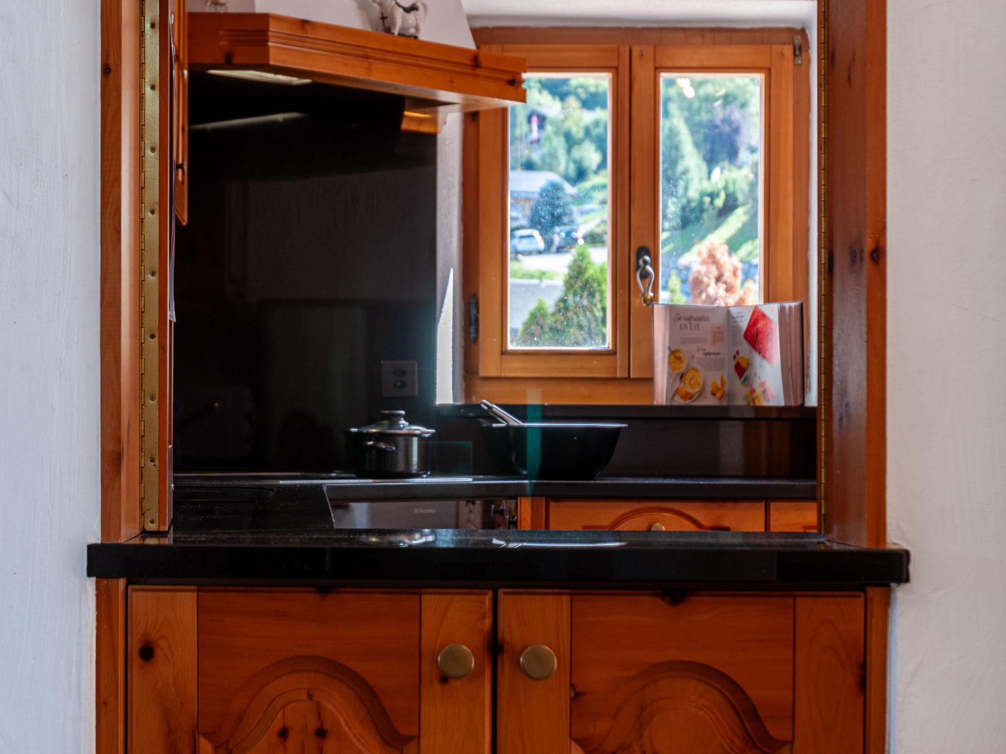 "Le Dahu", 6-Zimmer-Haus 200 m2 auf 3 Stockwerken. Komfortabel und schön eingerichtet: Wohnzimmer mit offenem Kamin, Kabel-TV und Flachbildschirm. Esszimmer mit Bar. Ausgang zum Balkon, Richtung Osten. Küche (Backofen, Geschirrspüler, 4 Glaskeramikplatten, Toaster, Wasserkocher, Mikrowelle, elektrische Kaffeemaschine, Kapseln für die Kaffeemaschine (Nespresso) extra, Racletteofen, Fondue Set (Käse)). Dusche, sep. WC. E-Heizung. Obergeschoss: 1 Doppelzimmer mit 1 Doppelbett (2 x 90 cm, Länge 200 cm). Ausgang zum Balkon, Richtung Osten. 1 Doppelzimmer mit 1 franz. Bett (160 cm, Länge 200 cm). Bad/WC. Dachgeschoss: 3 abgeschrägte Zimmer, jedes Zimmer mit 2 Betten (90 cm, Länge 200 cm). Offenes kleines Spielzimmer mit TV und DVD. Dusche/WC. Garten. Terrassenmöbel, Gartengrill, Liegestühle. Herrliche Panoramasicht auf die Berge und das Tal. Zur Verfügung: Waschmaschine, Kinderhochstuhl, Babybett, Haartrockner. Internet (WLAN, gratis). Parkplatz (2 Autos) beim Haus. Bitte beachten: Nichtraucher-Haus. Maximal 1 Haustier/Hund erlaubt.