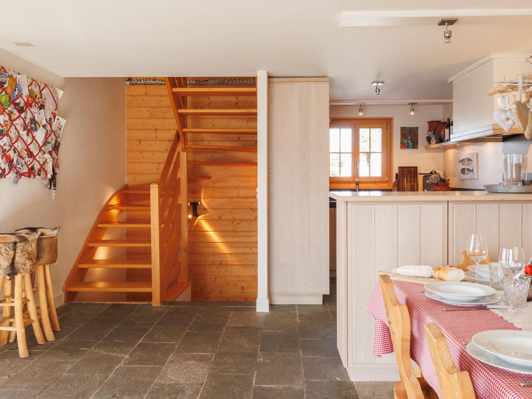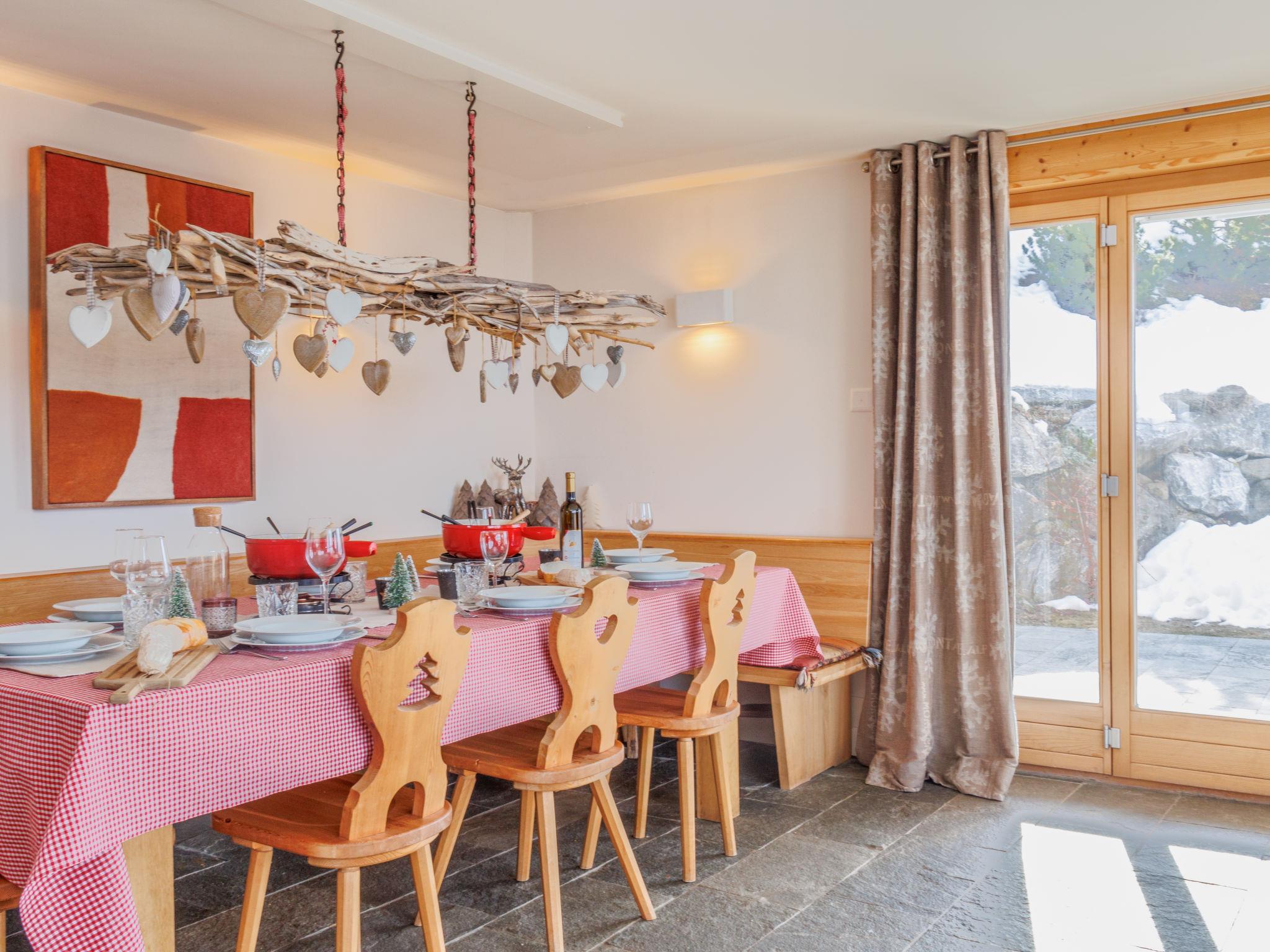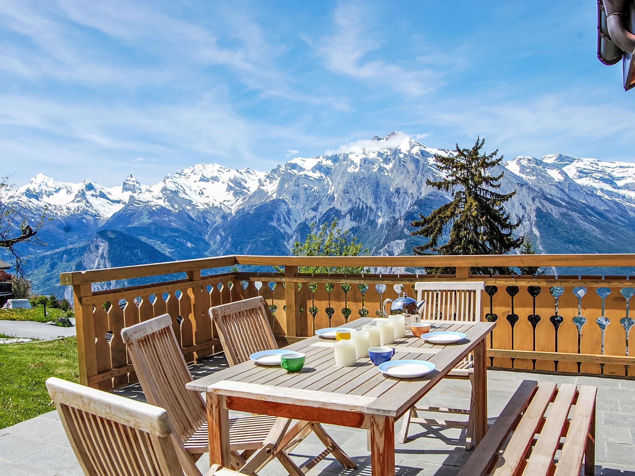 "Ratatouille", 5-Zimmer-Chalet 210 m2 auf 3 Stockwerken. Schön und geschmackvoll eingerichtet: Wohn-/Esszimmer mit offenem Kamin und Sat-TV. Offene Küche (Backofen, Geschirrspüler, 5 Glaskeramikplatten, Toaster, Wasserkocher, Mikrowelle, elektrische Kaffeemaschine, Kapseln für die Kaffeemaschine (Nespresso) extra, Racletteofen, Fondue Set (Käse)) mit Bar. E-Heizung. Unteres Geschoss: 1 Zimmer mit 1 franz. Bett. 2 Zimmer, jedes Zimmer mit 2 Betten (90 cm, Länge 200 cm). Bad/WC, Dusche, sep. WC. Obergeschoss: 1 Zimmer mit 2 Betten (90 cm, Länge 200 cm). Dusche/WC. Natursteinboden. Grosser Balkon, Nordlage und Westlage, kleiner Balkon, Ostlage Terrasse, Westlage. Terrassenmöbel, Gartengrill, Liegestühle. Sehr schöne Sicht auf die Berge und das Tal. Zur Verfügung: Waschmaschine, Wäschetrockner, Kinderhochstuhl, Babybett, Haartrockner. Internet (WLAN, gratis). Garage (2 Autos), Höhe 195 cm, Breite 275 cm. Bitte beachten: Nichtraucher-Haus. Maximal 1 Haustier/Hund erlaubt.