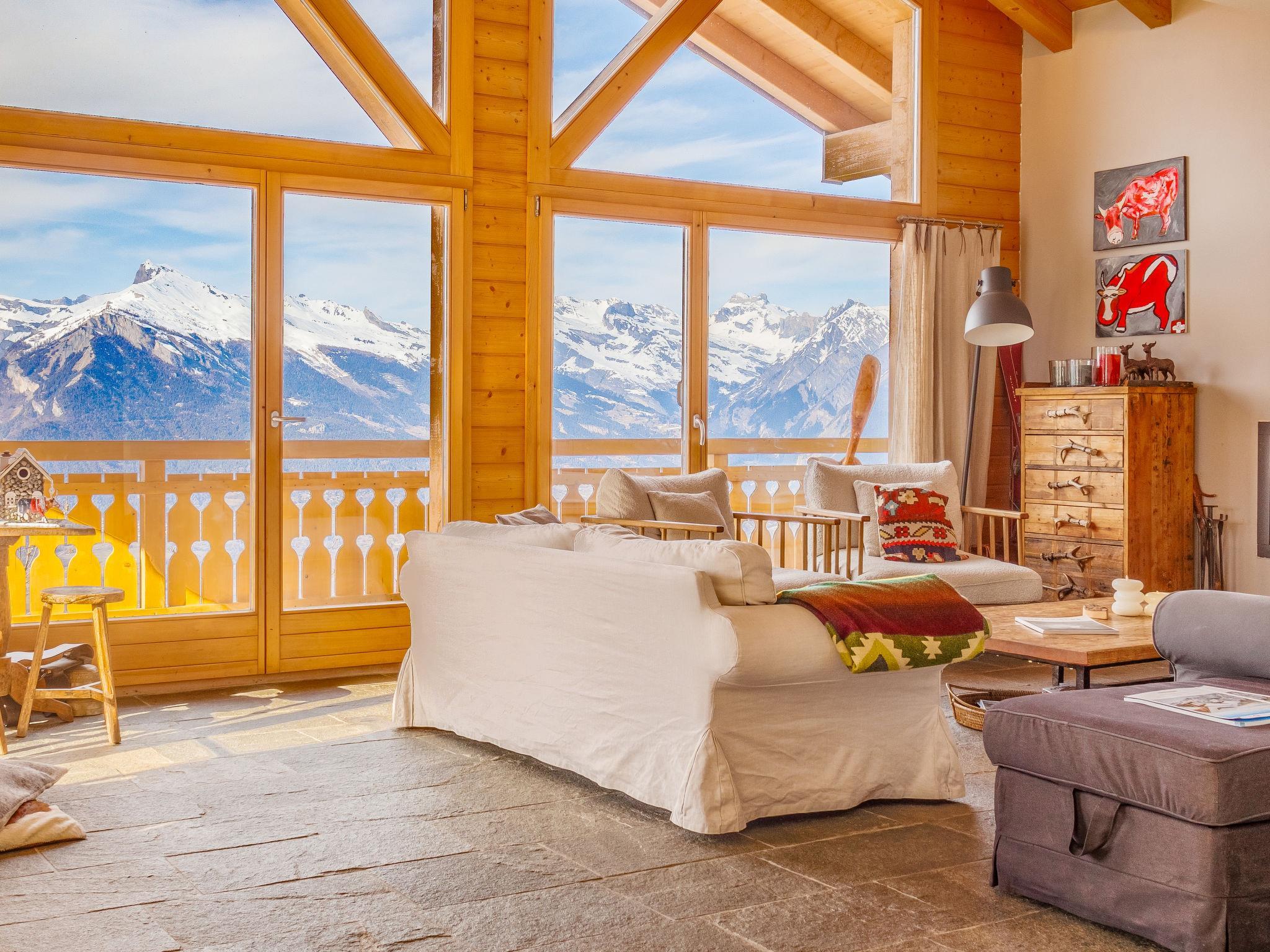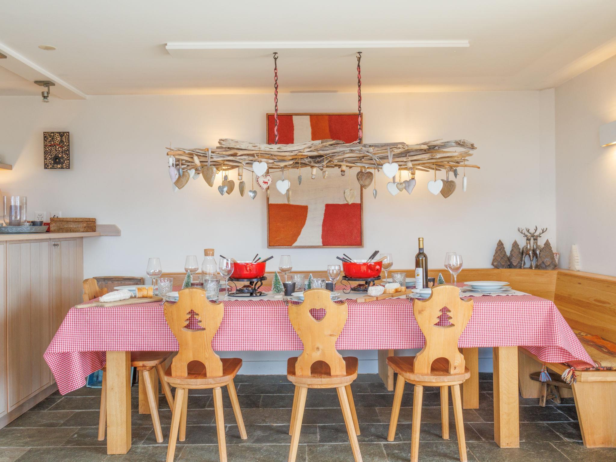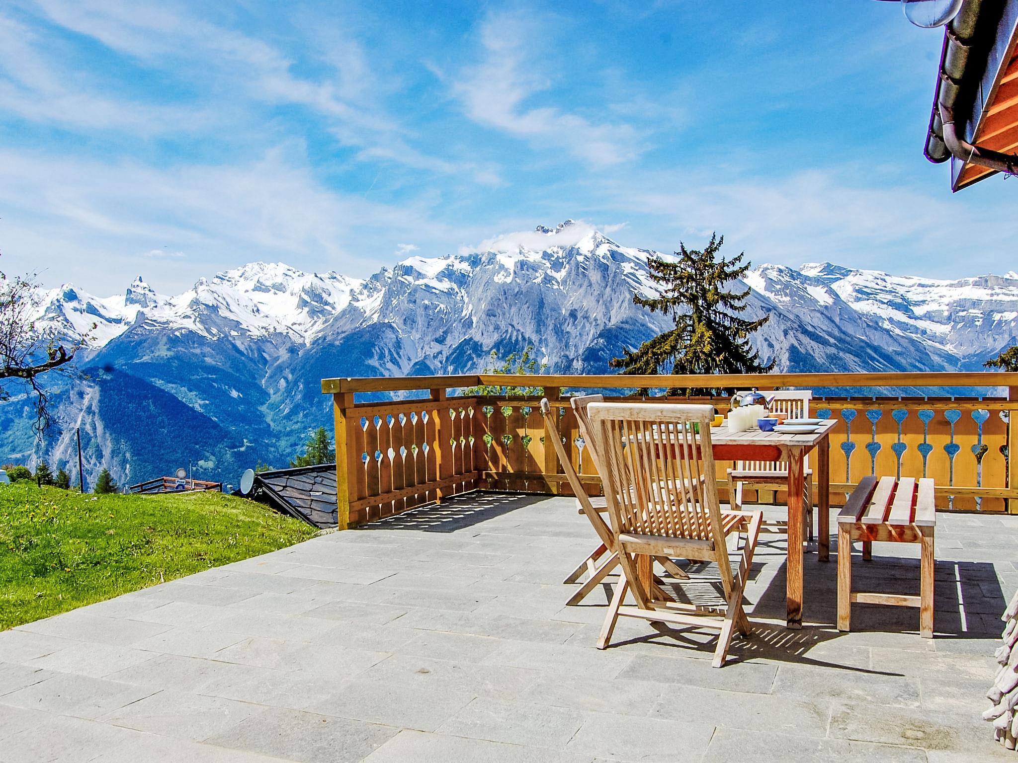 "Ratatouille", 5-Zimmer-Chalet 210 m2 auf 3 Stockwerken. Schön und geschmackvoll eingerichtet: Wohn-/Esszimmer mit offenem Kamin und Sat-TV. Offene Küche (Backofen, Geschirrspüler, 5 Glaskeramikplatten, Toaster, Wasserkocher, Mikrowelle, elektrische Kaffeemaschine, Kapseln für die Kaffeemaschine (Nespresso) extra, Racletteofen, Fondue Set (Käse)) mit Bar. E-Heizung. Unteres Geschoss: 1 Zimmer mit 1 franz. Bett. 2 Zimmer, jedes Zimmer mit 2 Betten (90 cm, Länge 200 cm). Bad/WC, Dusche, sep. WC. Obergeschoss: 1 Zimmer mit 2 Betten (90 cm, Länge 200 cm). Dusche/WC. Natursteinboden. Grosser Balkon, Nordlage und Westlage, kleiner Balkon, Ostlage Terrasse, Westlage. Terrassenmöbel, Gartengrill, Liegestühle. Sehr schöne Sicht auf die Berge und das Tal. Zur Verfügung: Waschmaschine, Wäschetrockner, Kinderhochstuhl, Babybett, Haartrockner. Internet (WLAN, gratis). Garage (2 Autos), Höhe 195 cm, Breite 275 cm. Bitte beachten: Nichtraucher-Haus. Maximal 1 Haustier/Hund erlaubt.