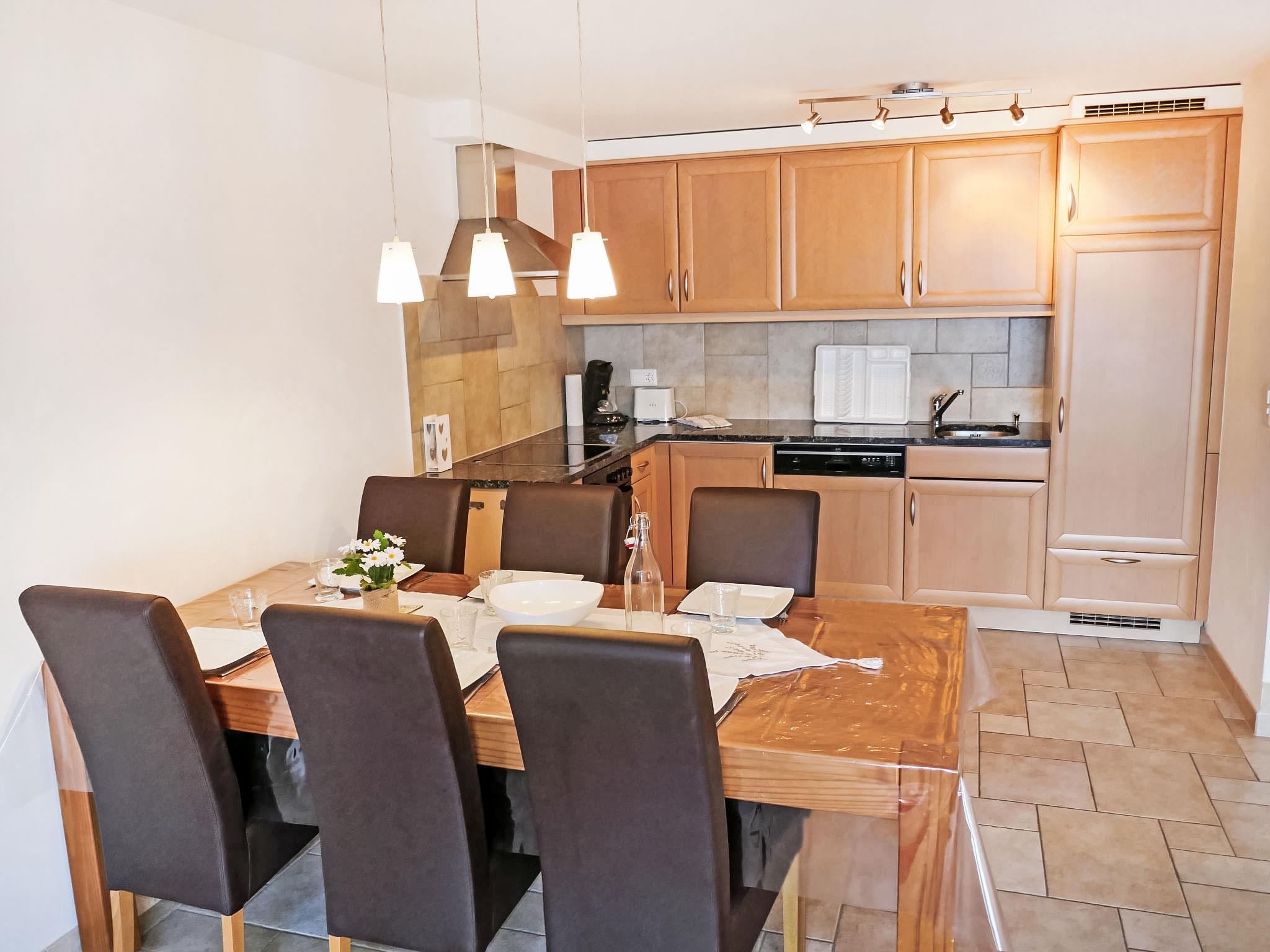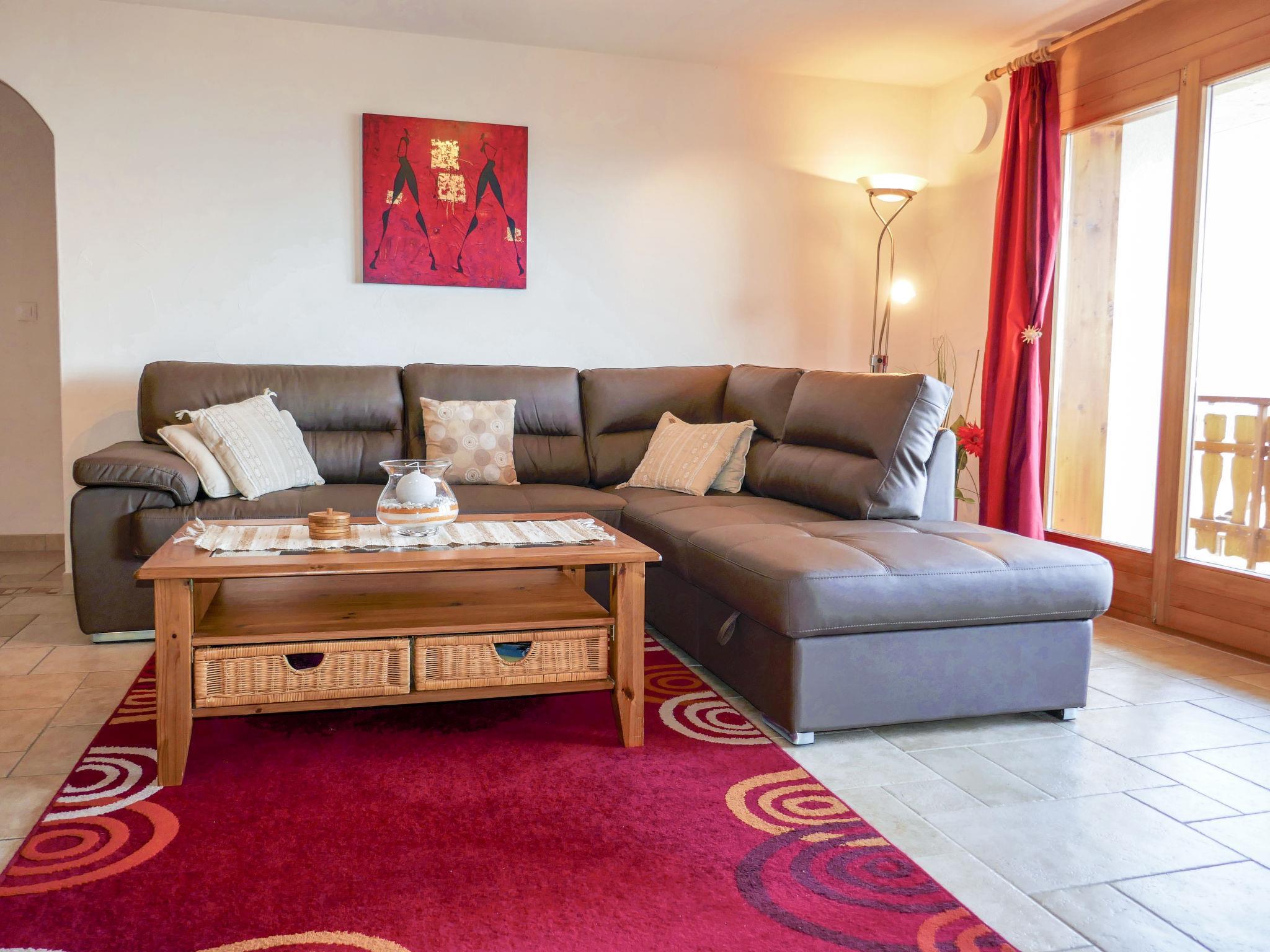 "Grand Panorama C5", 4-Zimmer-Wohnung 105 m2 im 3. Stock. Geräumig, komfortabel eingerichtet: grosses Wohn-/Esszimmer mit Kabel-TV und Stereoanlage. Ausgang zum Balkon, Richtung Norden. 1 grosses Zimmer mit 1 franz. Bett (160 cm, Länge 200 cm), Dusche/WC. Ausgang zum Balkon, Richtung Norden. 2 Zimmer, jedes Zimmer mit 1 franz. Bett (160 cm, Länge 200 cm). Ausgang zur Terrasse, Richtung Süden. Offene Küche (Backofen, Geschirrspüler, 4 Glaskeramikplatten, Toaster, Wasserkocher, elektrische Kaffeemaschine, Kapseln für die Kaffeemaschine (Nespresso) extra, Racletteofen, Fondue Set (Käse)). Bad/WC. Grosser Balkon, Nordlage, Terrasse, Südlage. Balkonmöbel. Schöne Sicht auf die Berge und das Tal. Zur Verfügung: Babybett, Haartrockner. Internet (Wireless LAN, gratis). Parkplatz Nr. c5 (überdacht). Bitte beachten: Nichtraucher-Unterkunft. Ch’H1961.660.6